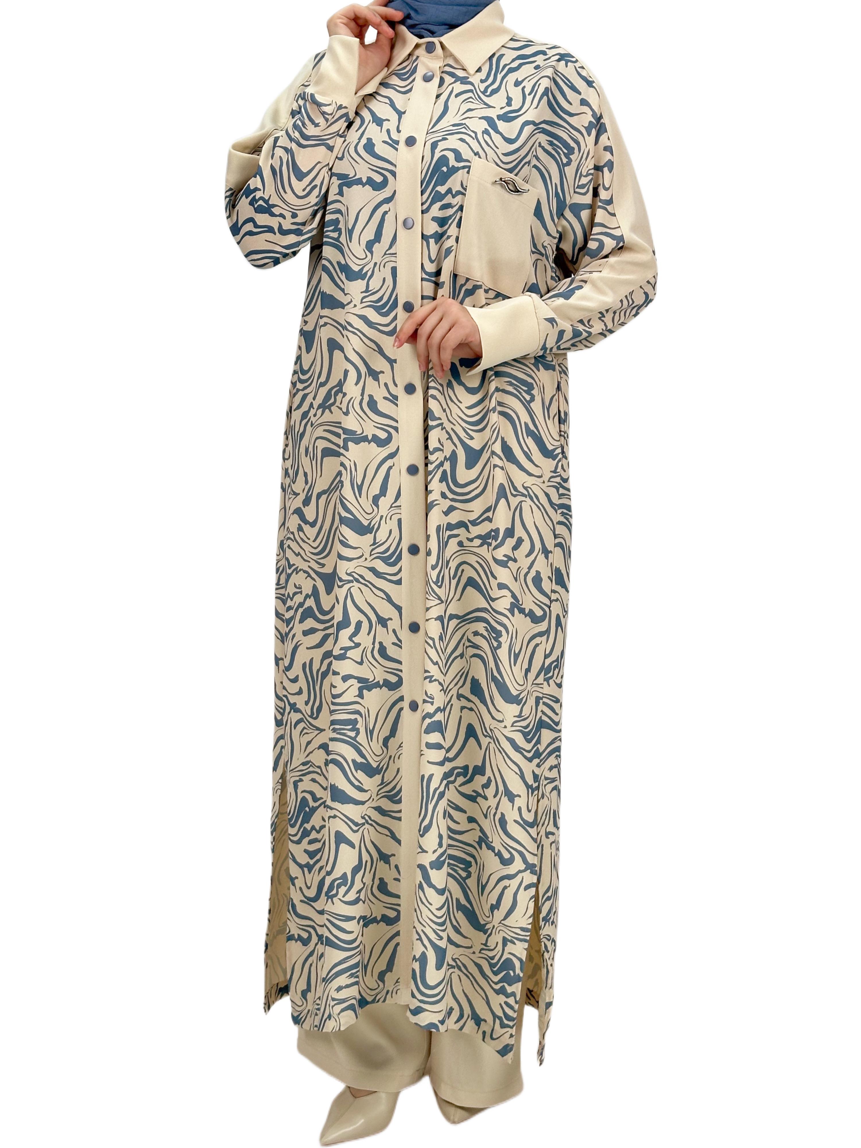 Ürün Detayları: Büyük beden takımımız 42-58 beden aralığındadır. Klasik yaka ve cepli uzun tunik modelimiz broşlu ve boydan çıtçıtlıdır, yanları yırtmaçlıdır. Tuniğimizin yanları yırtmaçlıdır. Pantolonun arka bel kısmı lastikli önü düğmelidir.