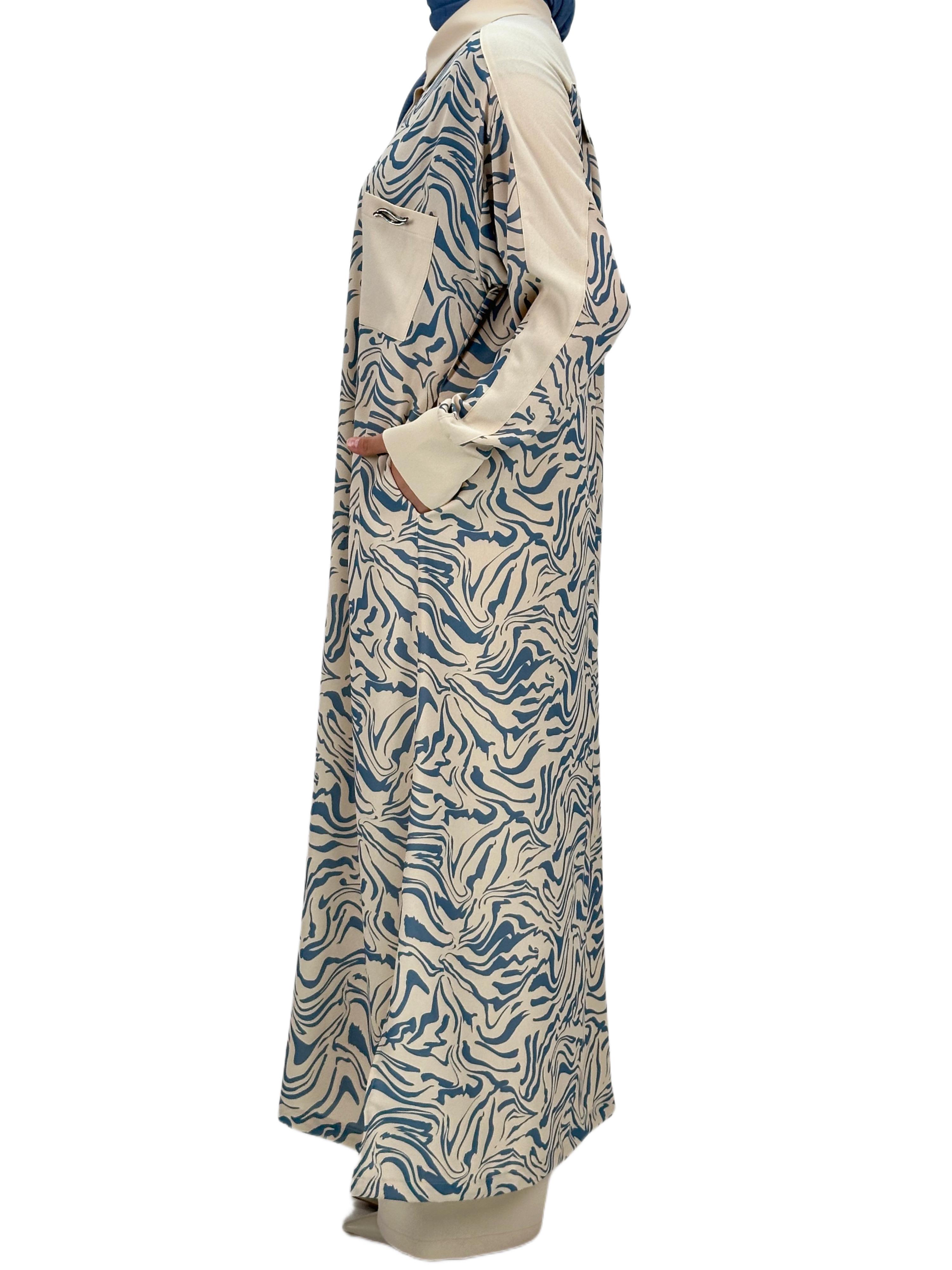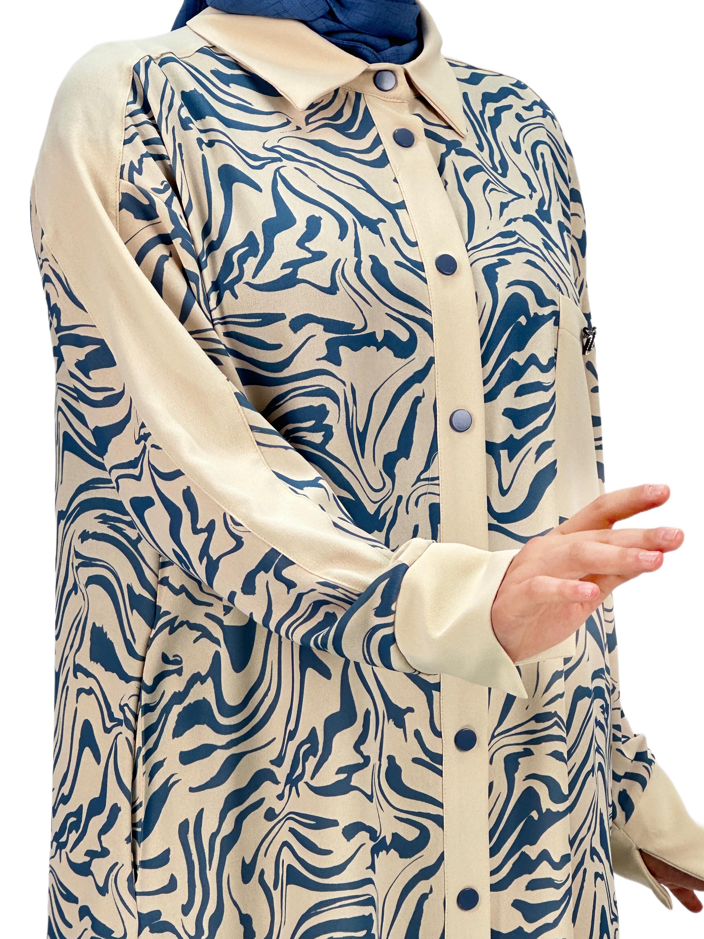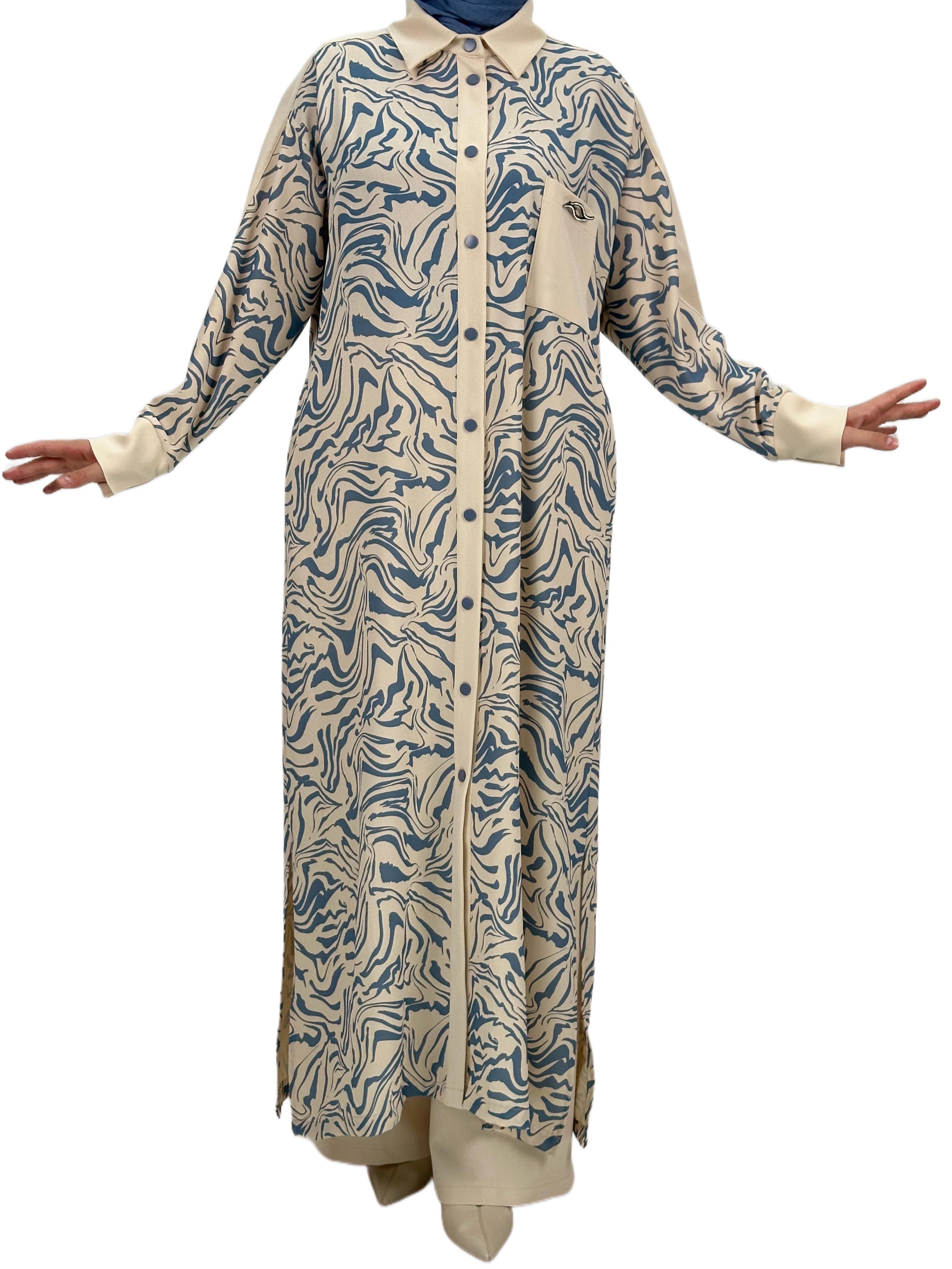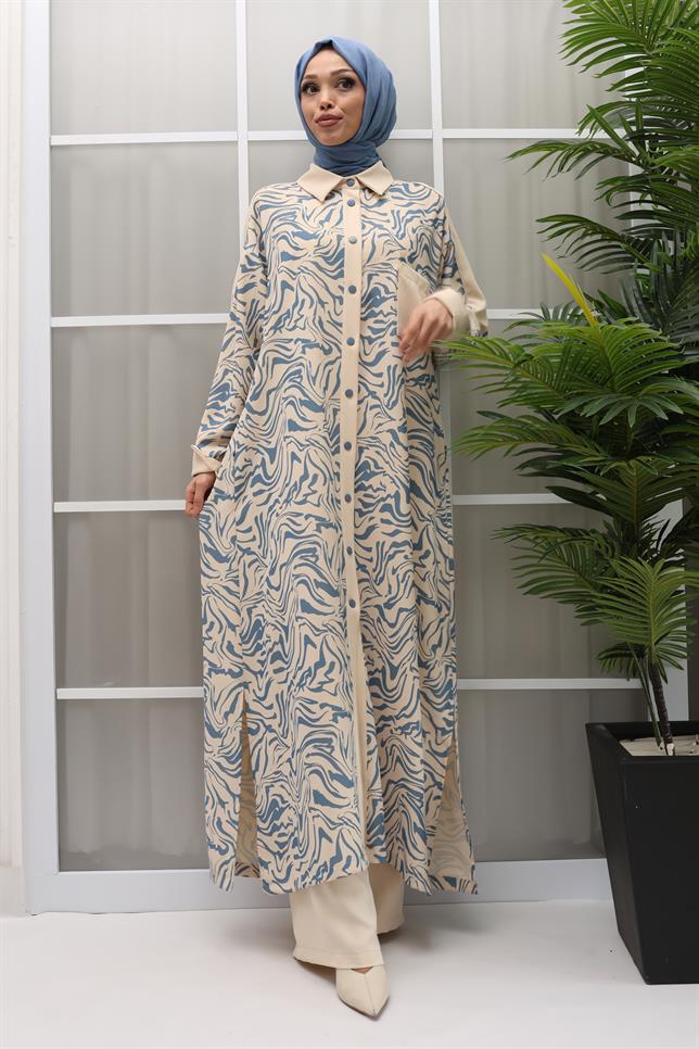 Büyük Beden Pantolonlu Takım Bej-Mavi OTW2084