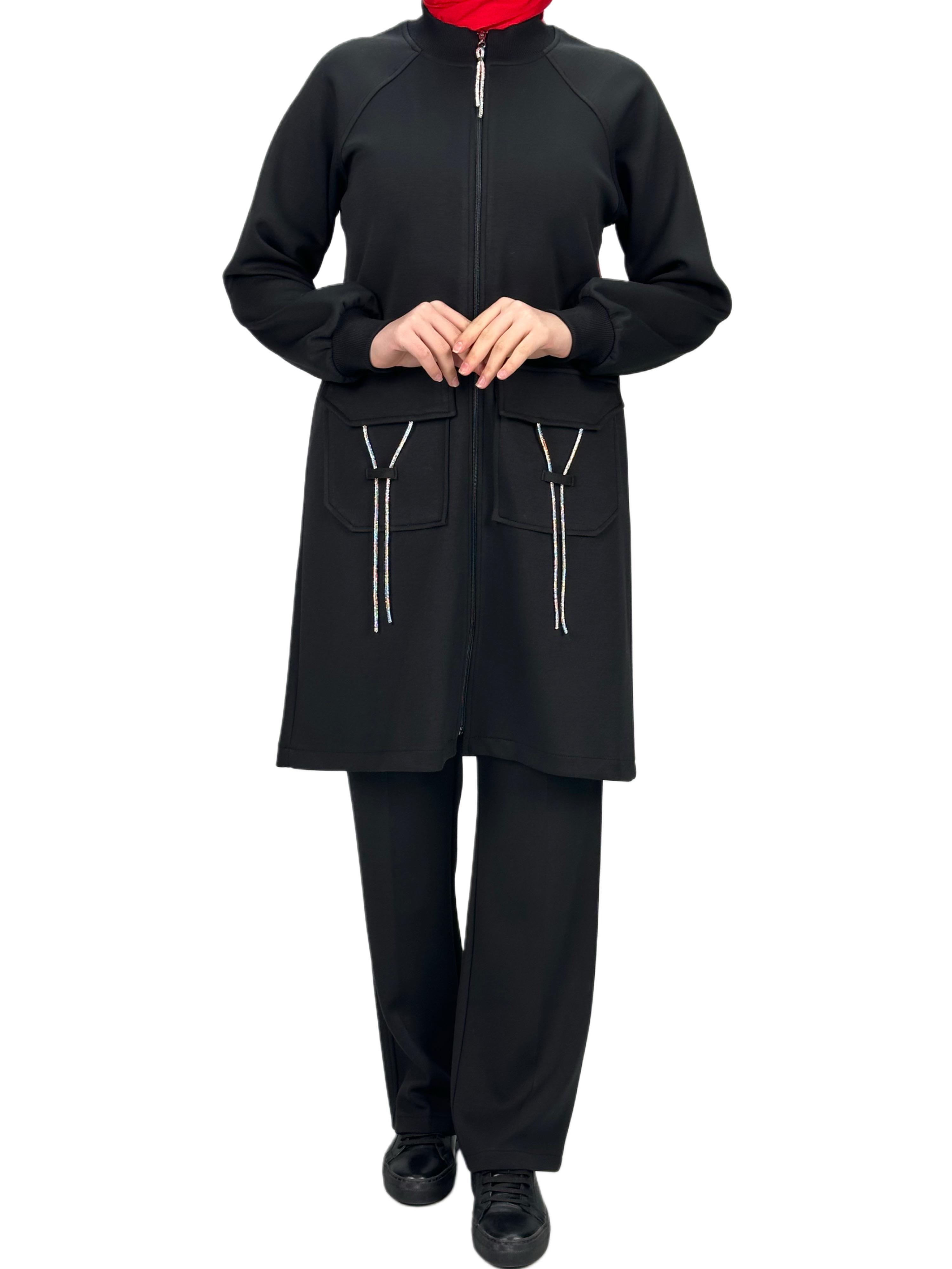 Ottoman Büyük Beden Pantolonlu Takım Siyah OTW2100