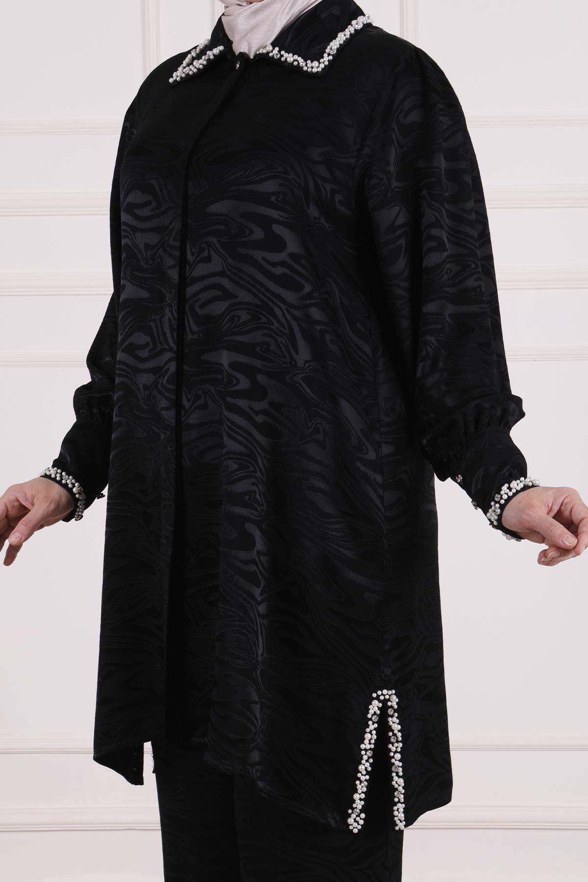 Ürün Detayları: Takma kol manşet yaka modelimizin kol ve etek ucu inci detaylıdır. Önden Gizli Patlı Düğmelidir.