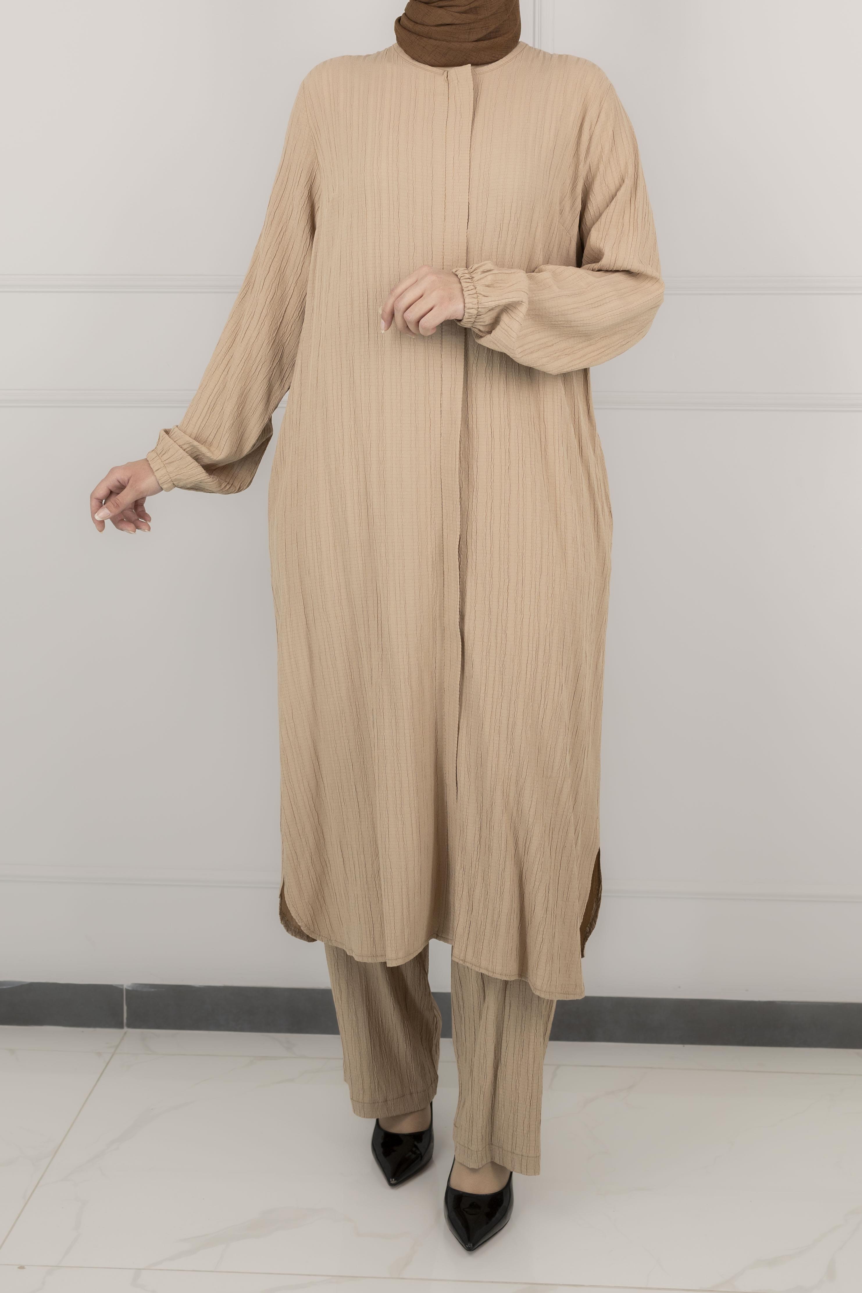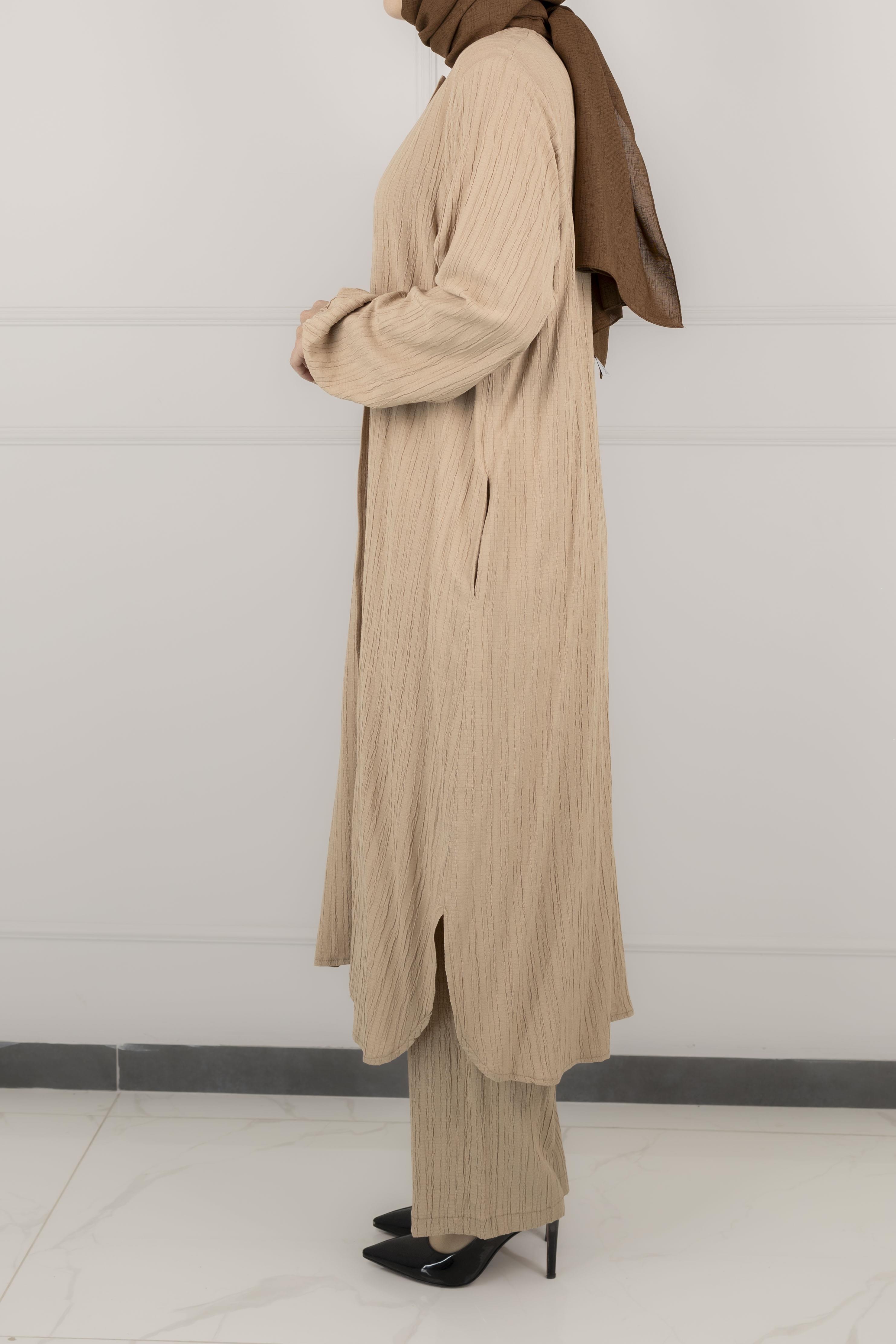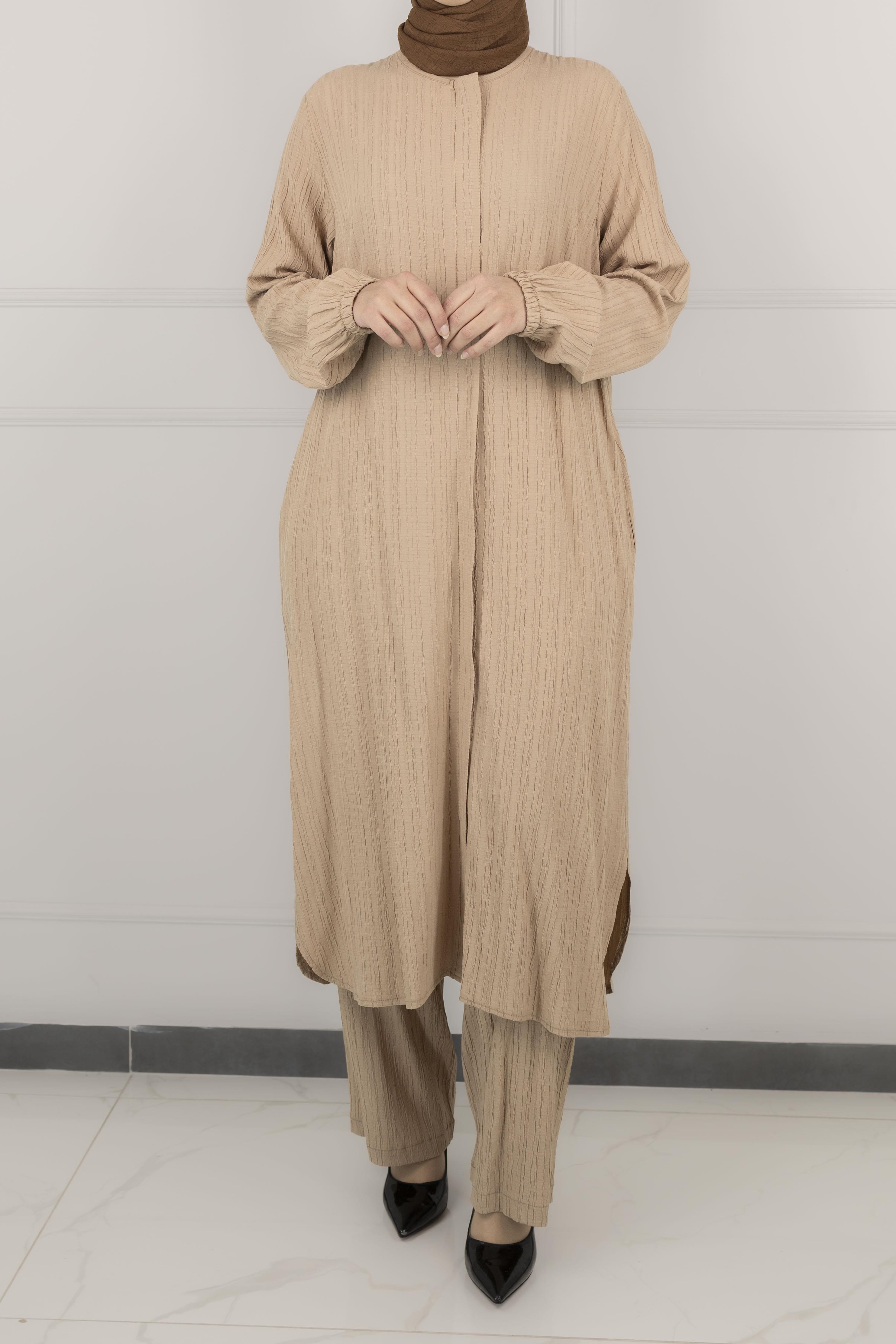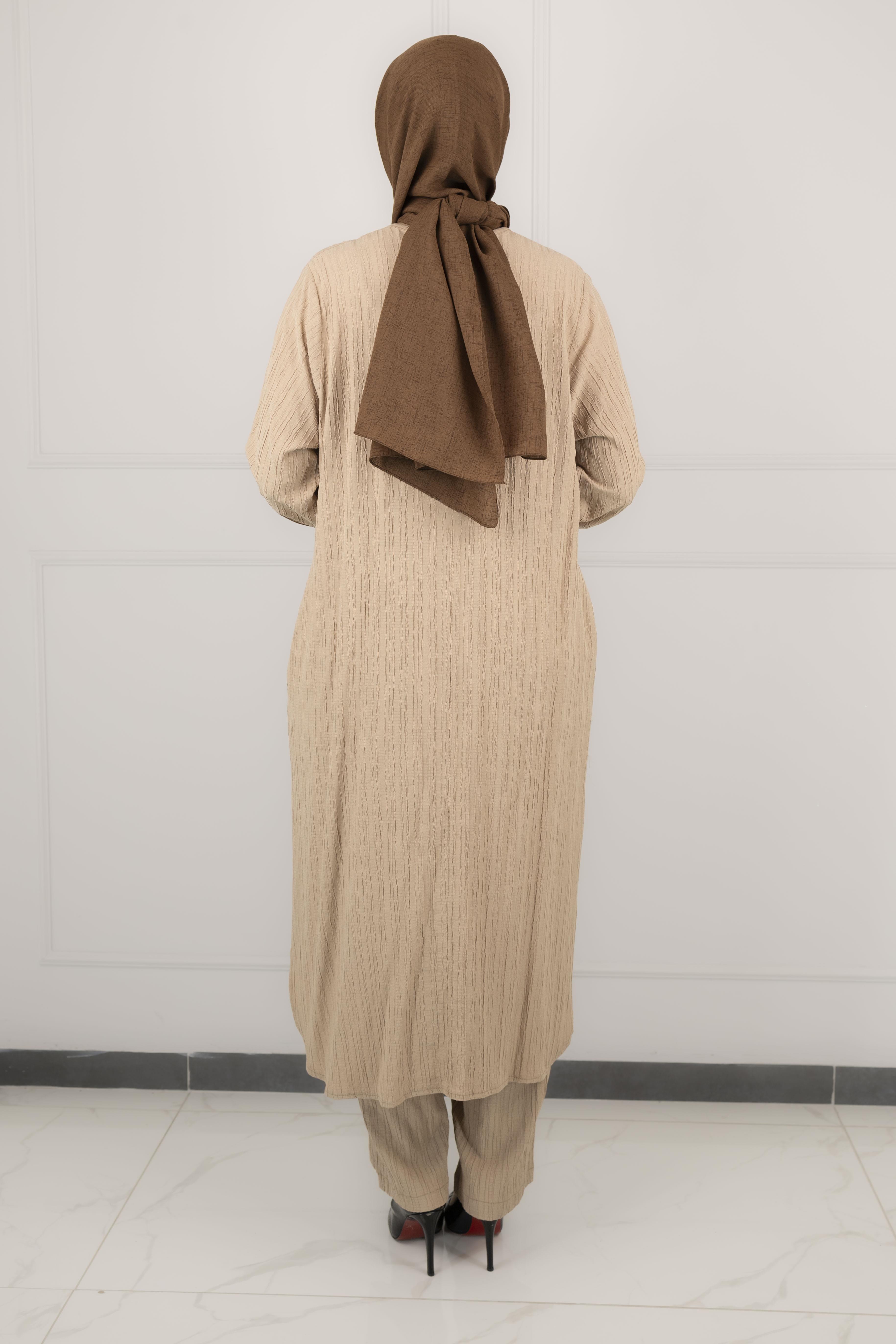 Büyük Beden Pantolonlu Takım Vizon OTW2360