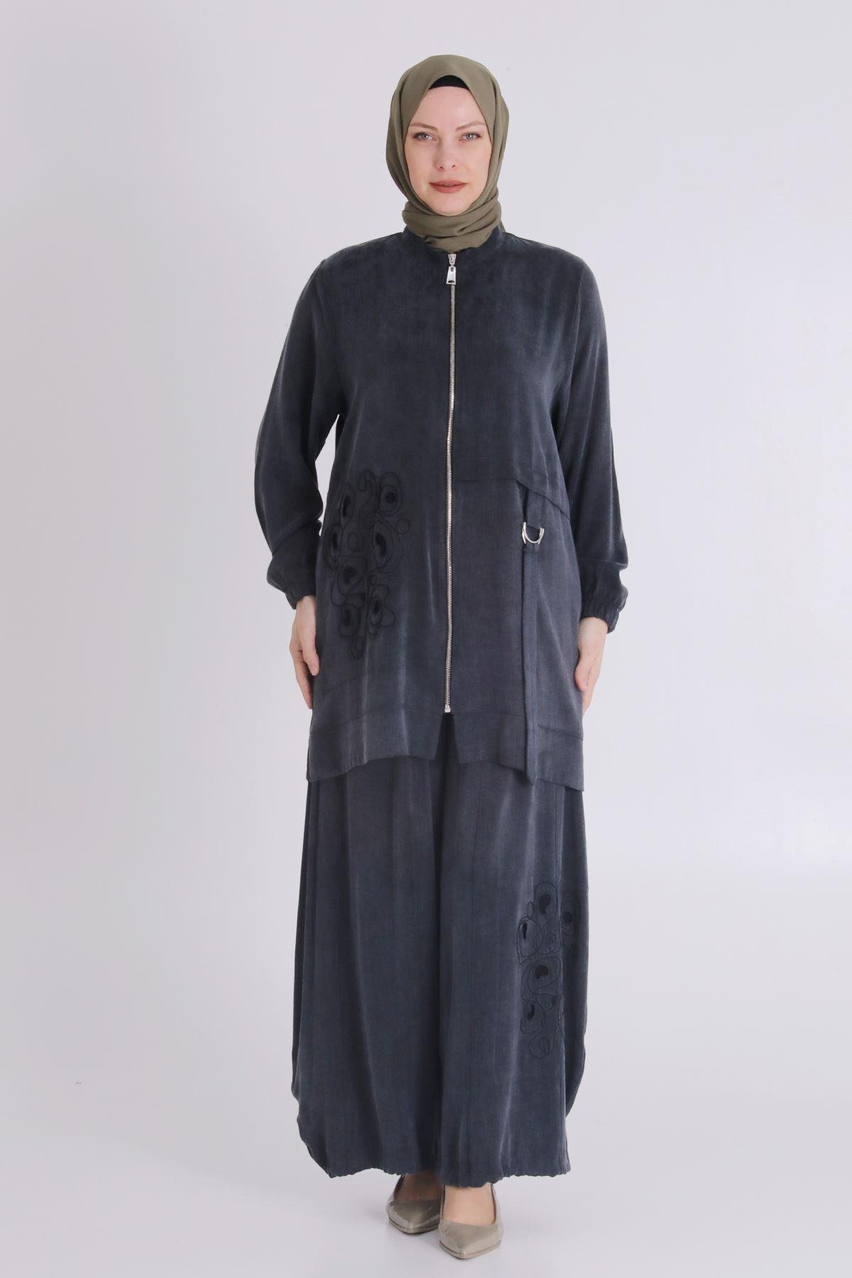 Büyük Beden Şalvarlı Takım Gri OTW35123 Büyük Beden Şalvarlı Takım Siyah OTW35123