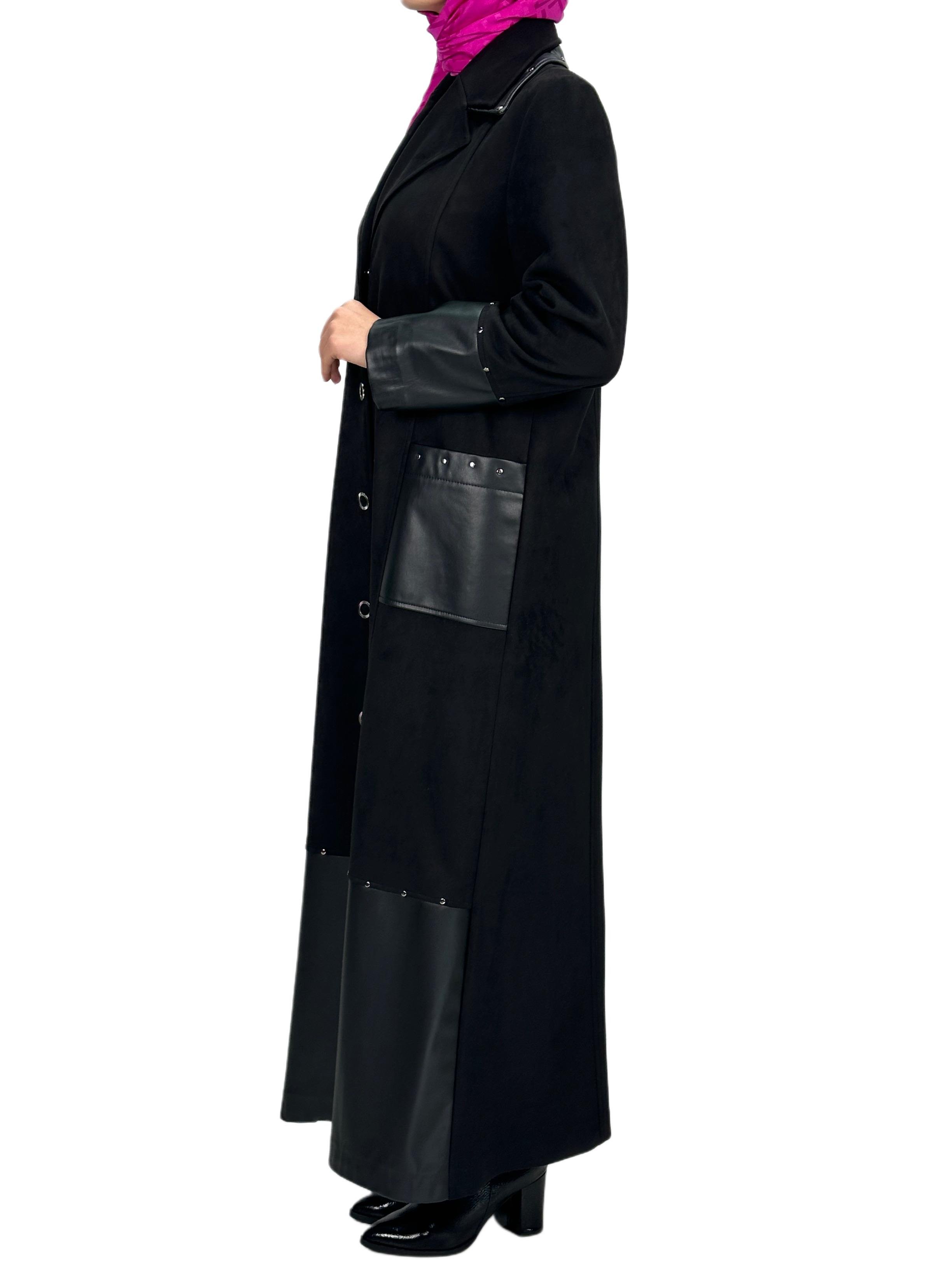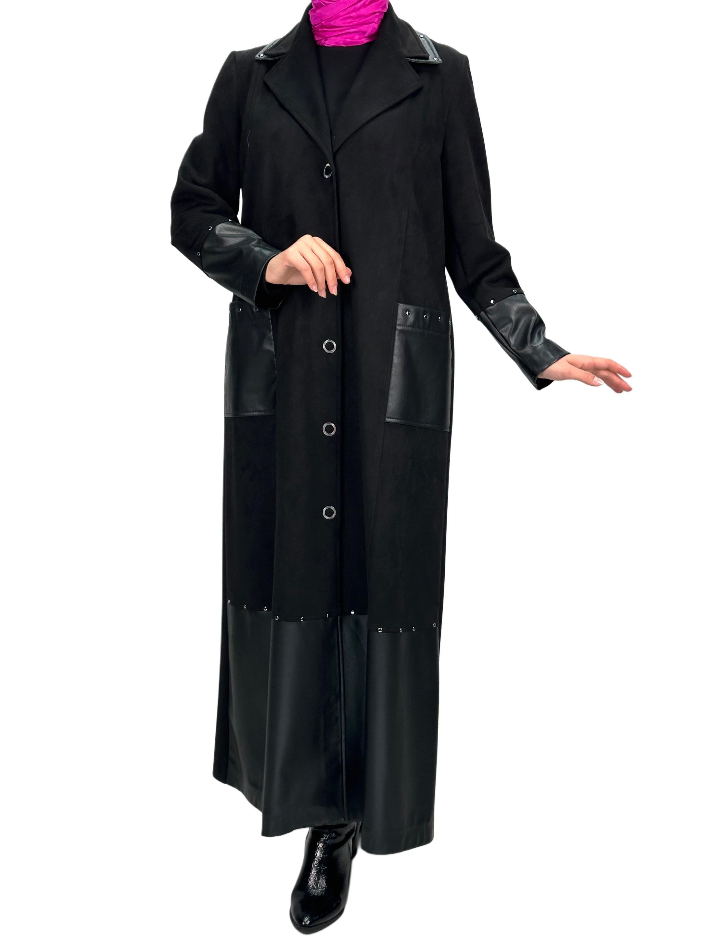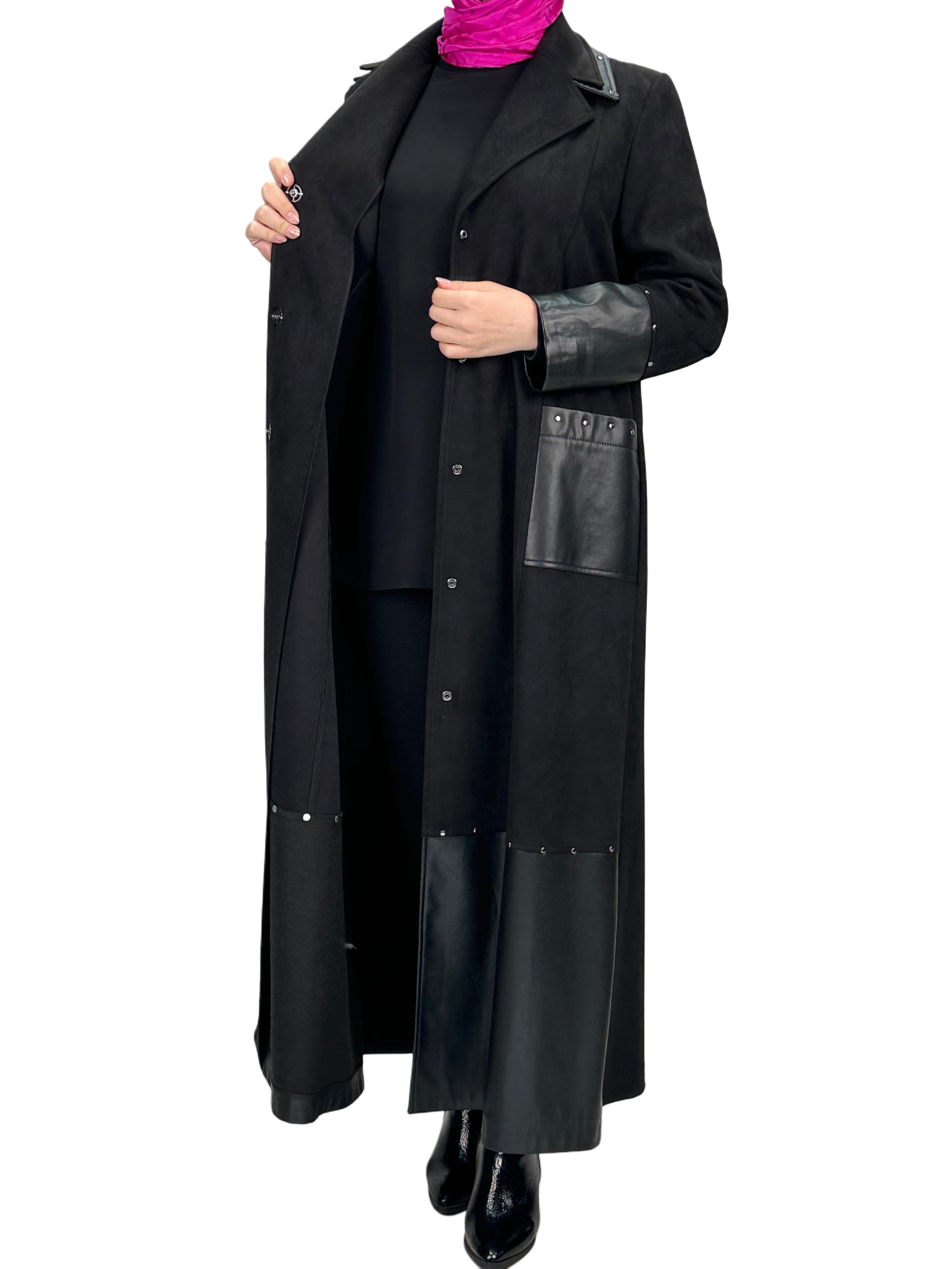 Ürün Detayı: Deri detaylı süet uzun kap modelimiz astarsızdır. Boydan Çıtçıtlı ve iki yandan ceplidir.