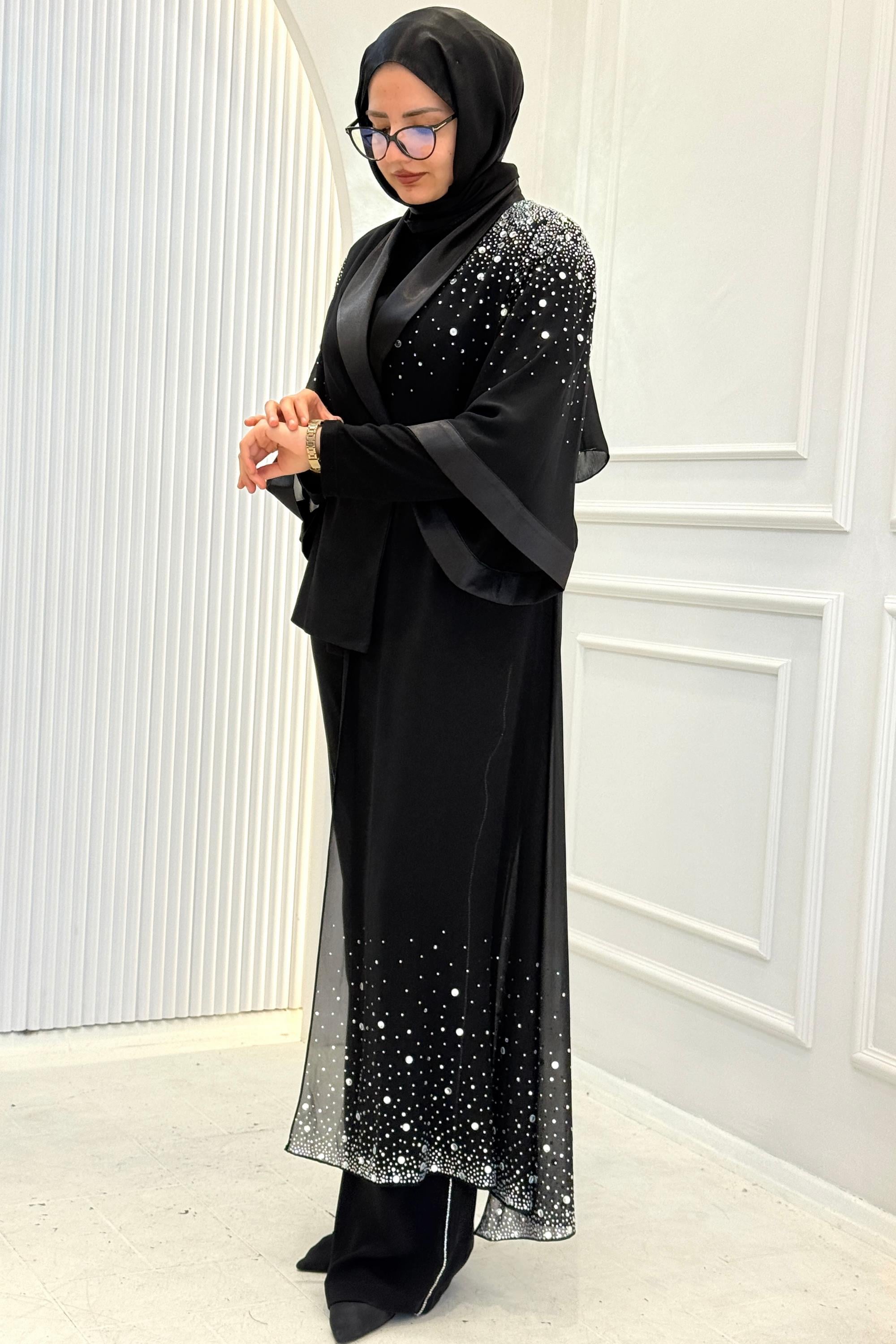 Asimetrik kesimi ile modern bir görünüm sunarken, dökümlü pantolonu ile rahatlık sağlar.Düğün, nişan ve özel davetlerde rahatlıkla tercih edilebilecek şık bir kombin sunar.