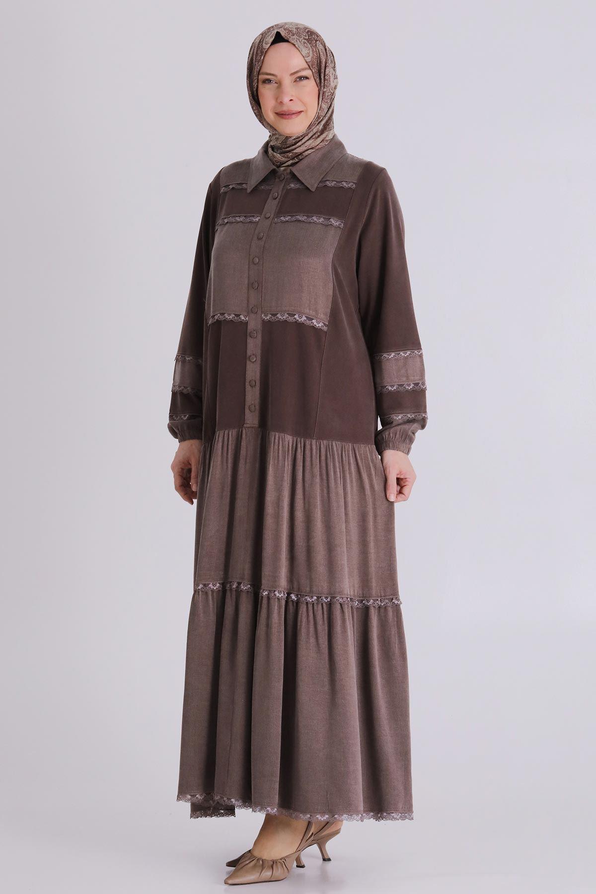 Behrem Büyük Beden Tesettür Elbise Kahve OTW75008