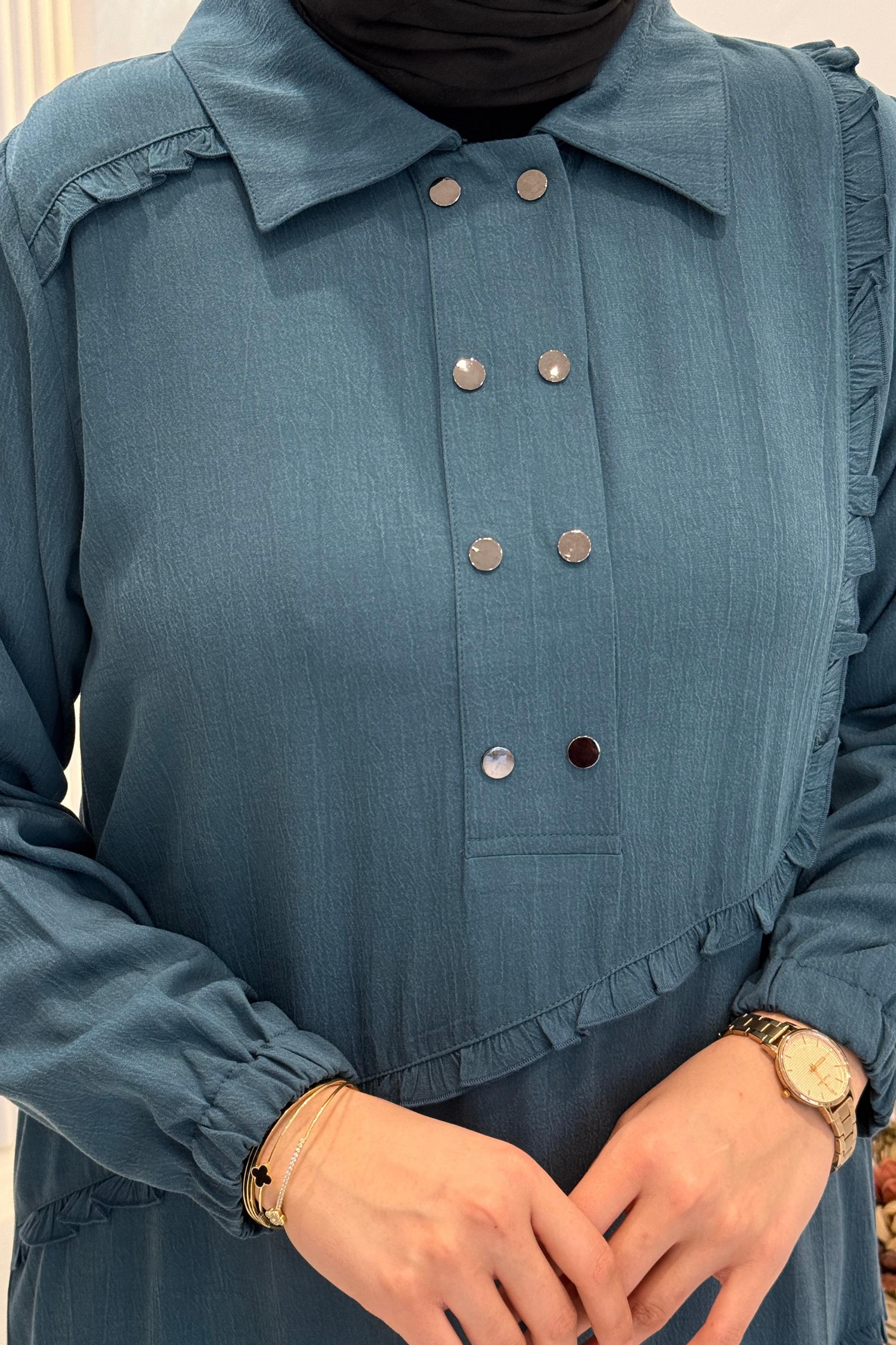 Behrem Büyük Beden Tesettür Elbise Petrol OTW7524