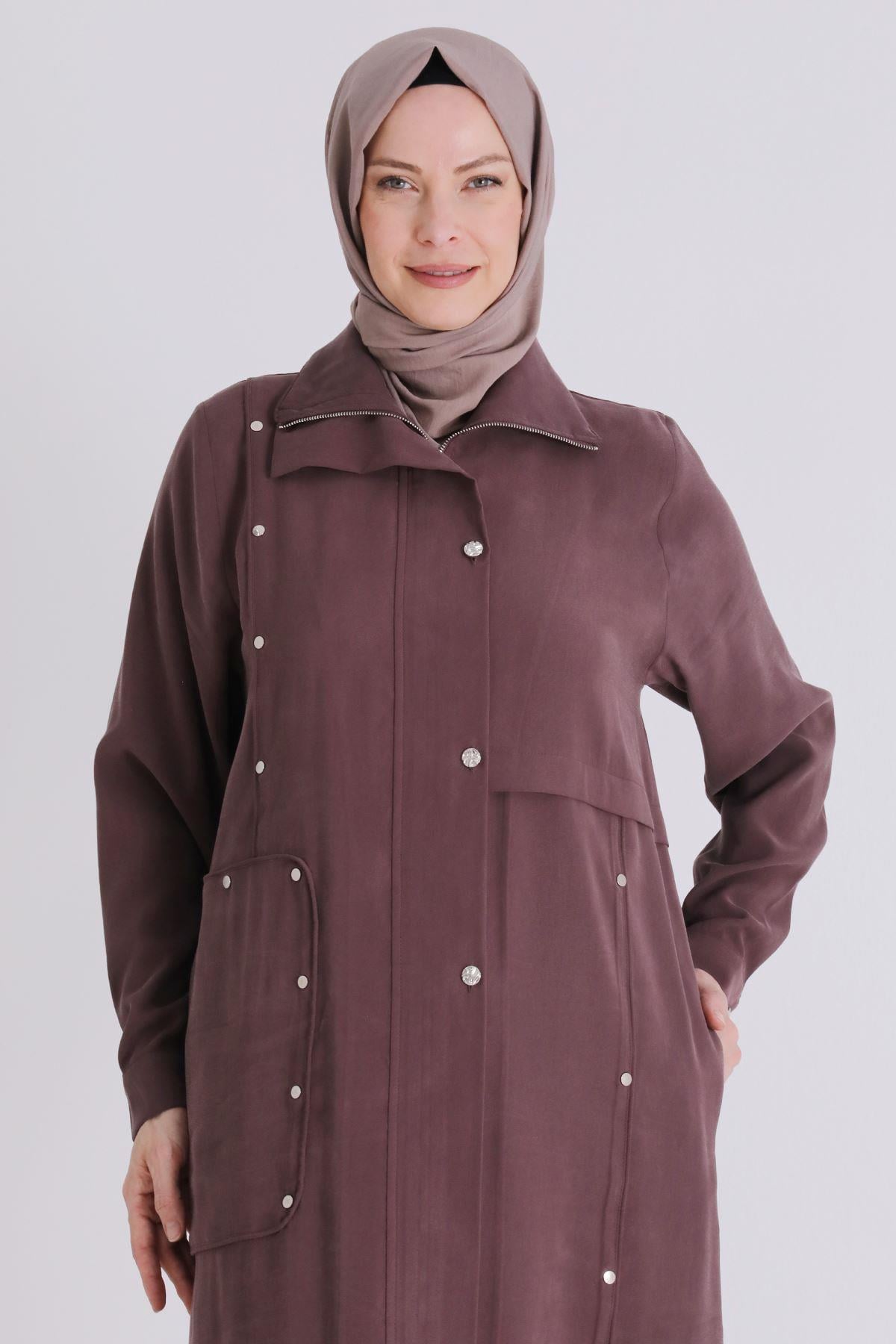 Behrem Büyük Beden Tesettür Ferace Soft Mürdüm OTW28079