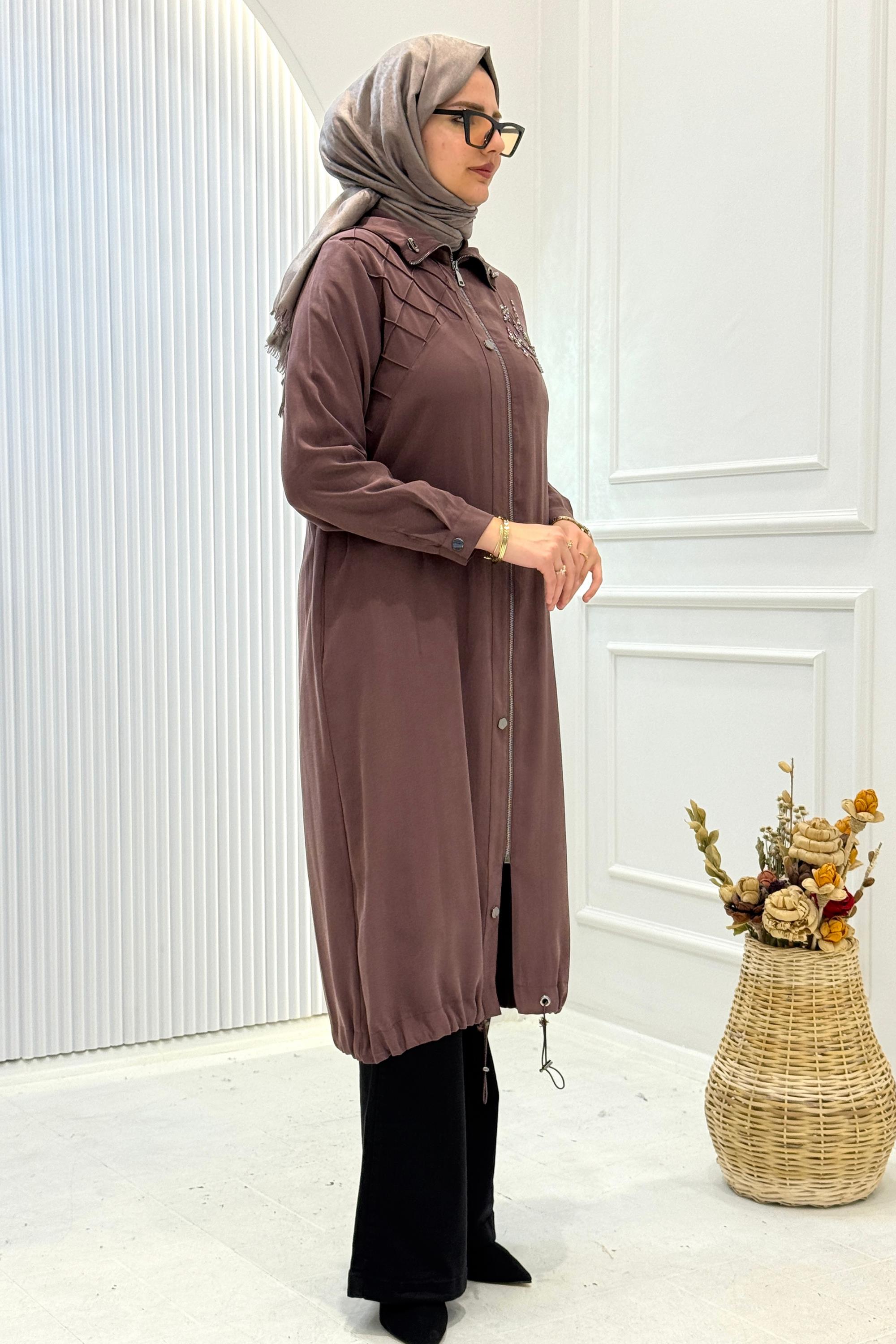Ürün Detayları: Önden fermuarlı devrik yaka ürünümüz iki yandan ceplidir. İşleme ve çima dikiş detaylıdır.