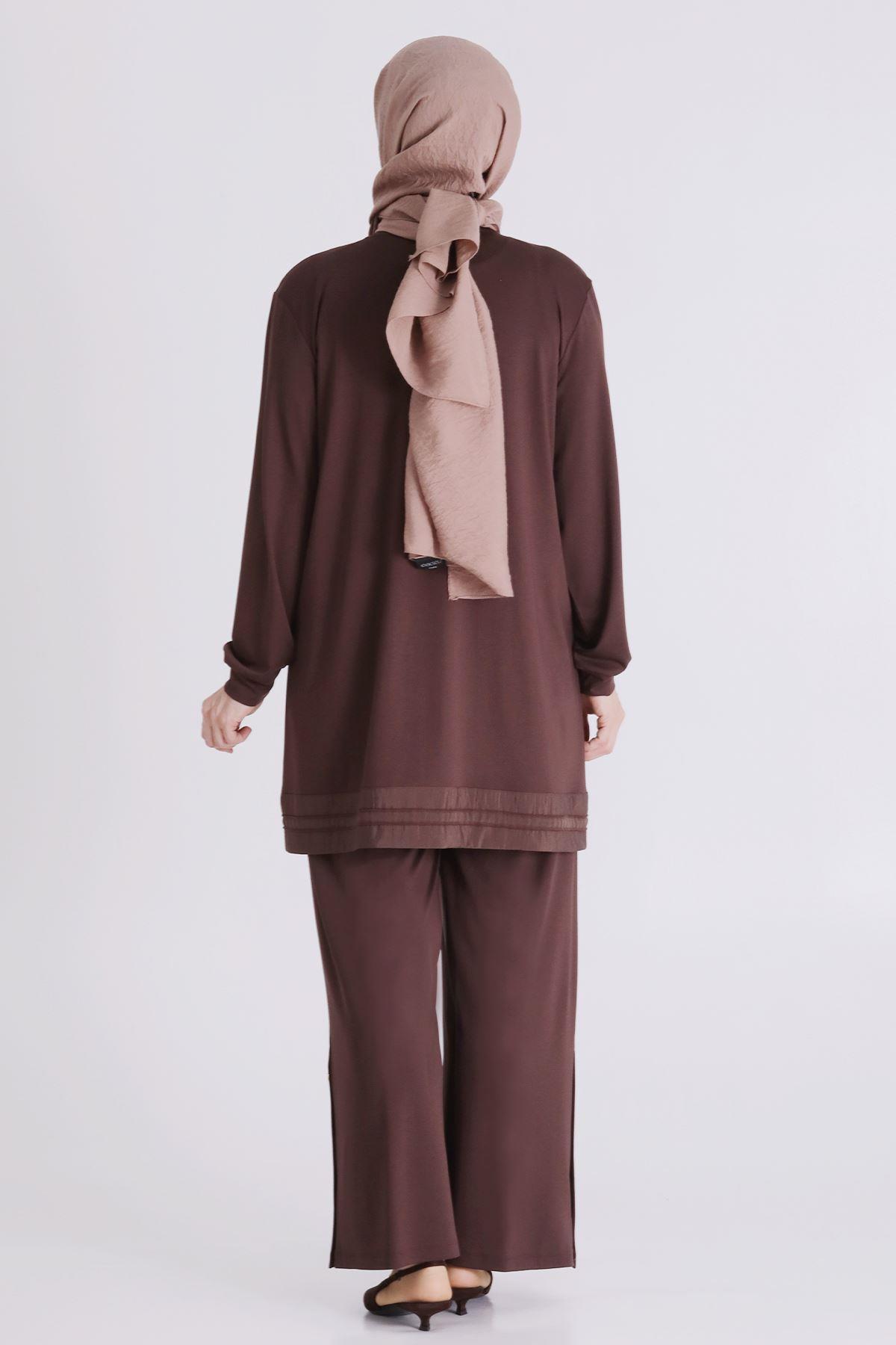 Behrem Büyük Beden Tesettür Pantolonlu Takım Kahve OTW3558