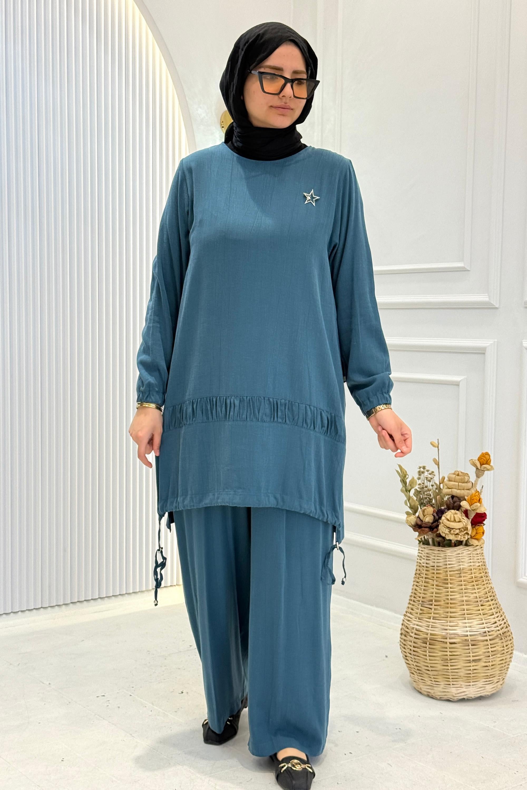 Behrem Büyük Beden Tesettür Pantolonlu Takım Petrol OTW3556