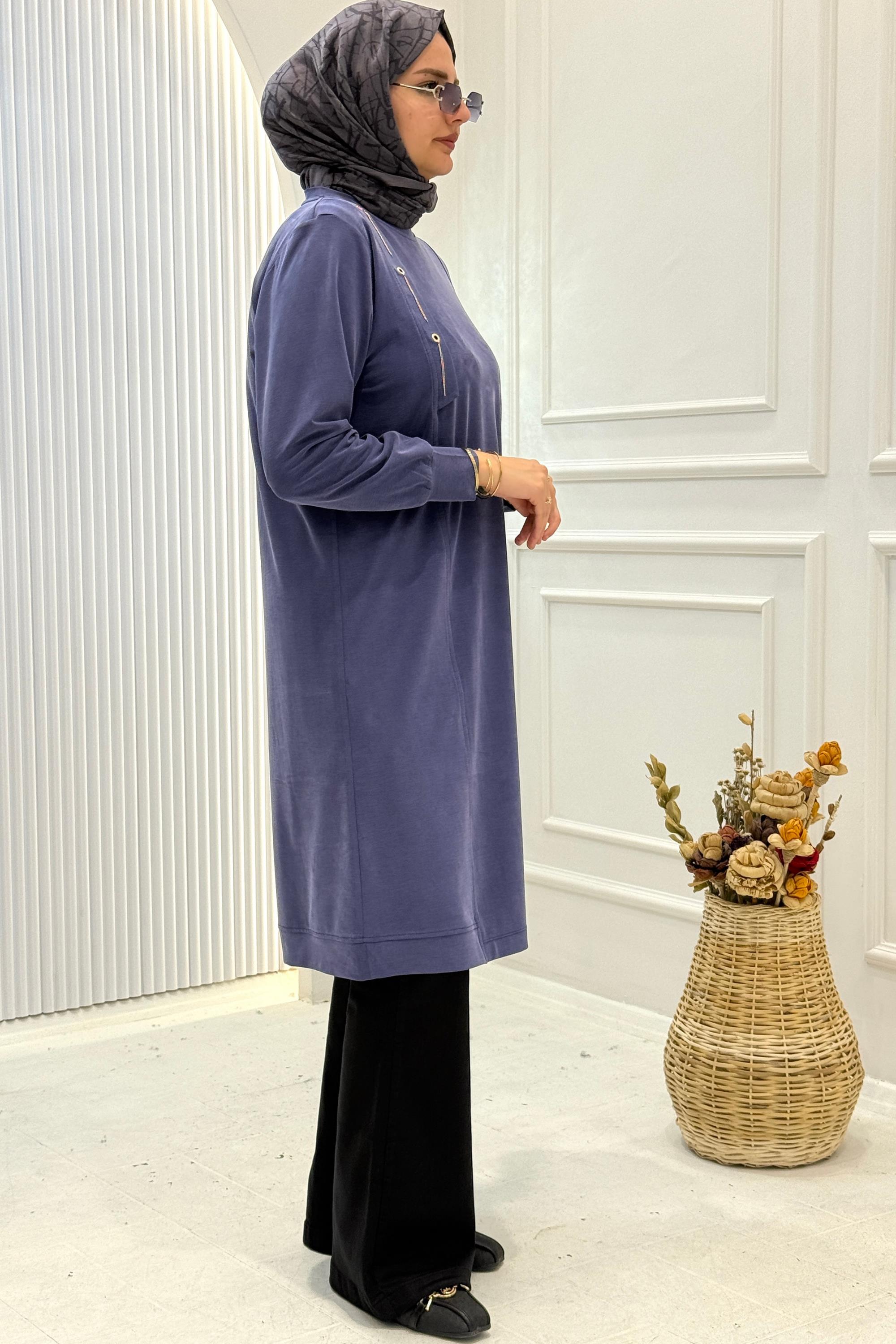 Behrem Büyük Beden Tesettür Tunik İndigo OTW20139