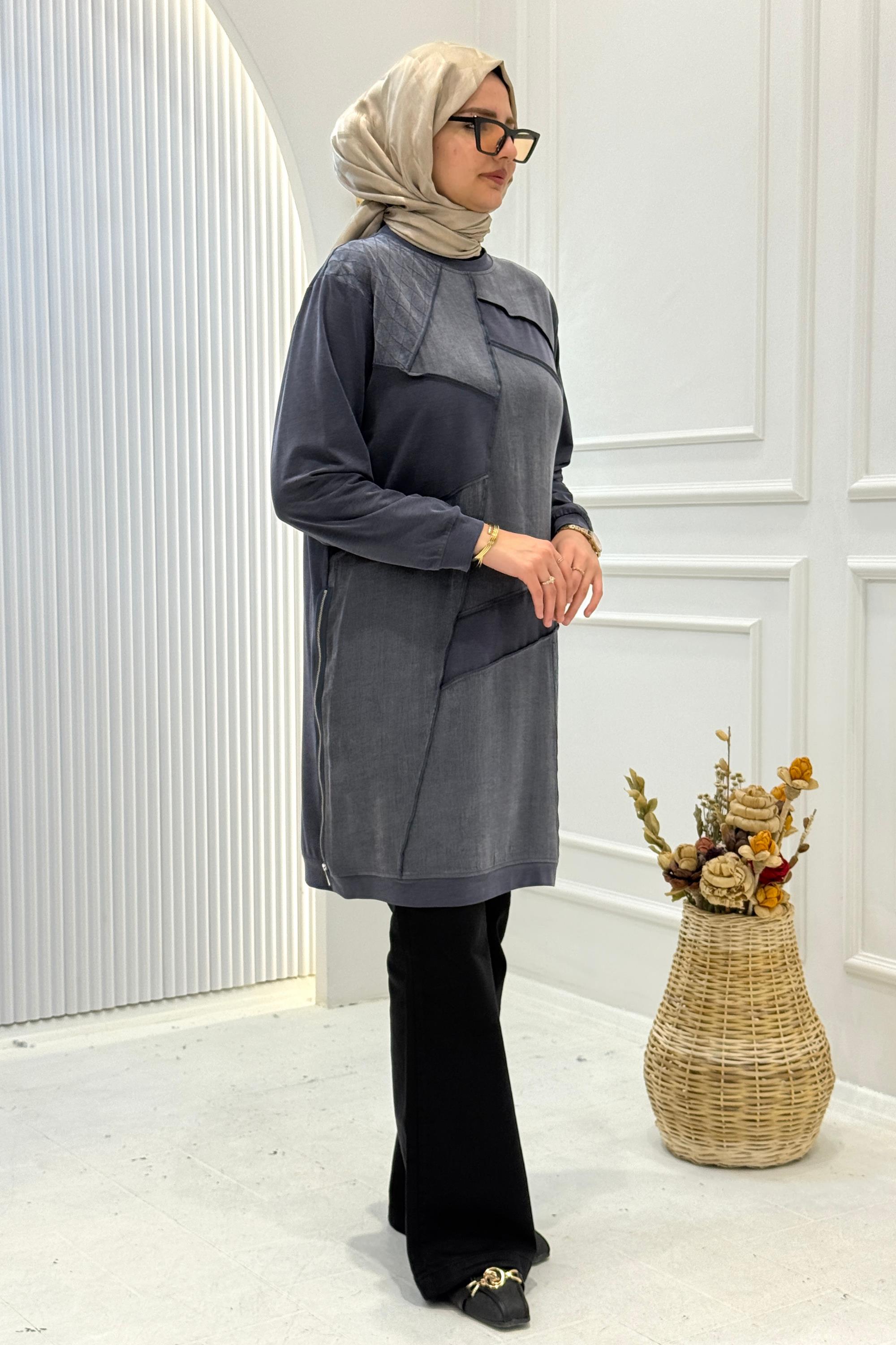 Behrem Büyük Beden Tesettür Tunik Lacivert OTW20137