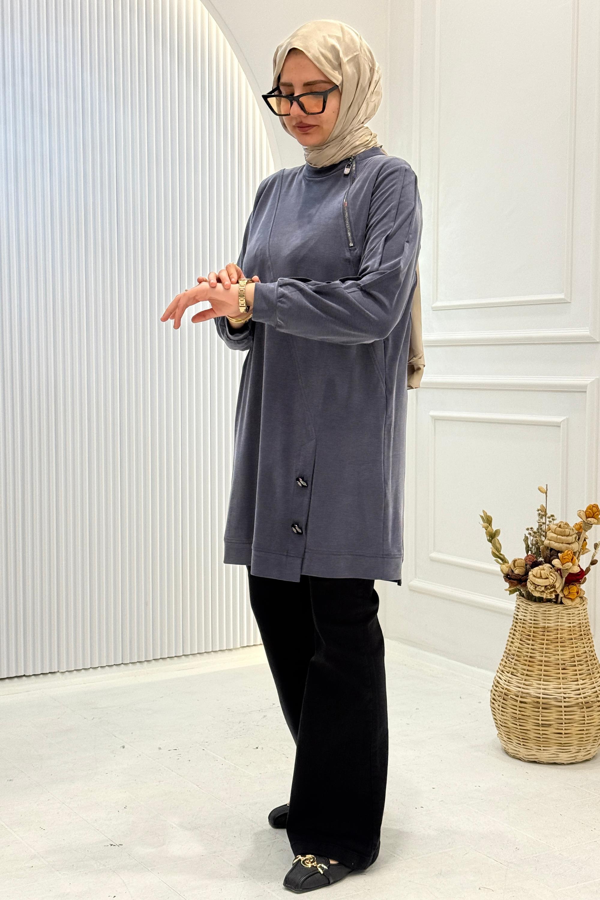 Ürün Detayları: Fermuarlı, sıfır yaka ürünümüz takma kol olup, nervür ve düğme aksesuarları ile hareketlendirilmiştir.