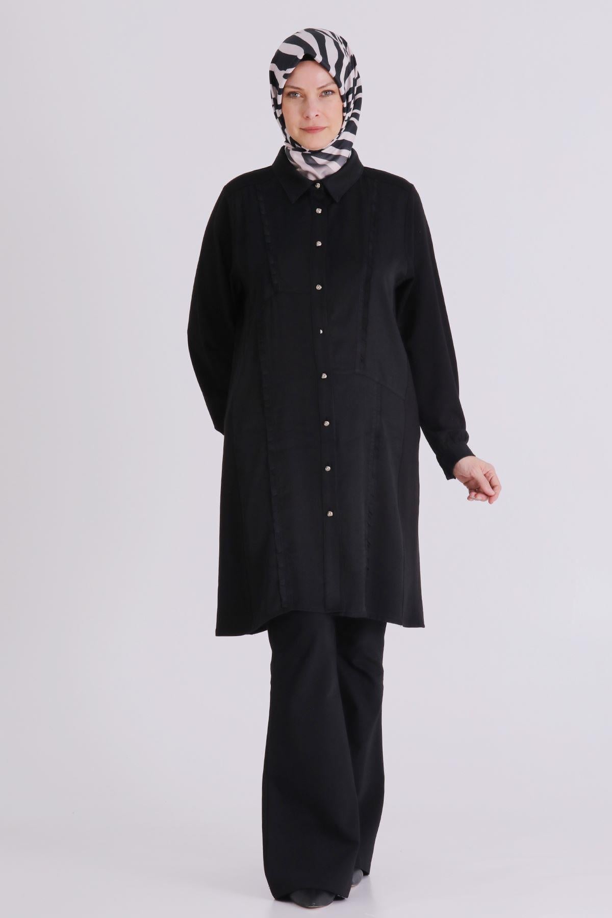 Behrem Büyük Beden Tesettür Tunik Siyah OTW23035