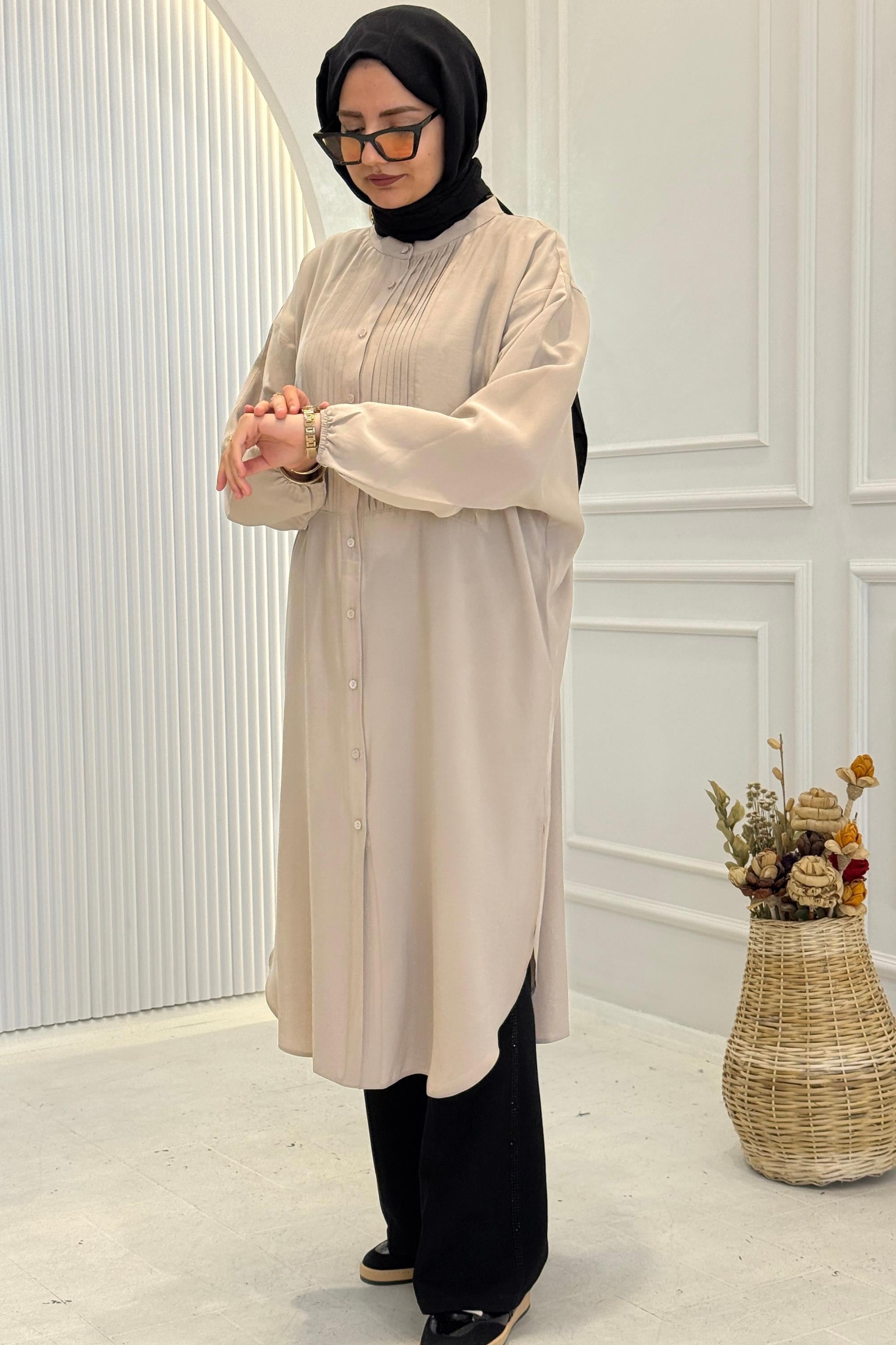 Ürün Detayları: Hakim yaka önden düğmeli ürünümüz yarasa koldur. Nervür detaylar ile hareketlendirilmiş olup kol ucu lastiklidir.
