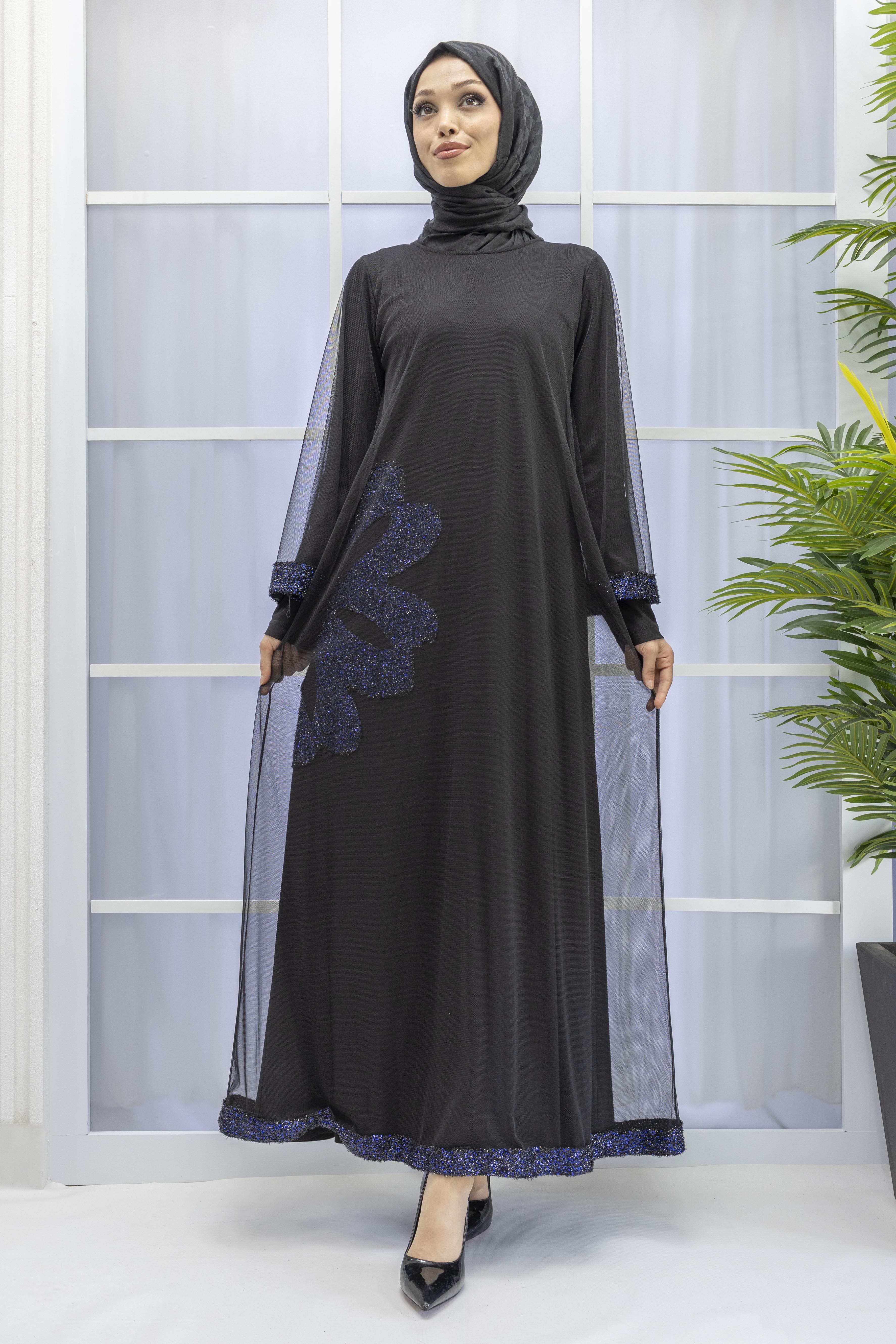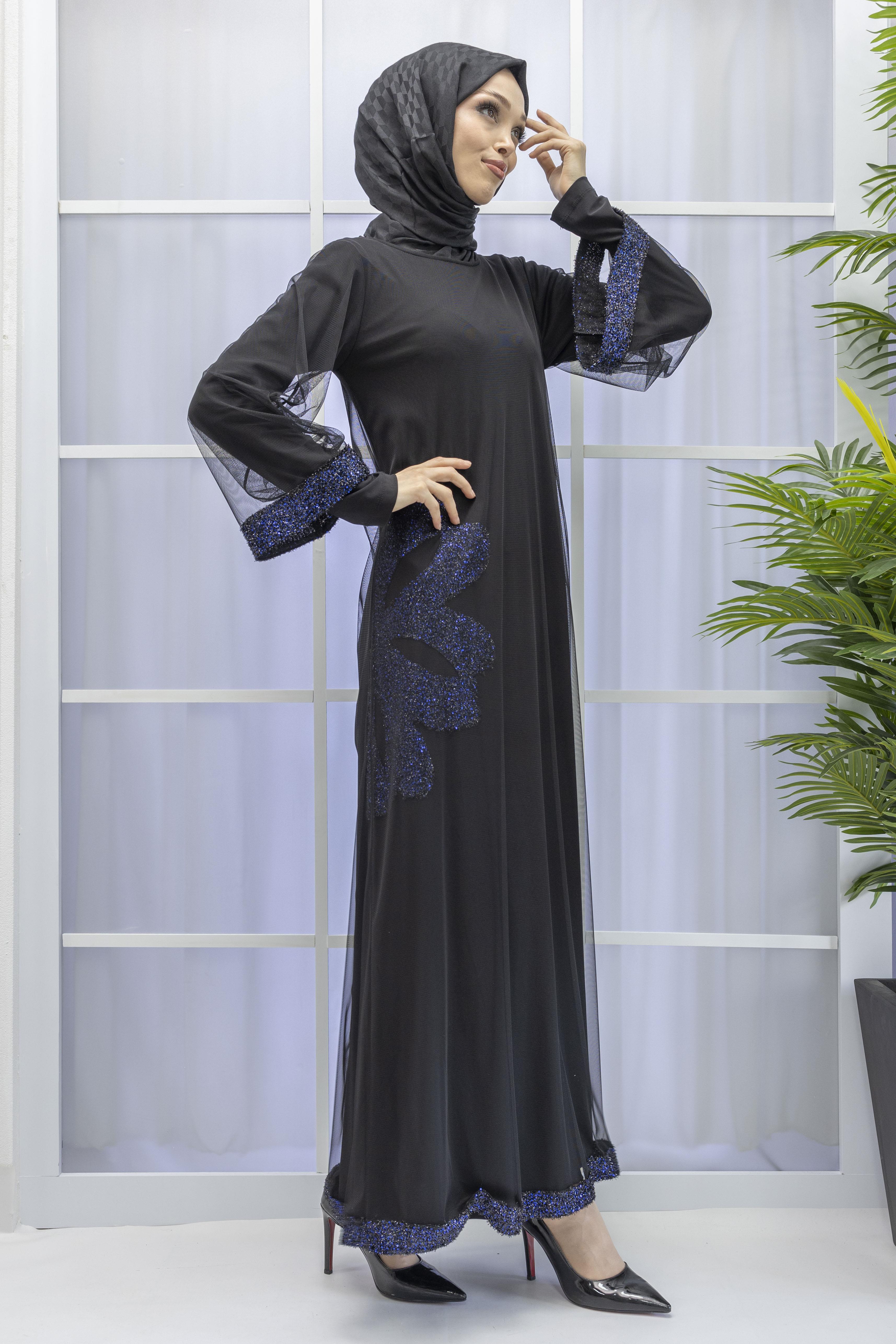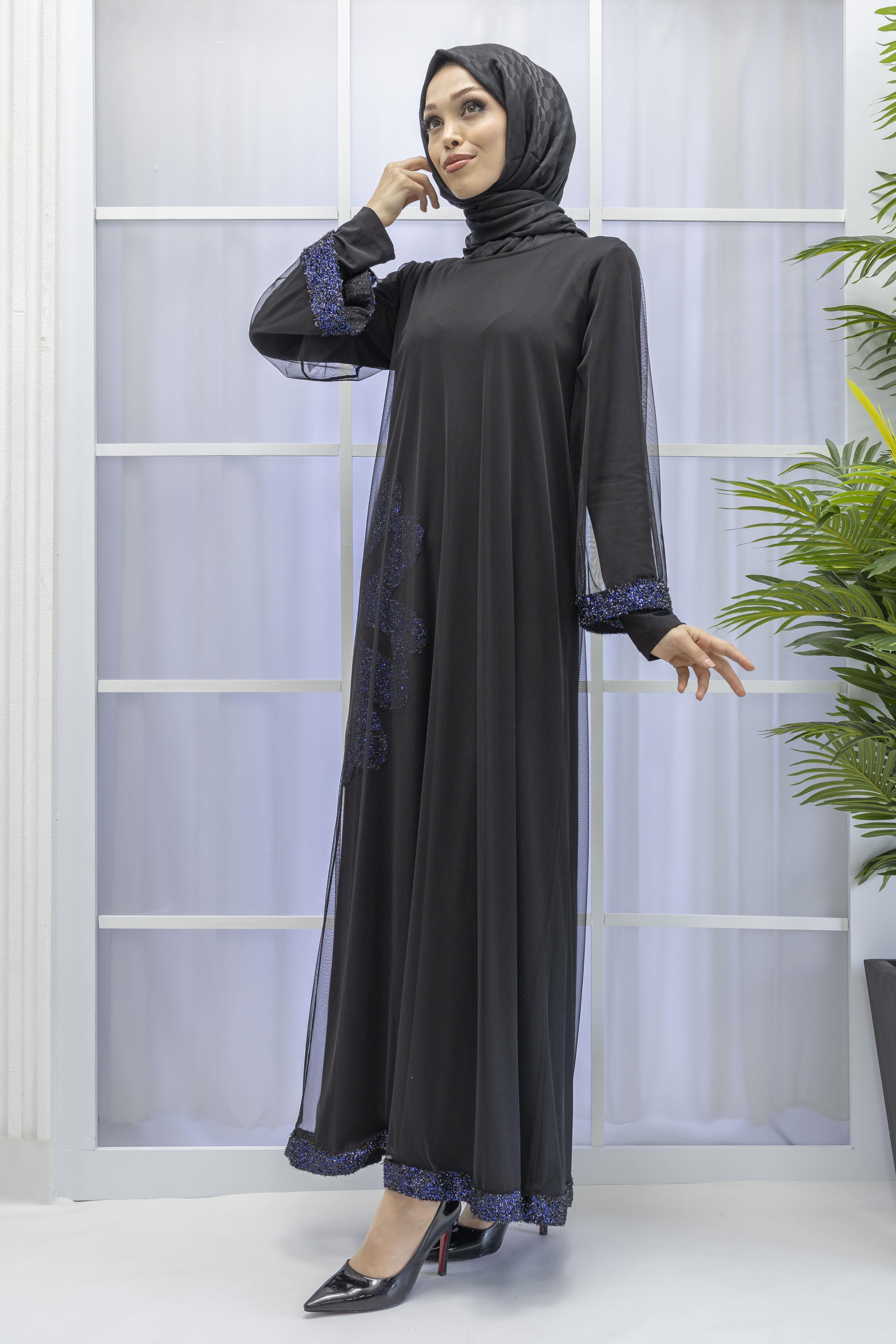 Büyük Beden Tüllü Payetli Elbise Mavi OTW7082