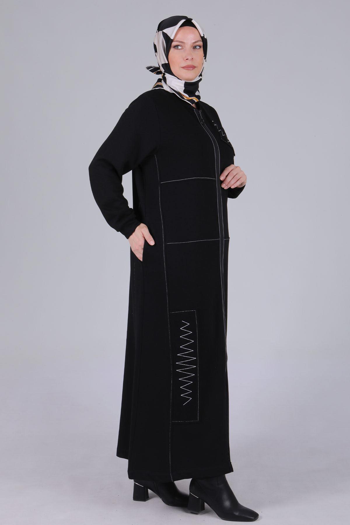 Behrem Büyük Beden Üç İplik Ferace Siyah OTW2816