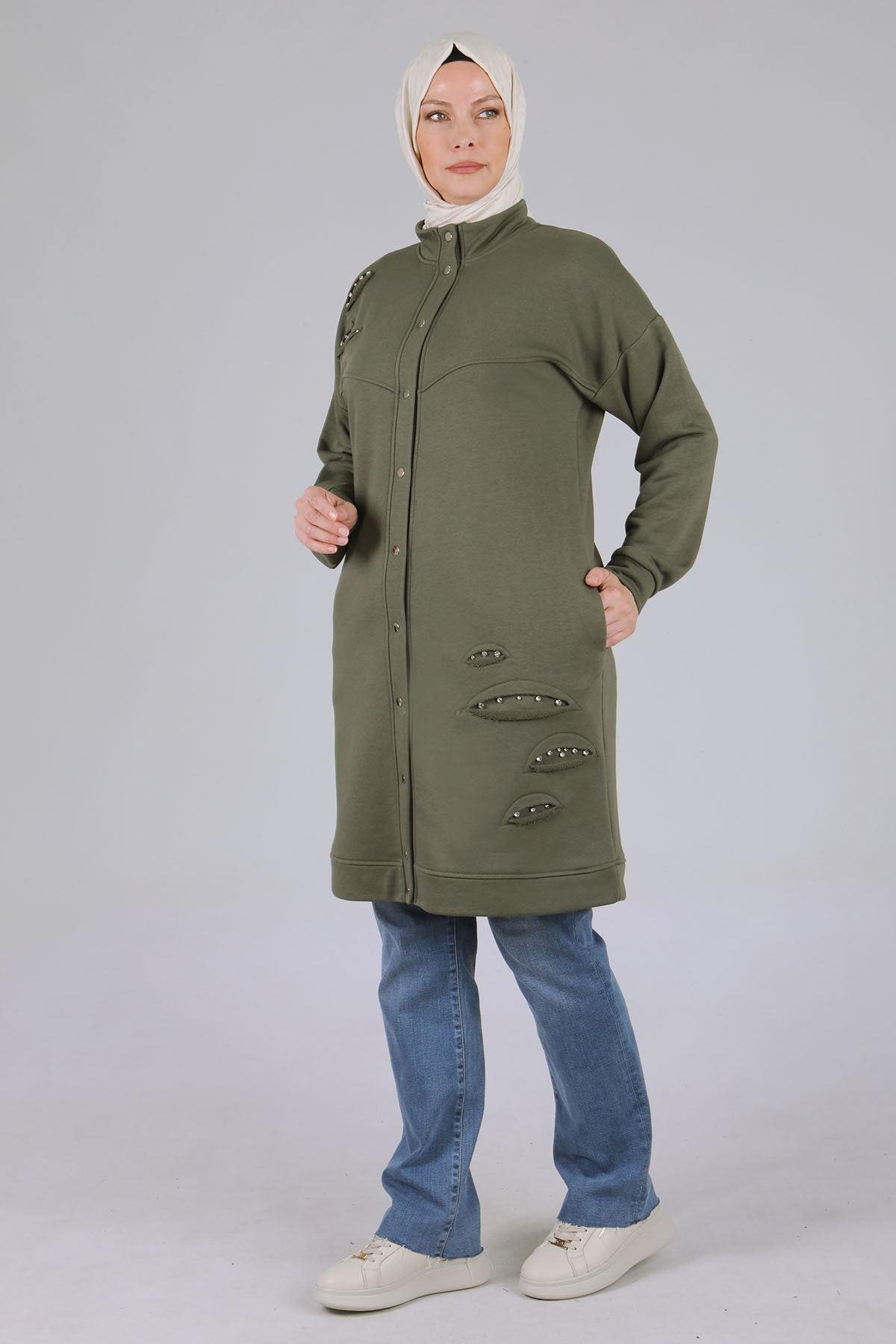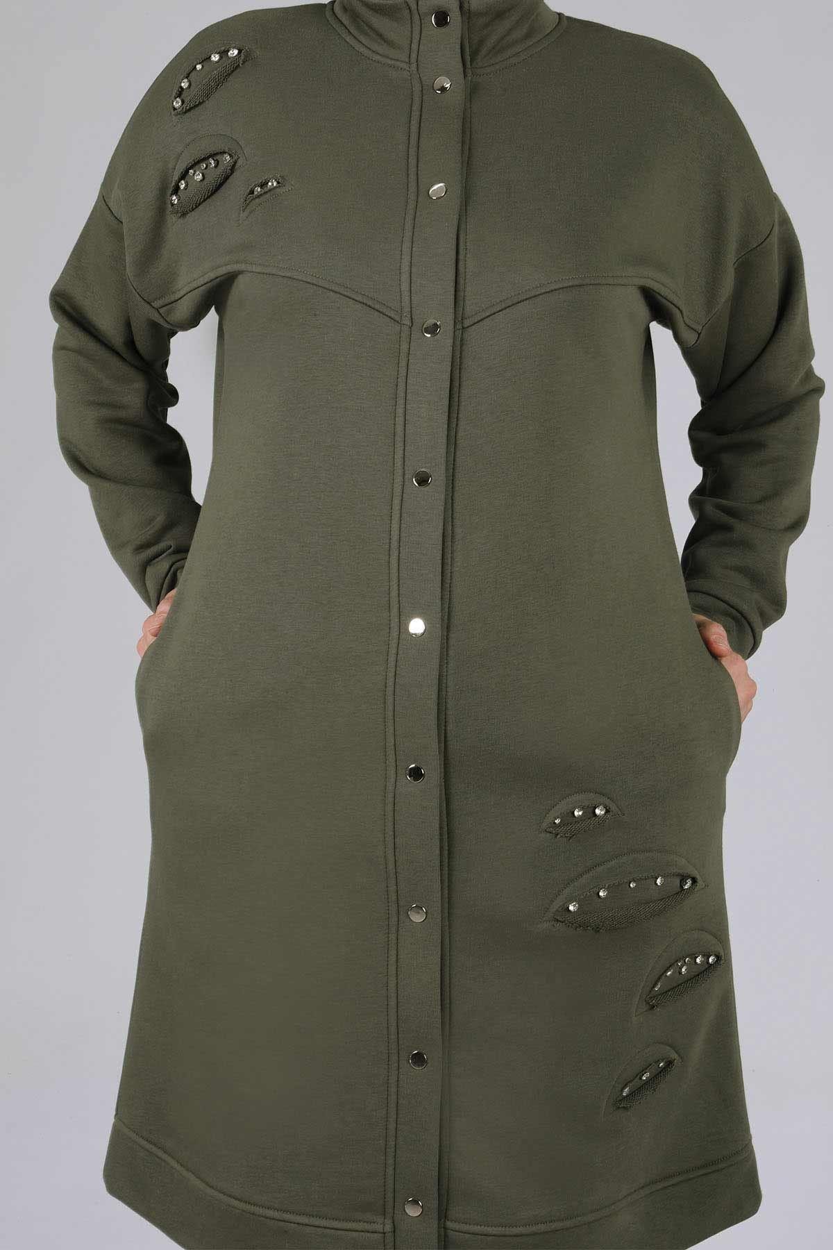 Ürün Detayları: Düşük kol dik yaka kap modelimiz taş detayları bulunmaktadır. Önden çıtçıtlı ve iki yandan ceplidir.