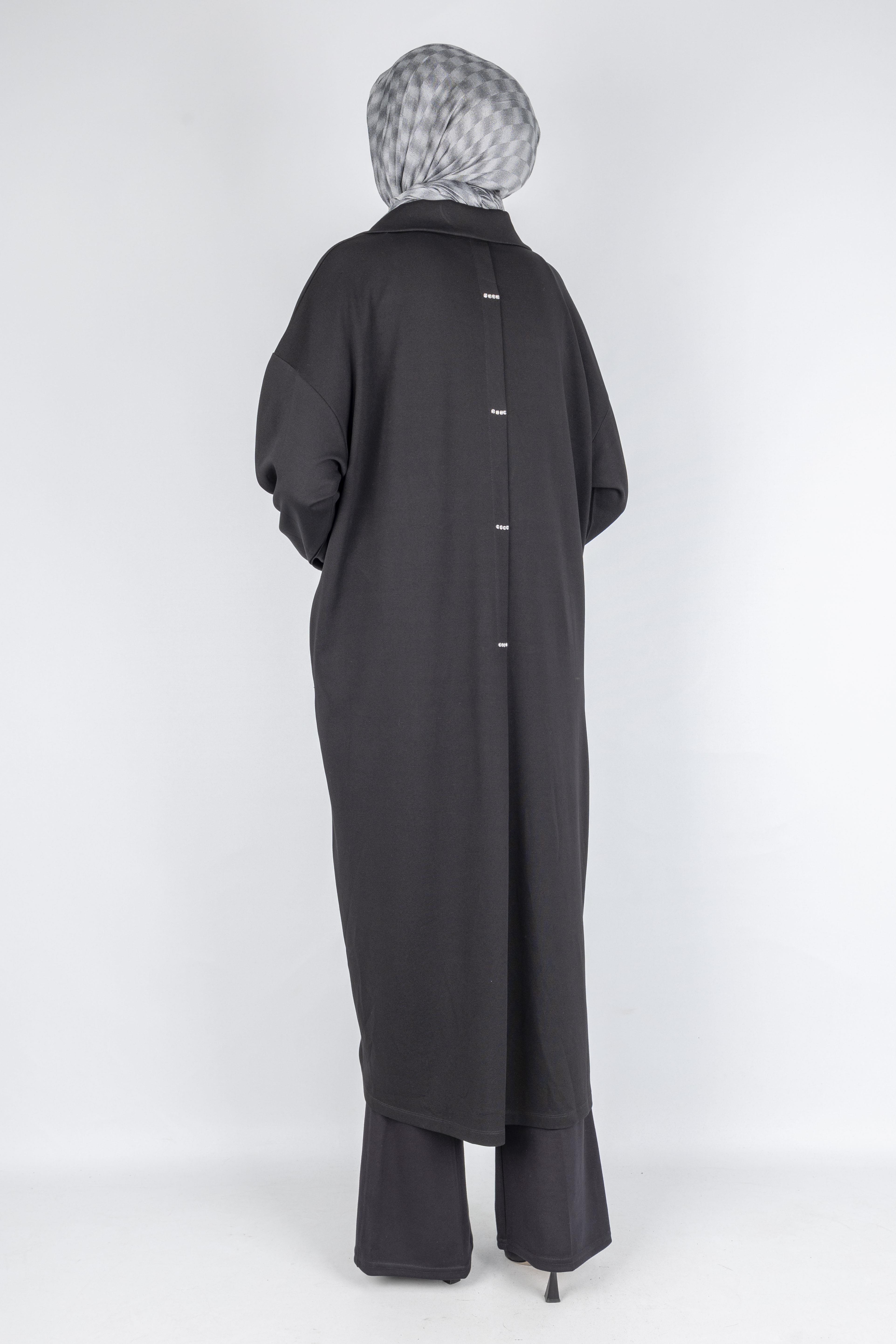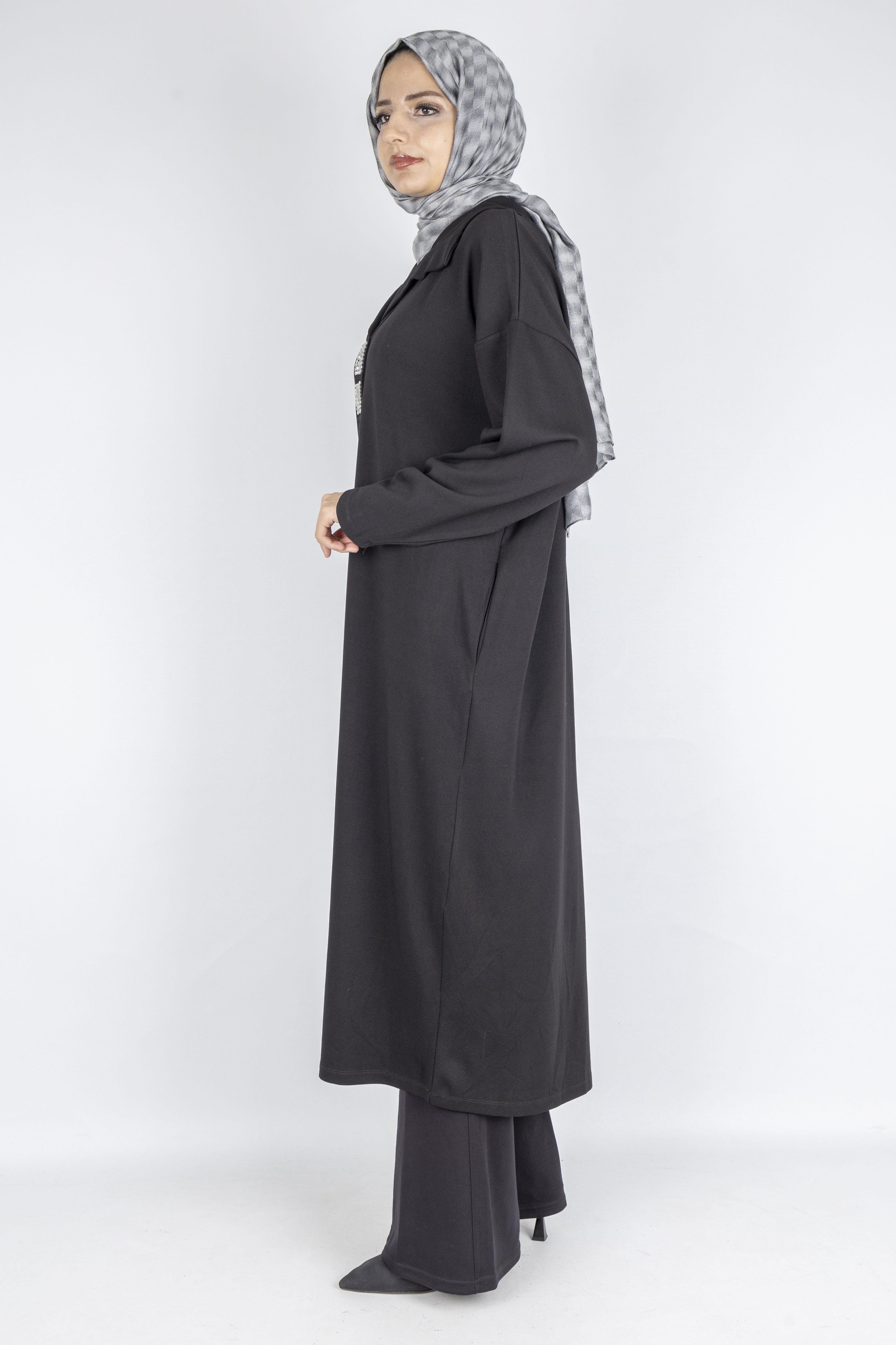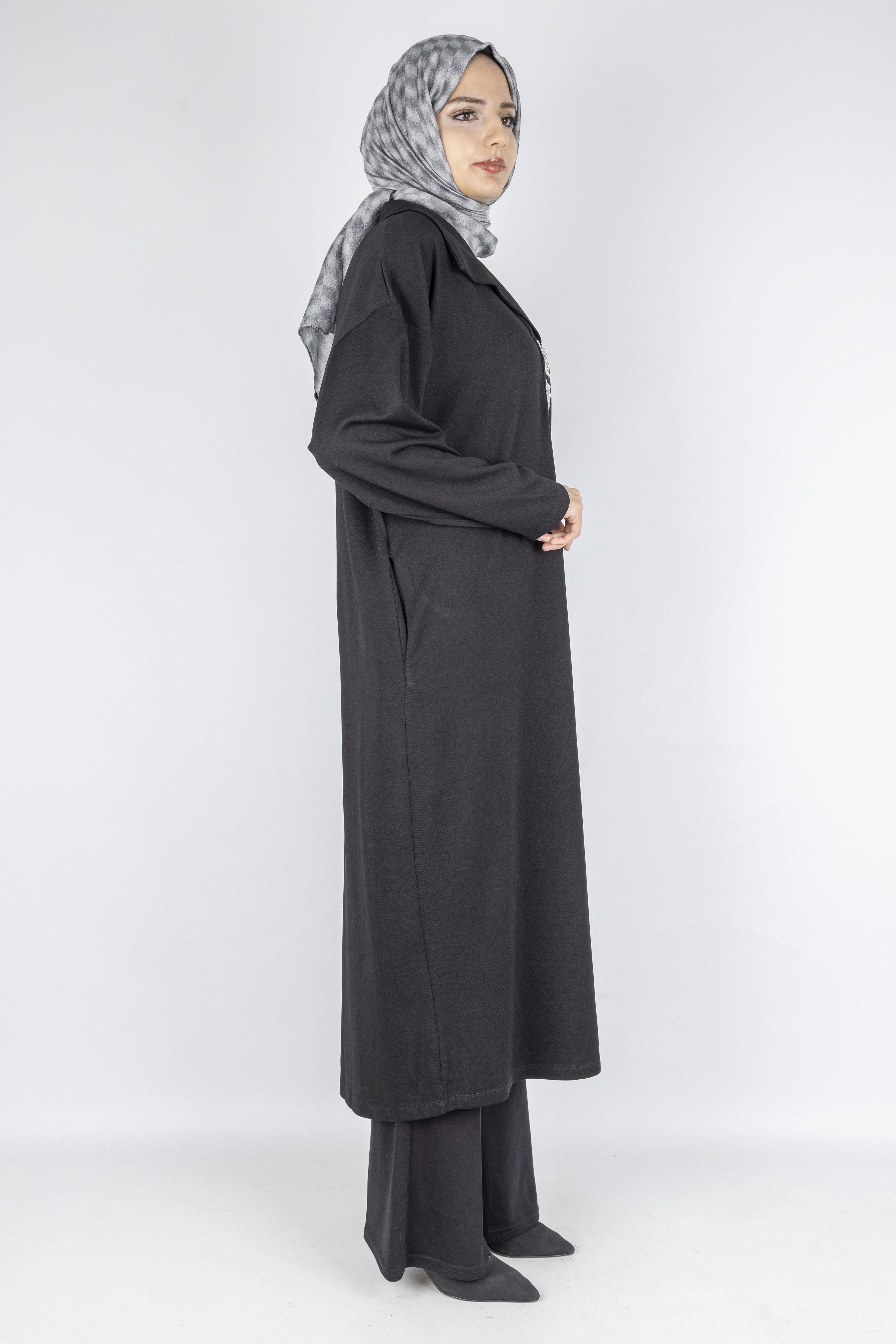 Çelik Örme Büyük Beden Taş Detaylı Elbise Siyah OTW7804