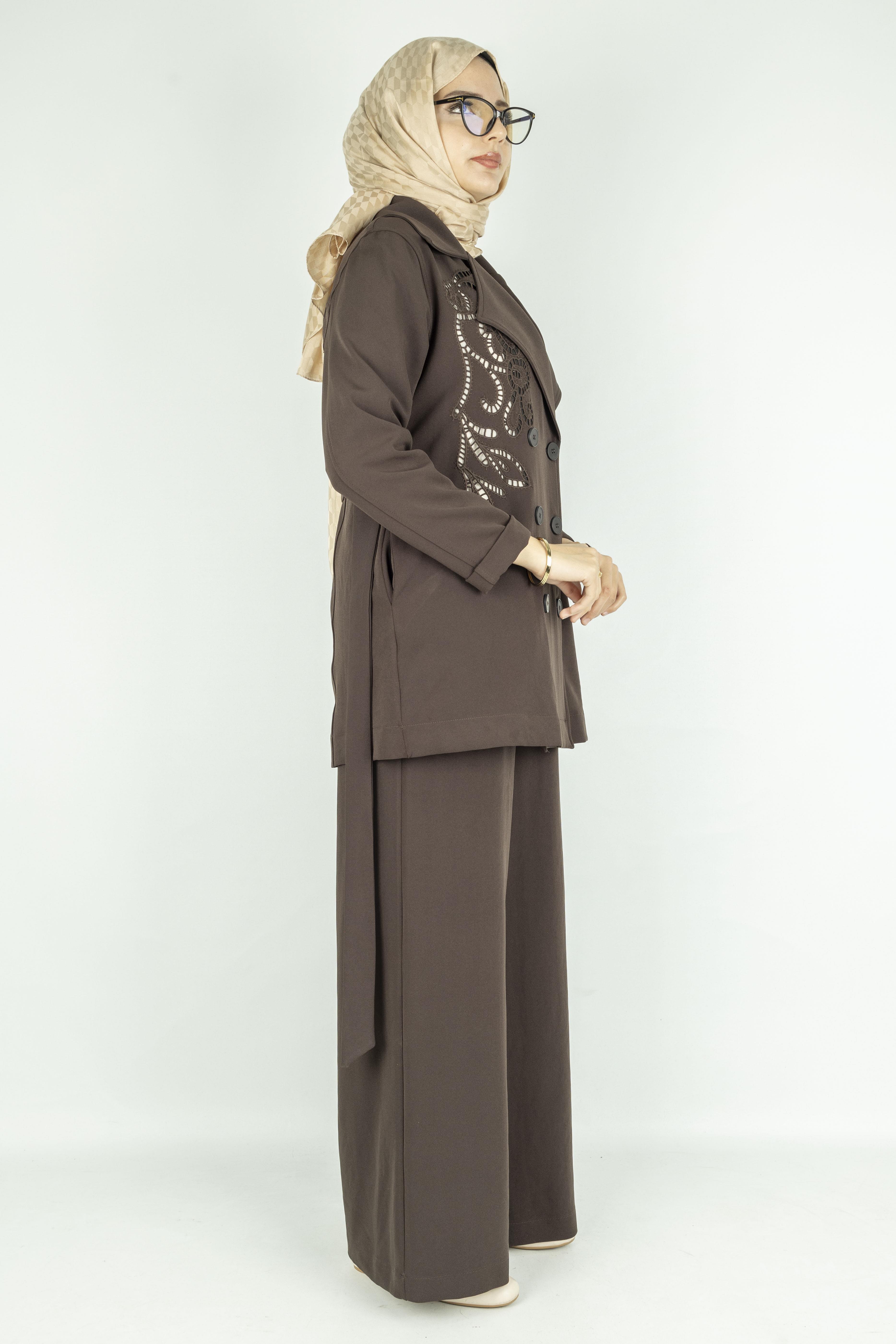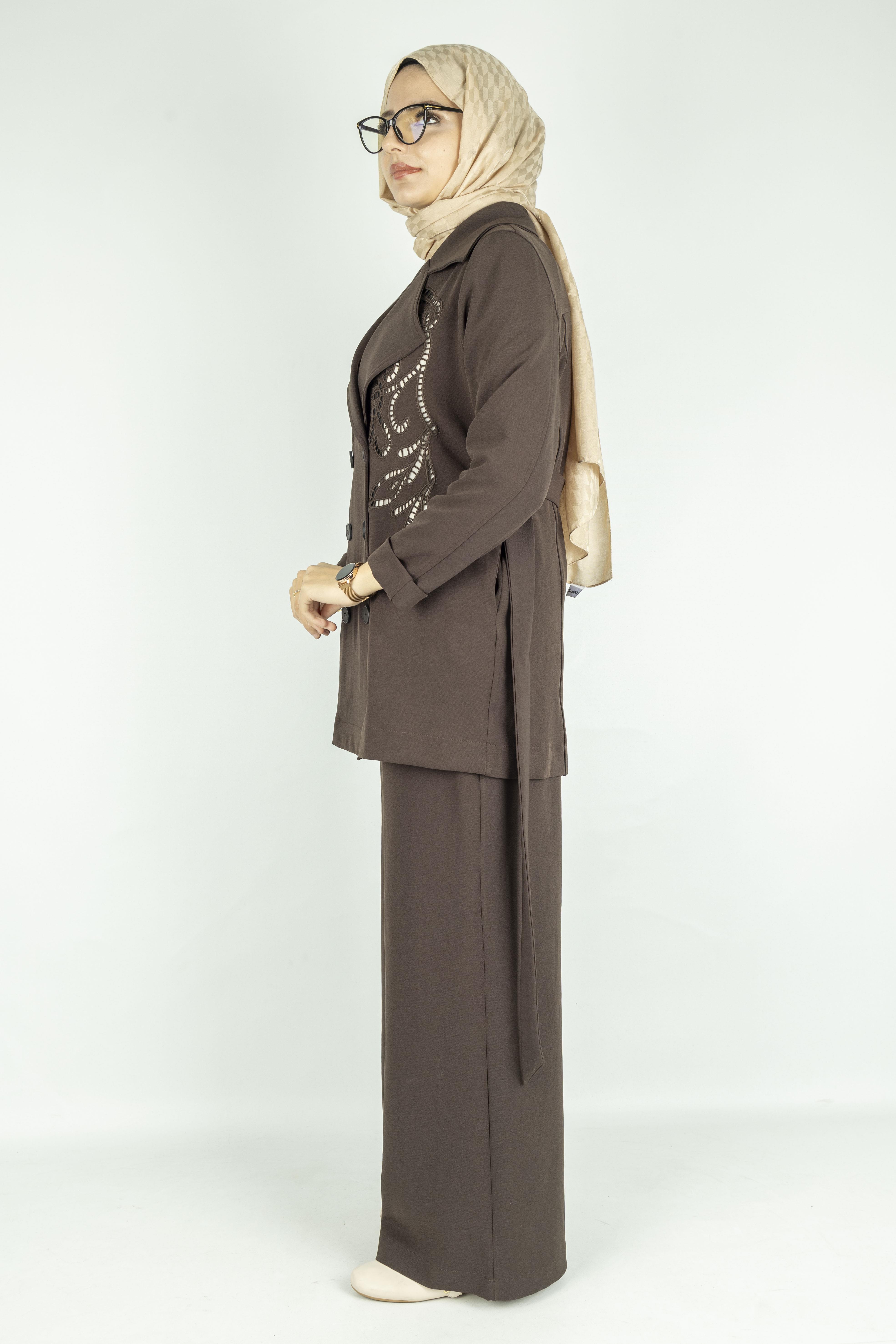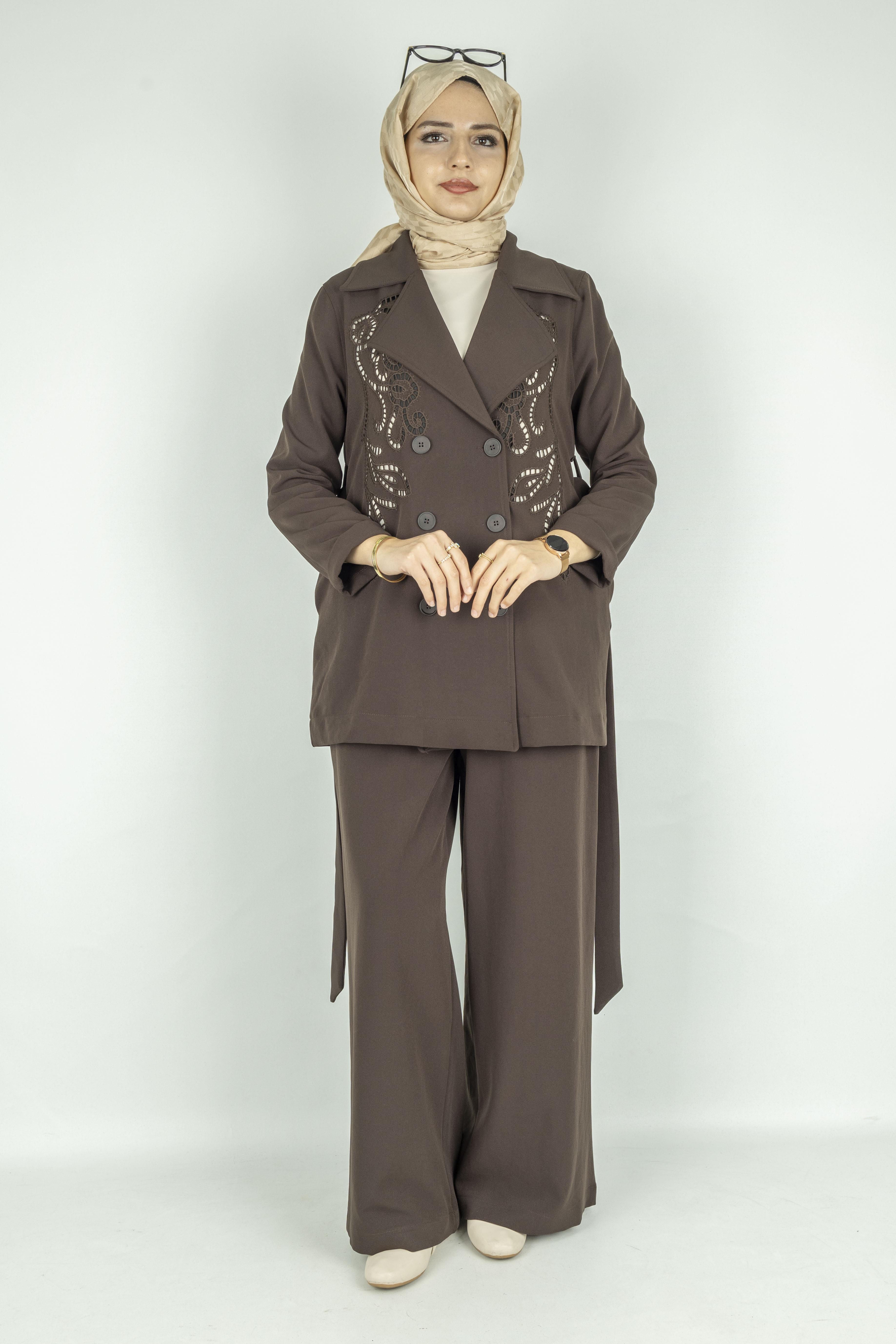 Çelik Örme Kruvaze Ceketli Takım Kahve OTW25573