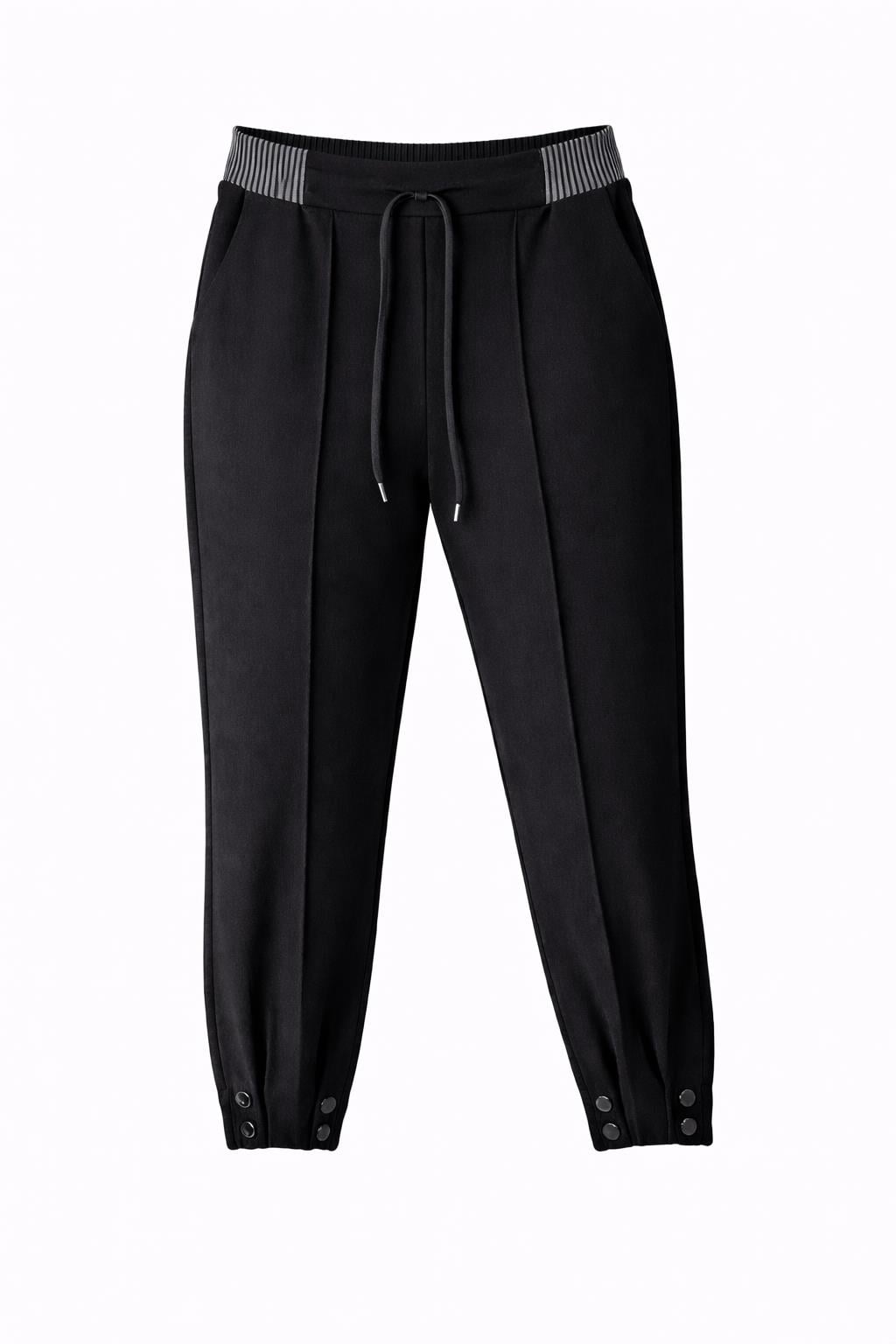 Çelik Örme Paçası Çıtçıtlı Pantolon Siyah OTW371