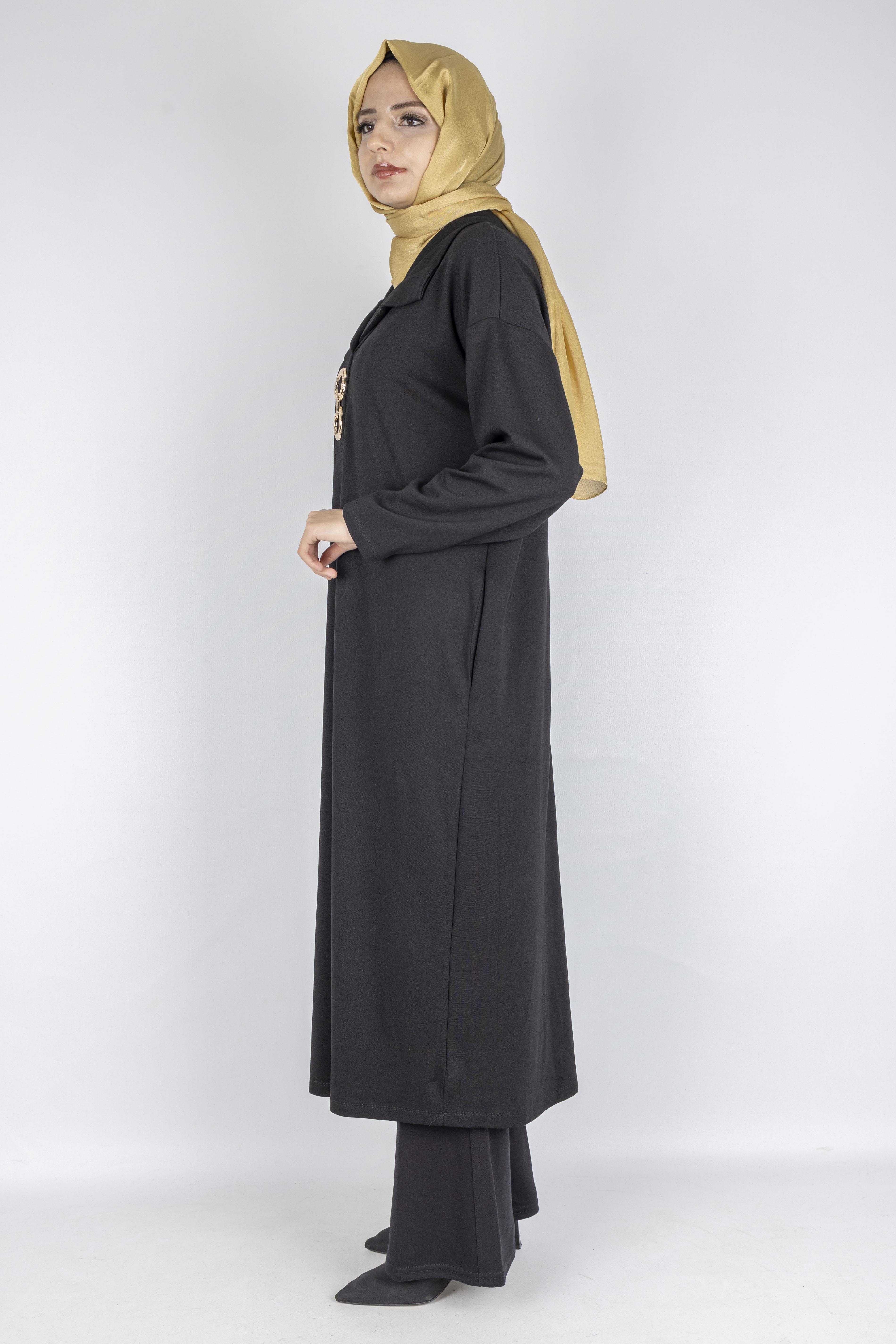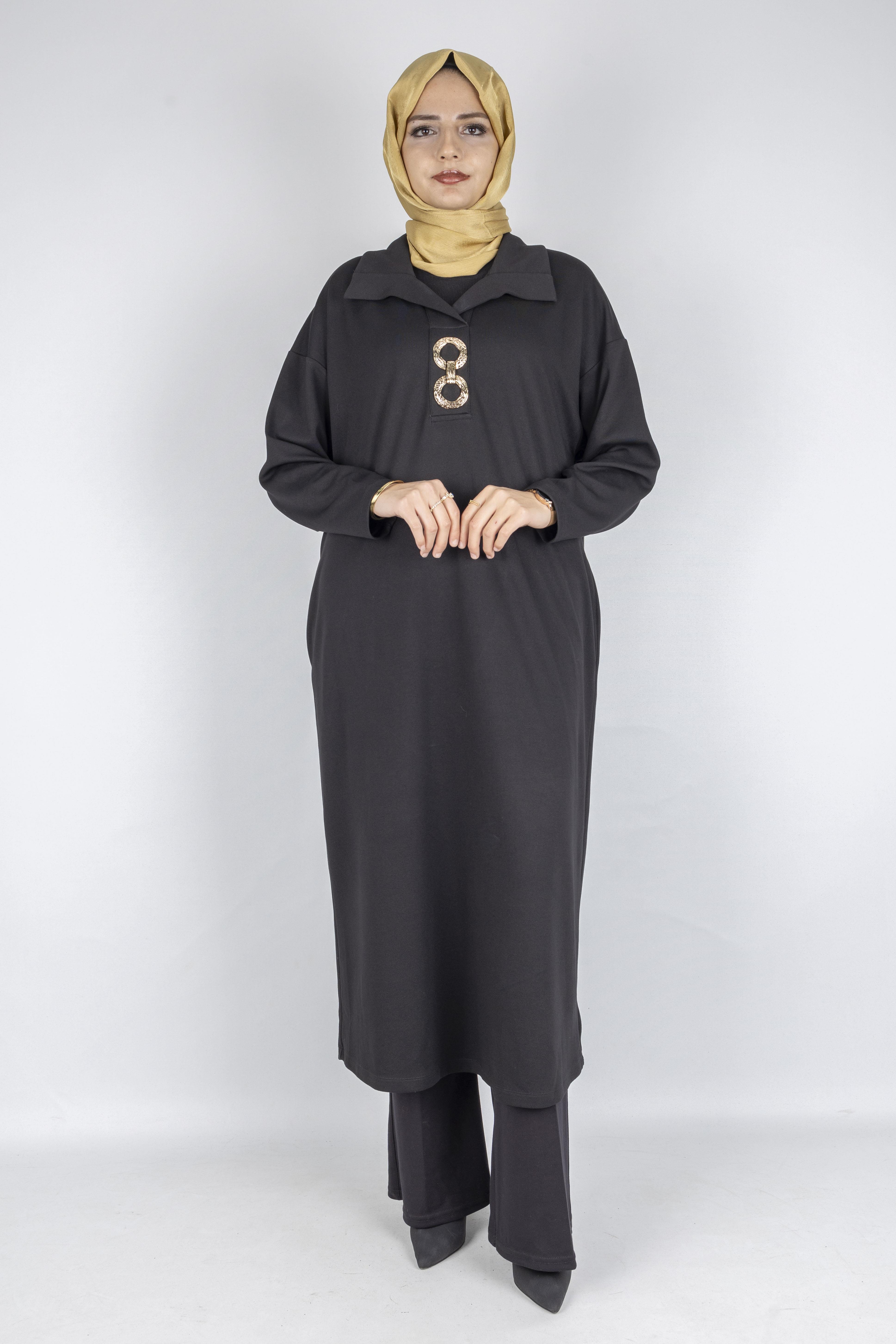 Çelik örme kumaştan üretilen bu şık ve modern tasarım, hem tunik hem elbise olarak kullanılabilir yapısıyla dolabınızın vazgeçilmezi olmaya adaydır. Dökümlü dokusu, rahat kalıbı ve zarif aksesuar detayı ile konforu ve şıklığı bir araya getirir. Günlük kombinlerden özel davetlere kadar her ortamda rahatlıkla tercih edebilirsiniz.