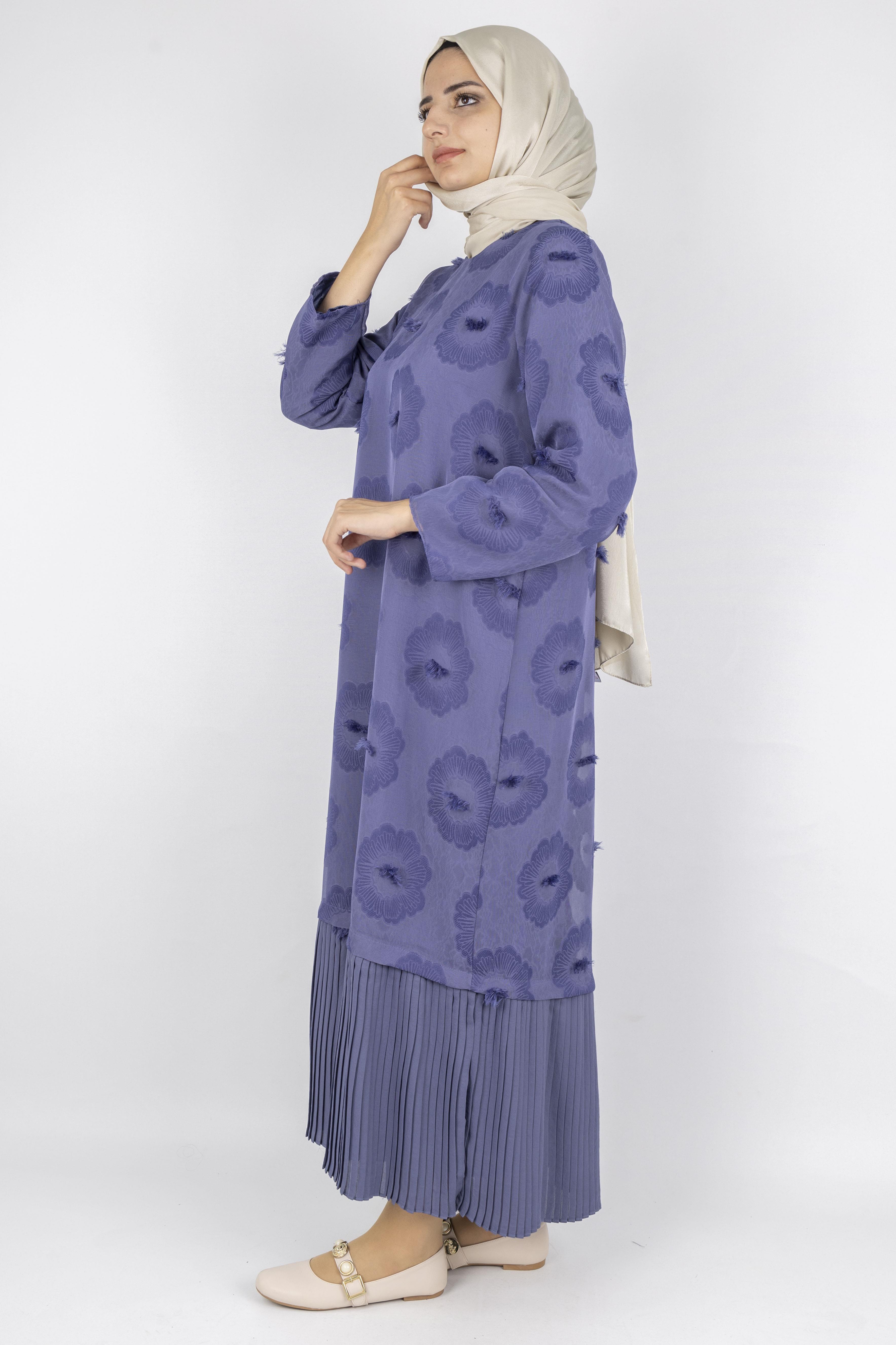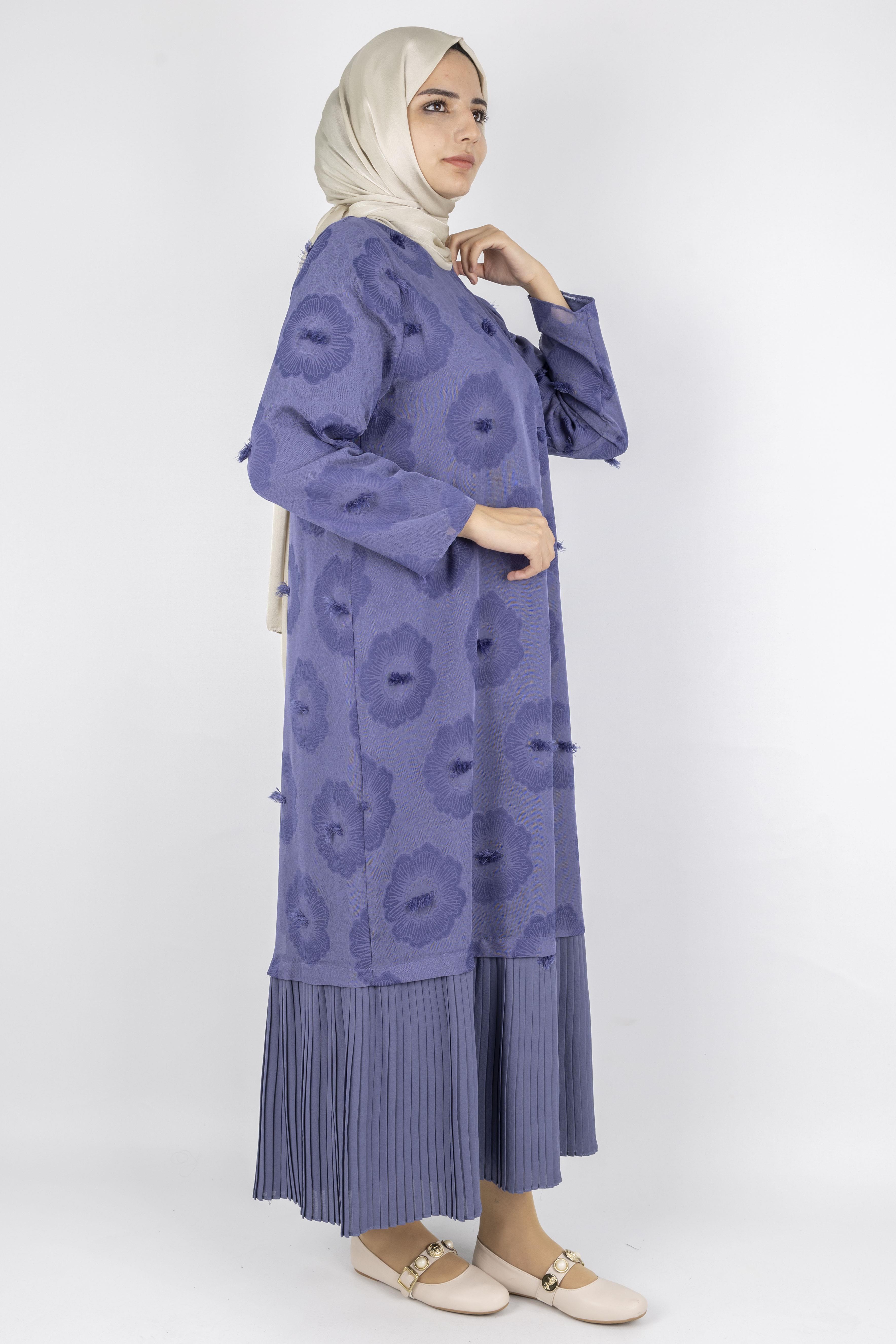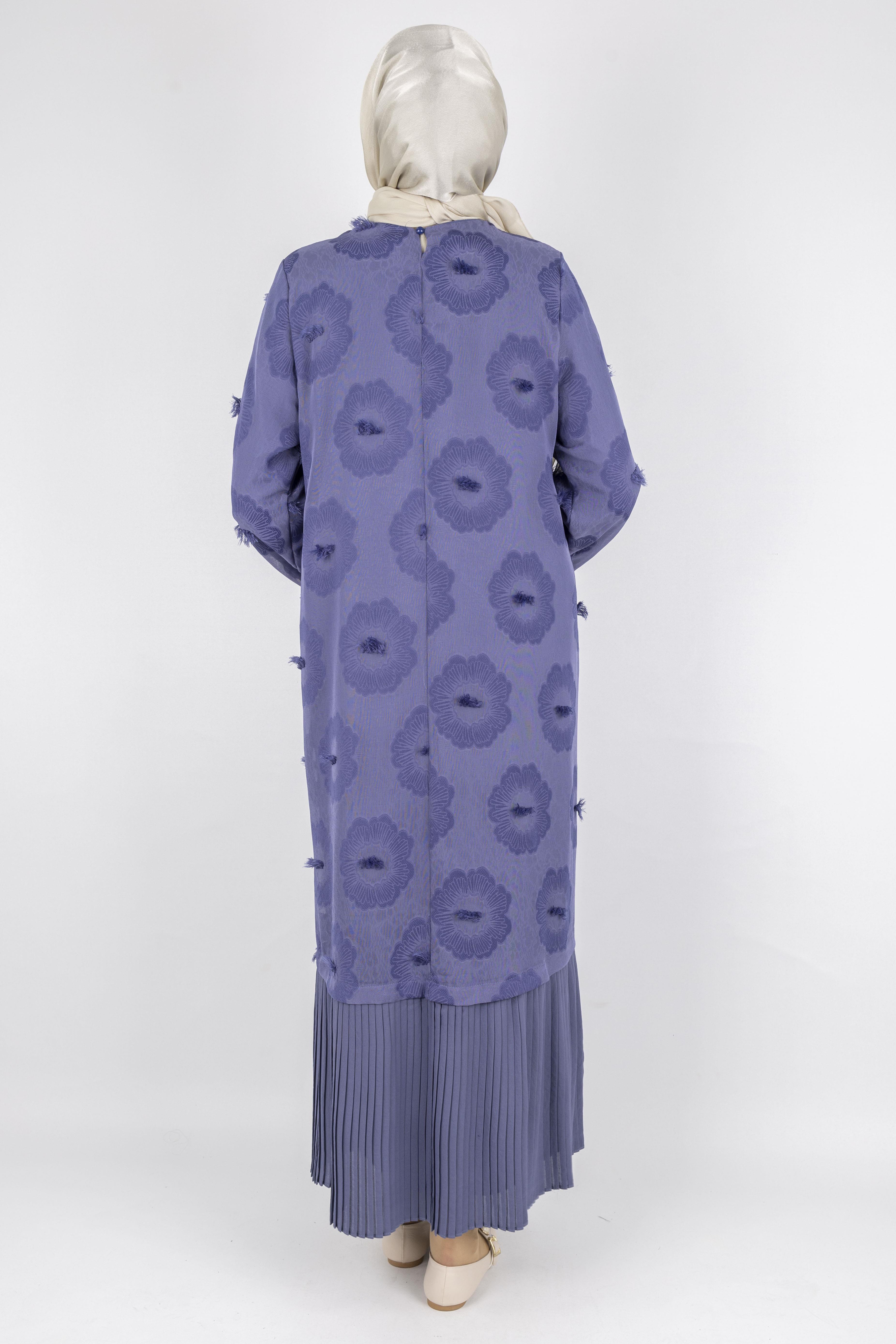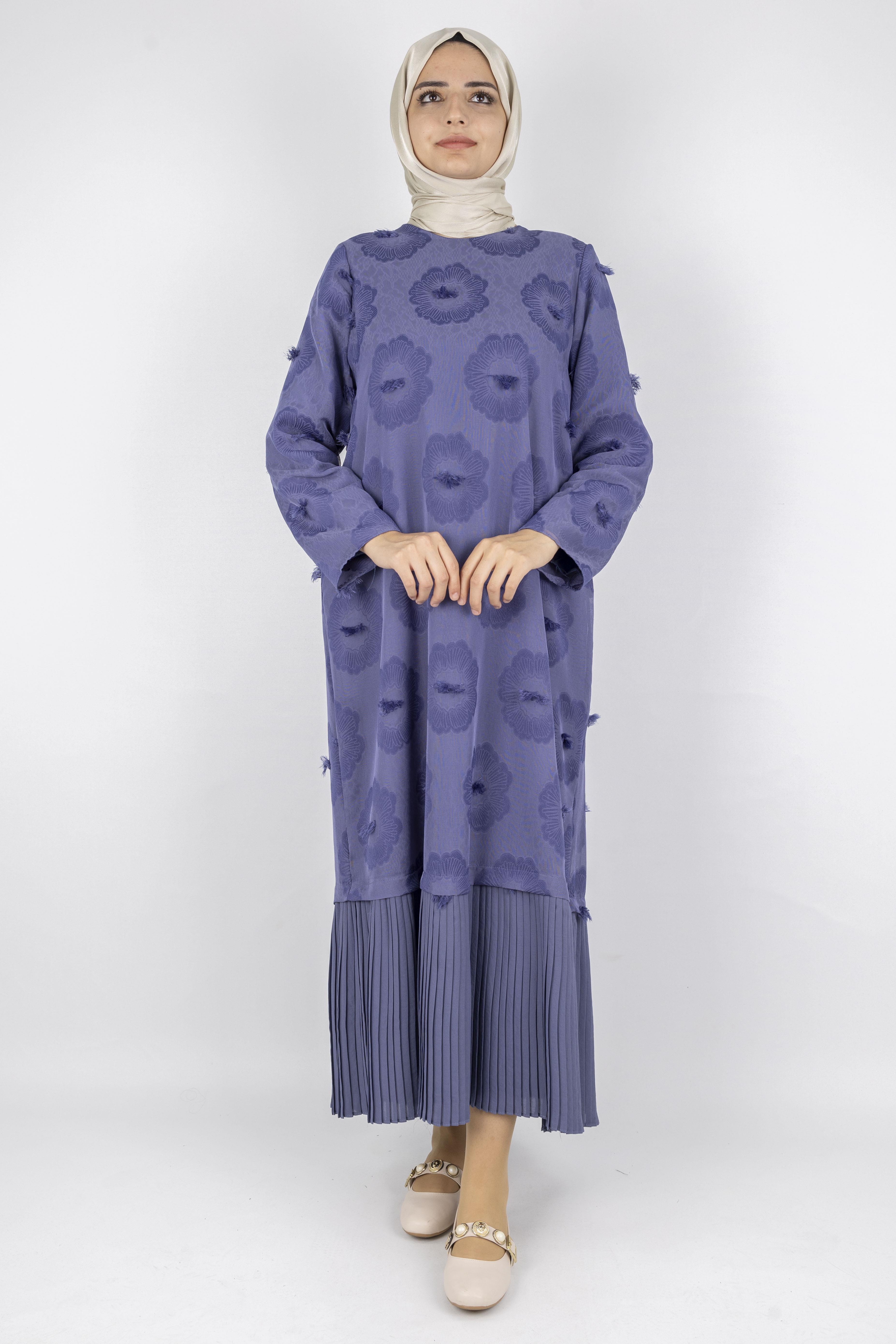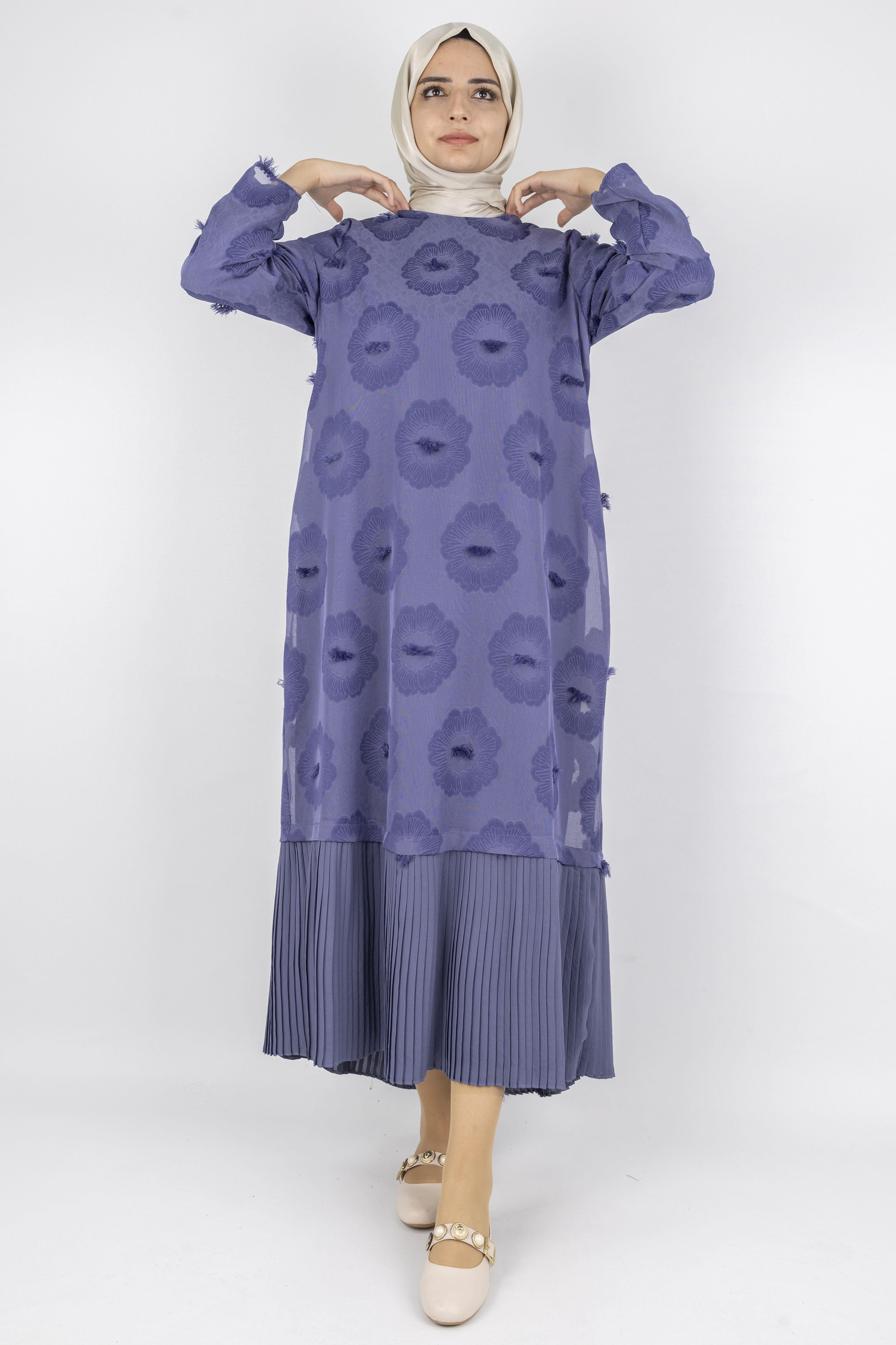 Dule Astarlı Çiçek Desenli Pliseli Tesettür Elbise Siyah OTW936 Dule Astarlı Çiçek Desenli Pliseli Tesettür Elbise İndigo OTW936