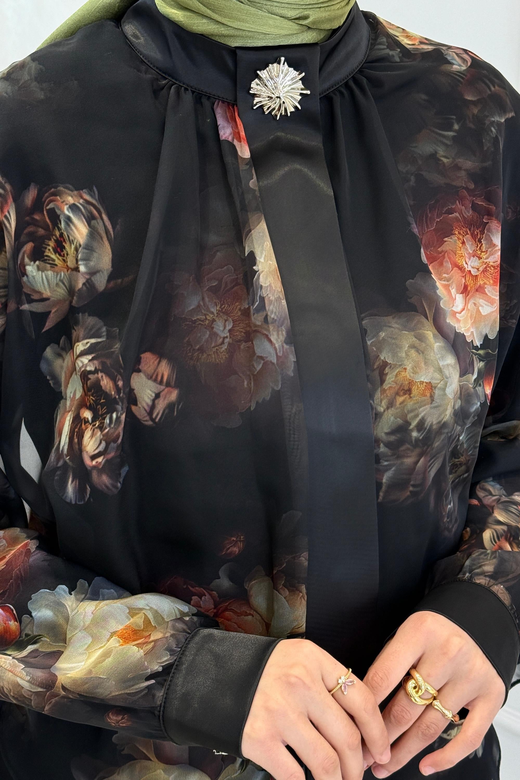 Çiçek desenli şifon kumaşıyla dikkat çeken tunik pantolon tesettür takım, hafif yapısı ve rahat kalıbıyla gün boyu konfor sağlar. Akıcı ve dökümlü kumaş yapısı sayesinde hareketli bir görünüm sunarken modern çizgileriyle kombinlere şık bir dokunuş katar.