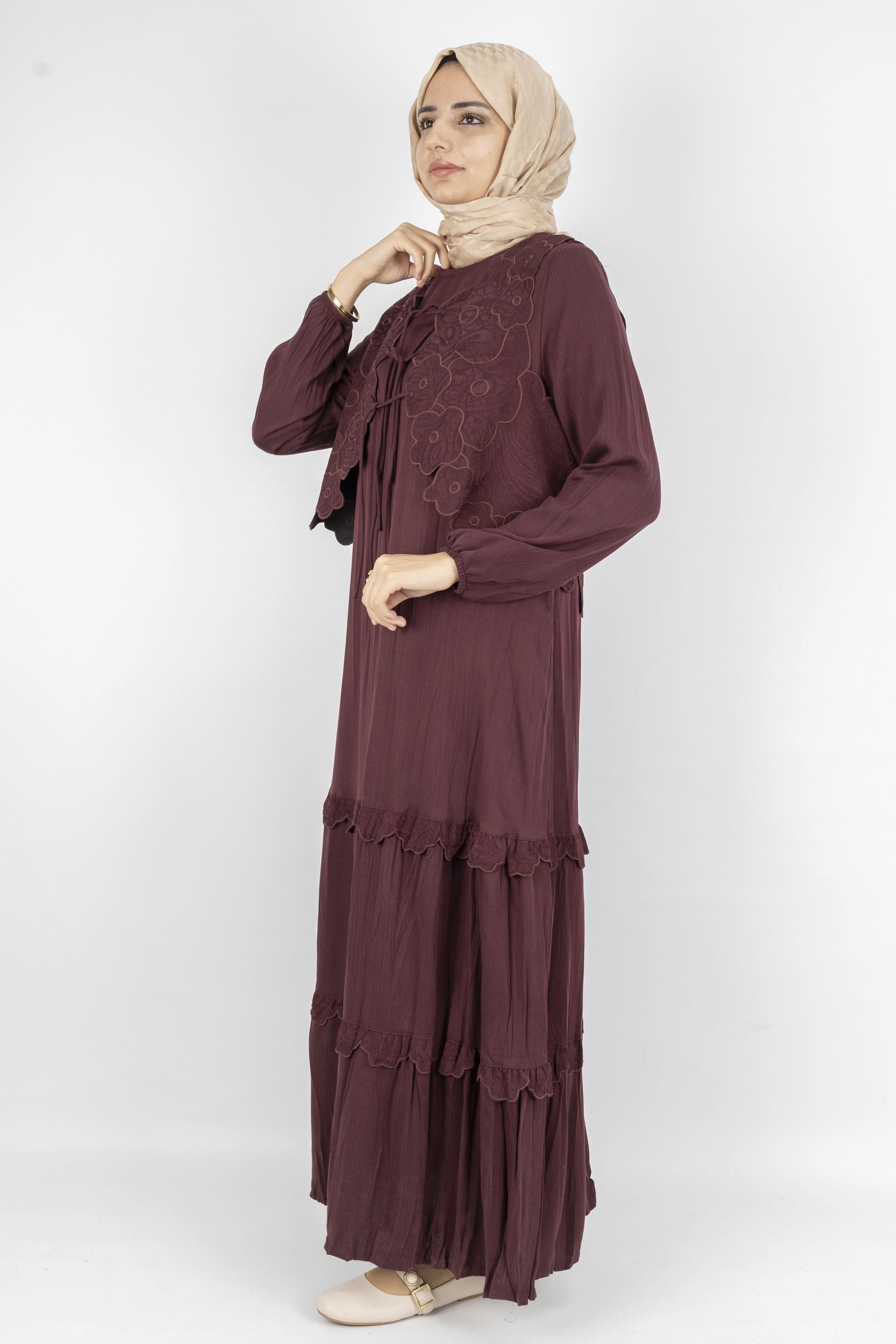 Çiçek Güpür Yelekli Uzun Tesettür Elbise Siyah OTW6047 Çiçek Güpür Yelekli Uzun Tesettür Elbise Kahve OTW6047 Çiçek Güpür Yelekli Uzun Tesettür Elbise Bordo OTW6047
