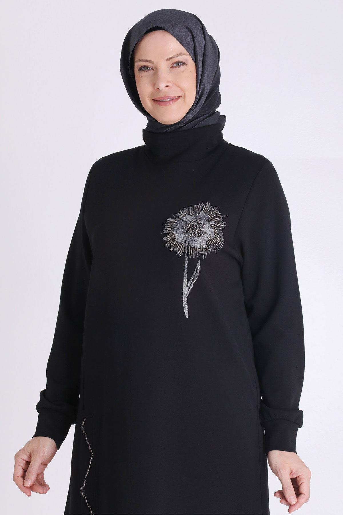 Büyük Beden Tesettür Tunik Ürün Detayları: Dik yakalı ürünümüz işleme detaylıdır. Kumaş Türü: Pamuk Örme Kumaş İçeriği: %80 Pamuk - %20 Polyester
