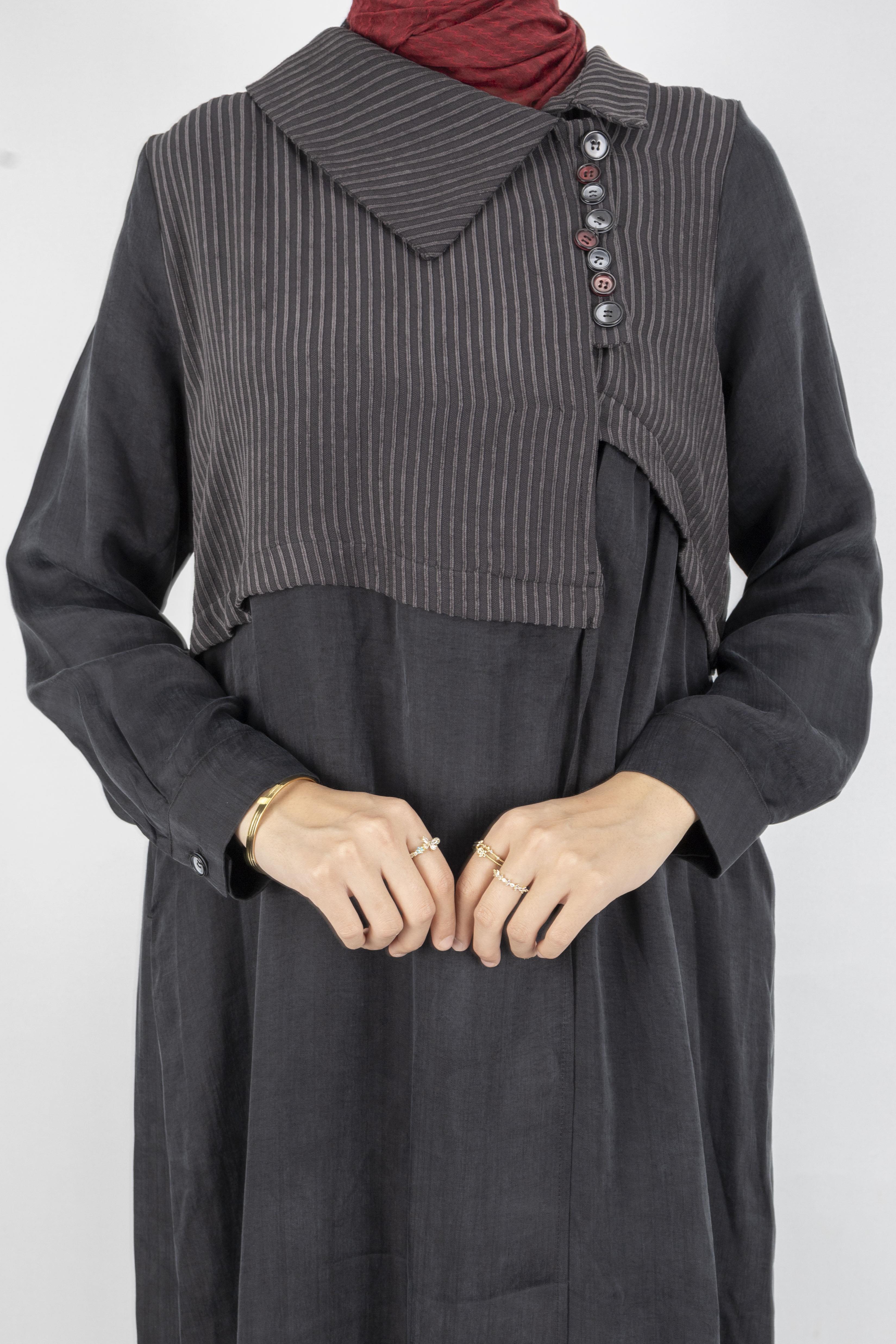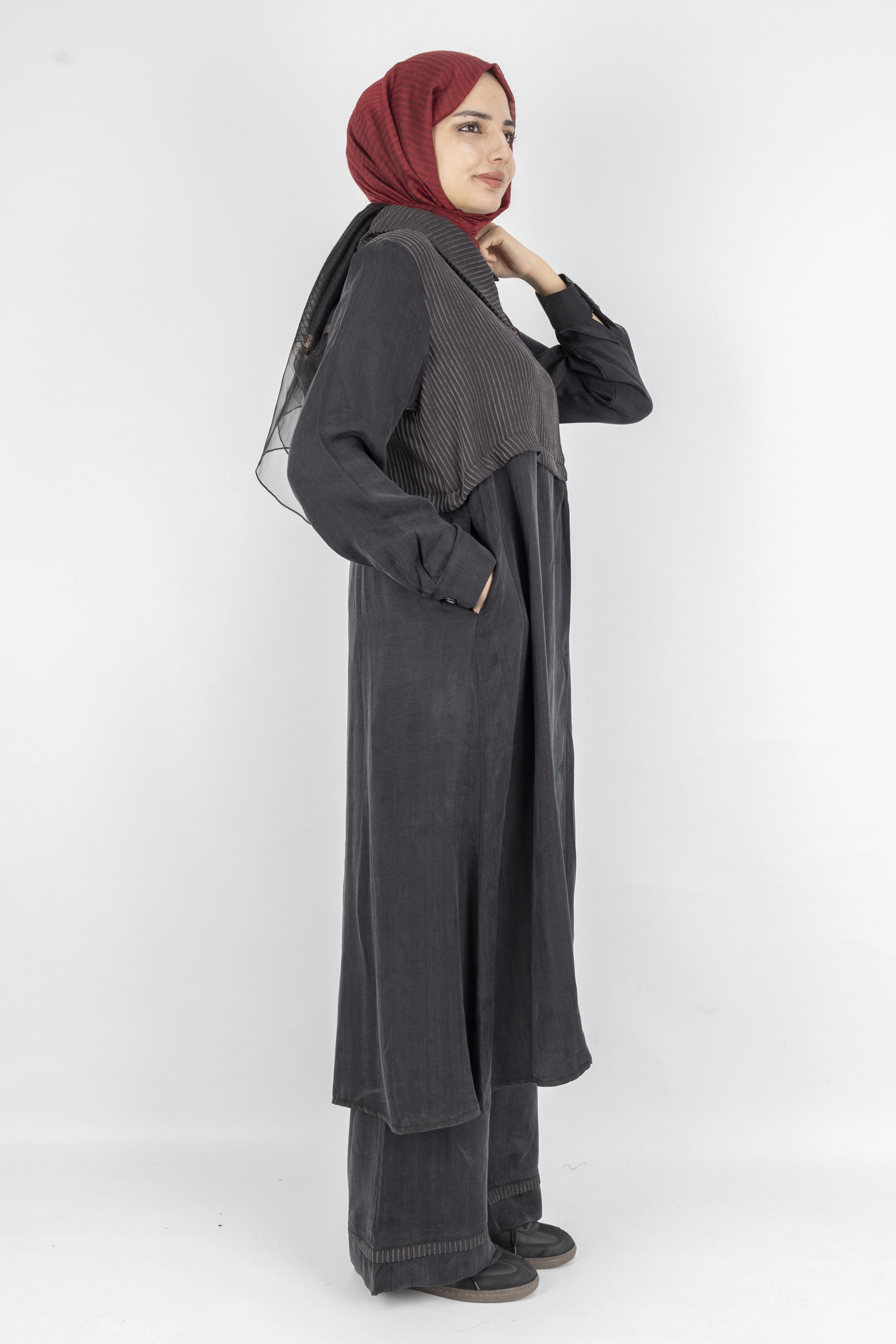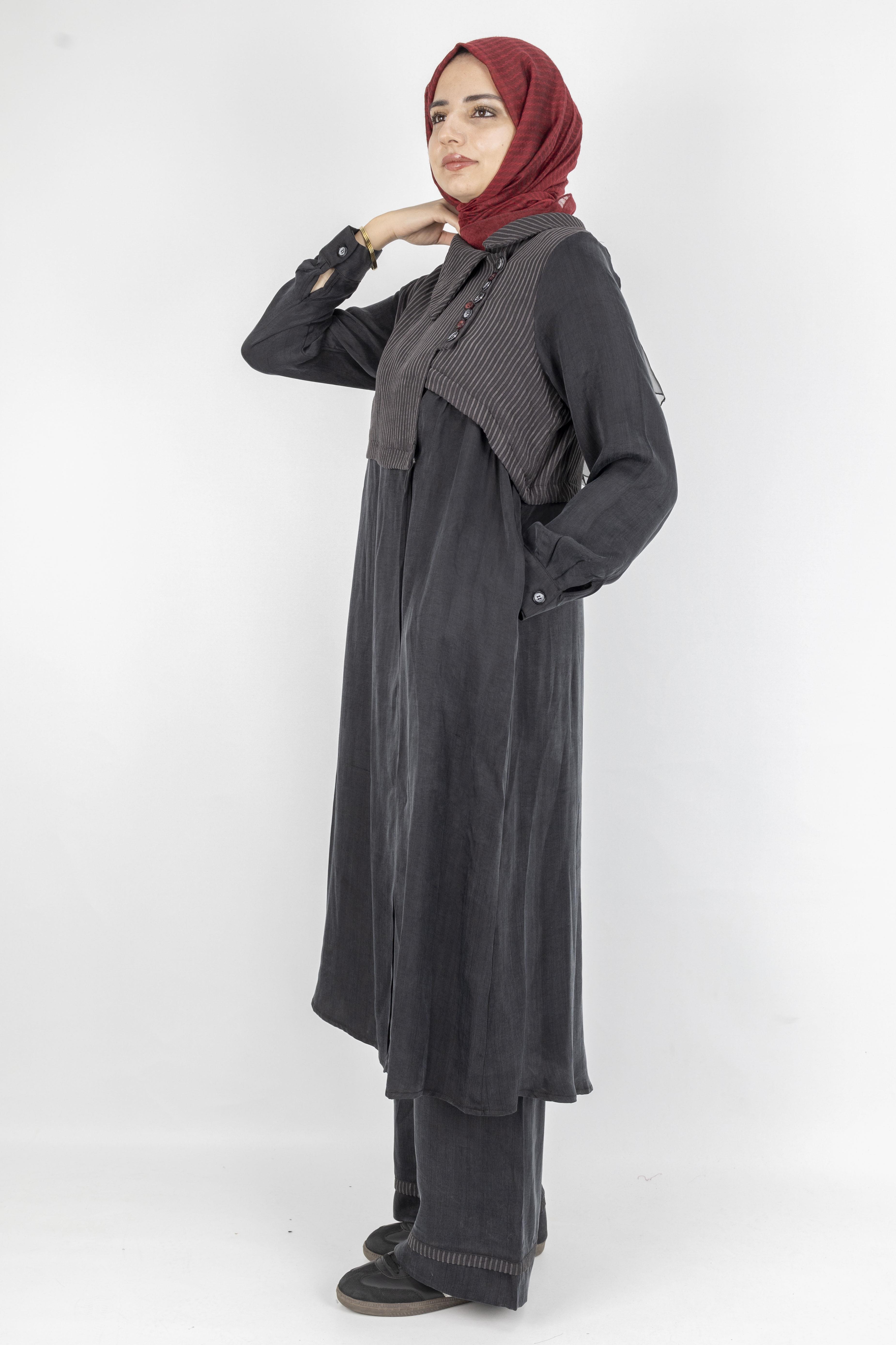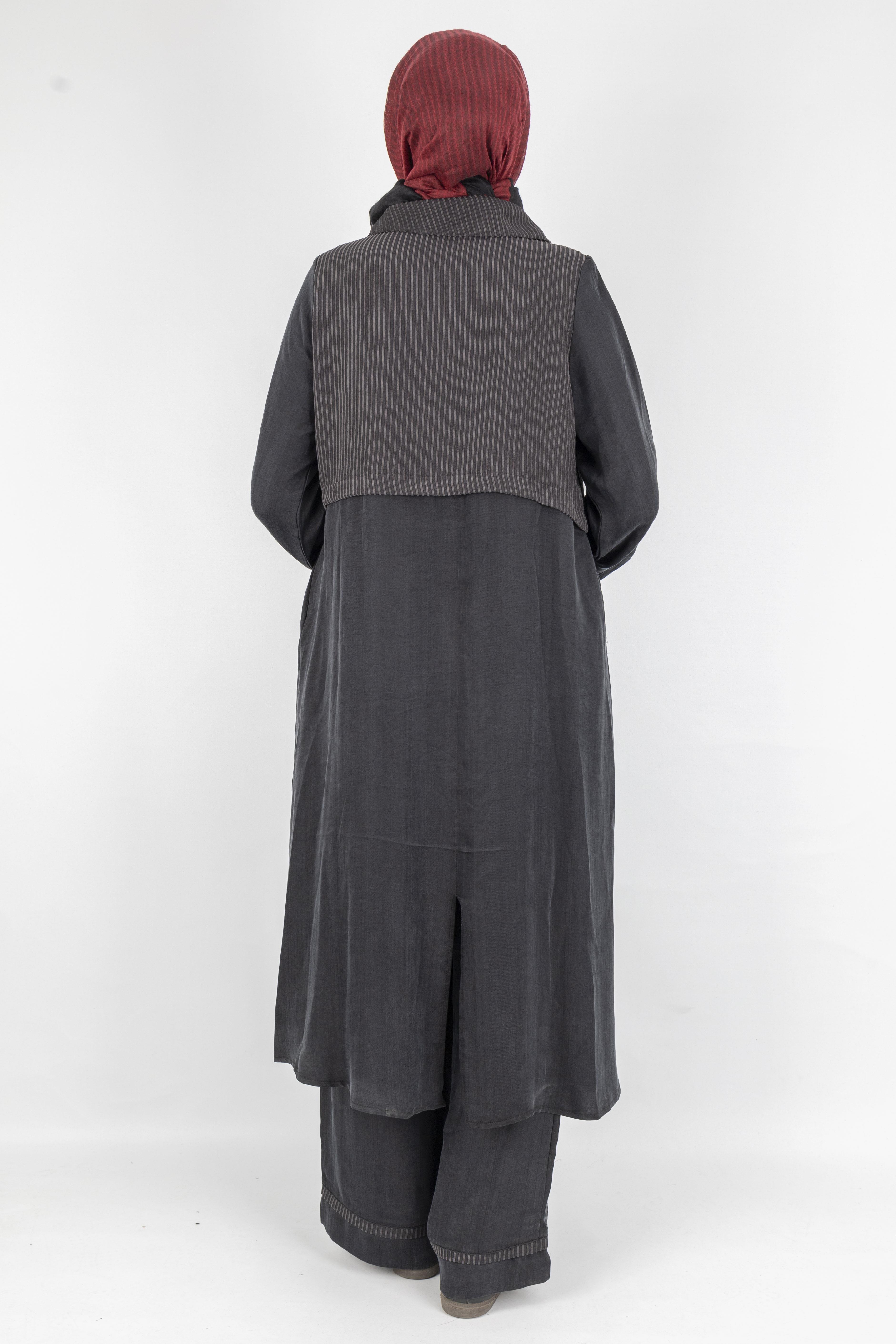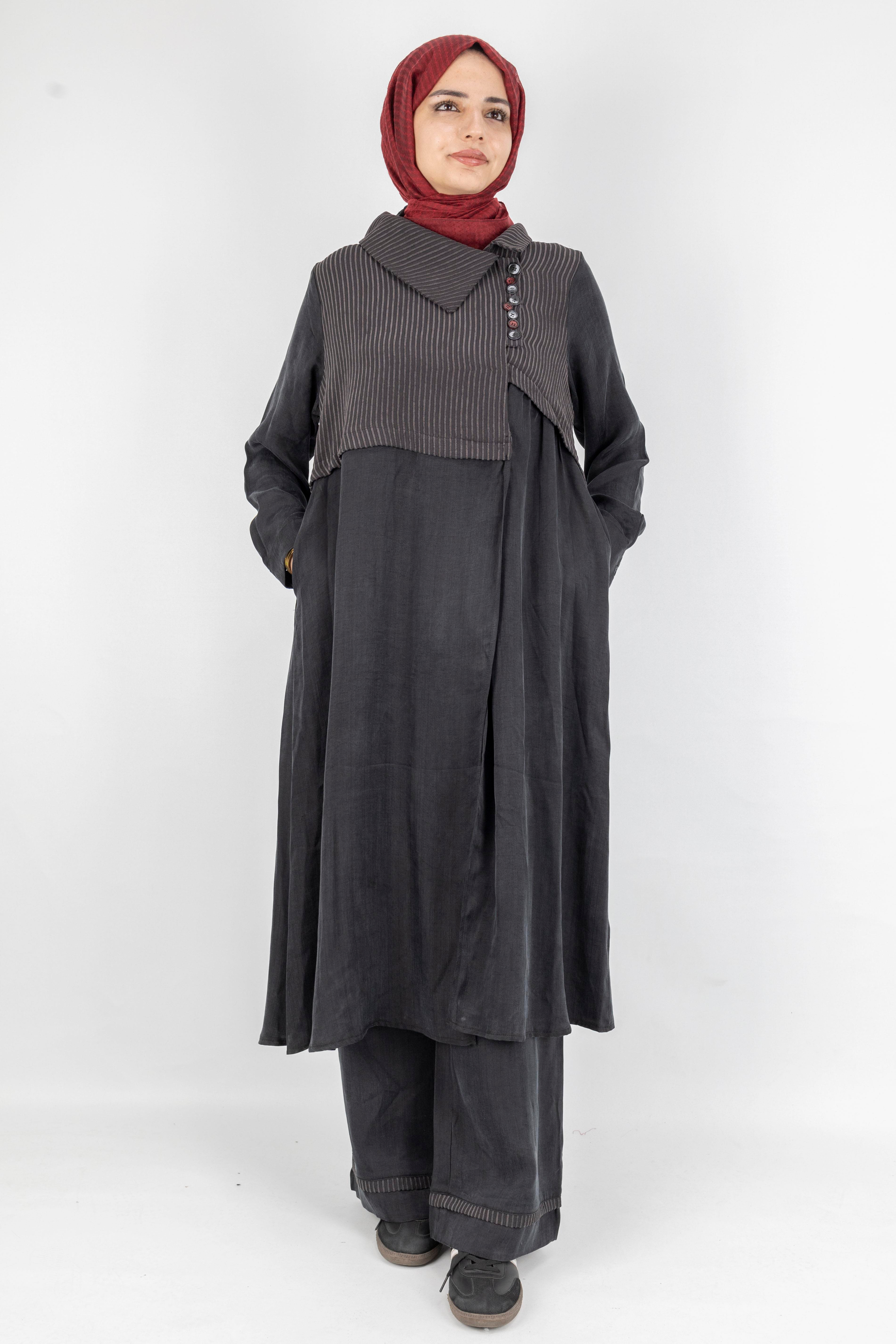 Çizgili Yaka Detaylı Pantolonlu Takım Siyah OTW6000