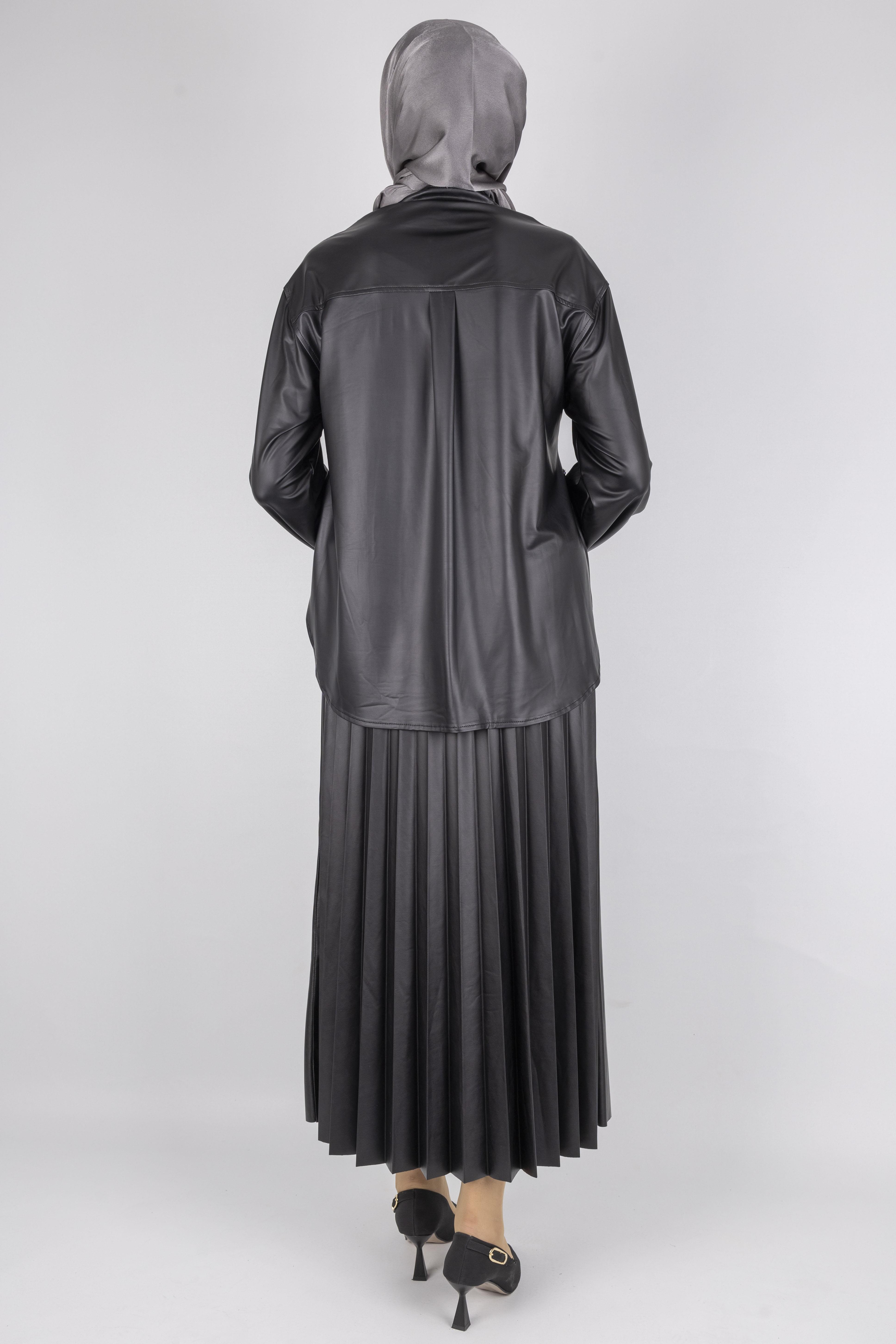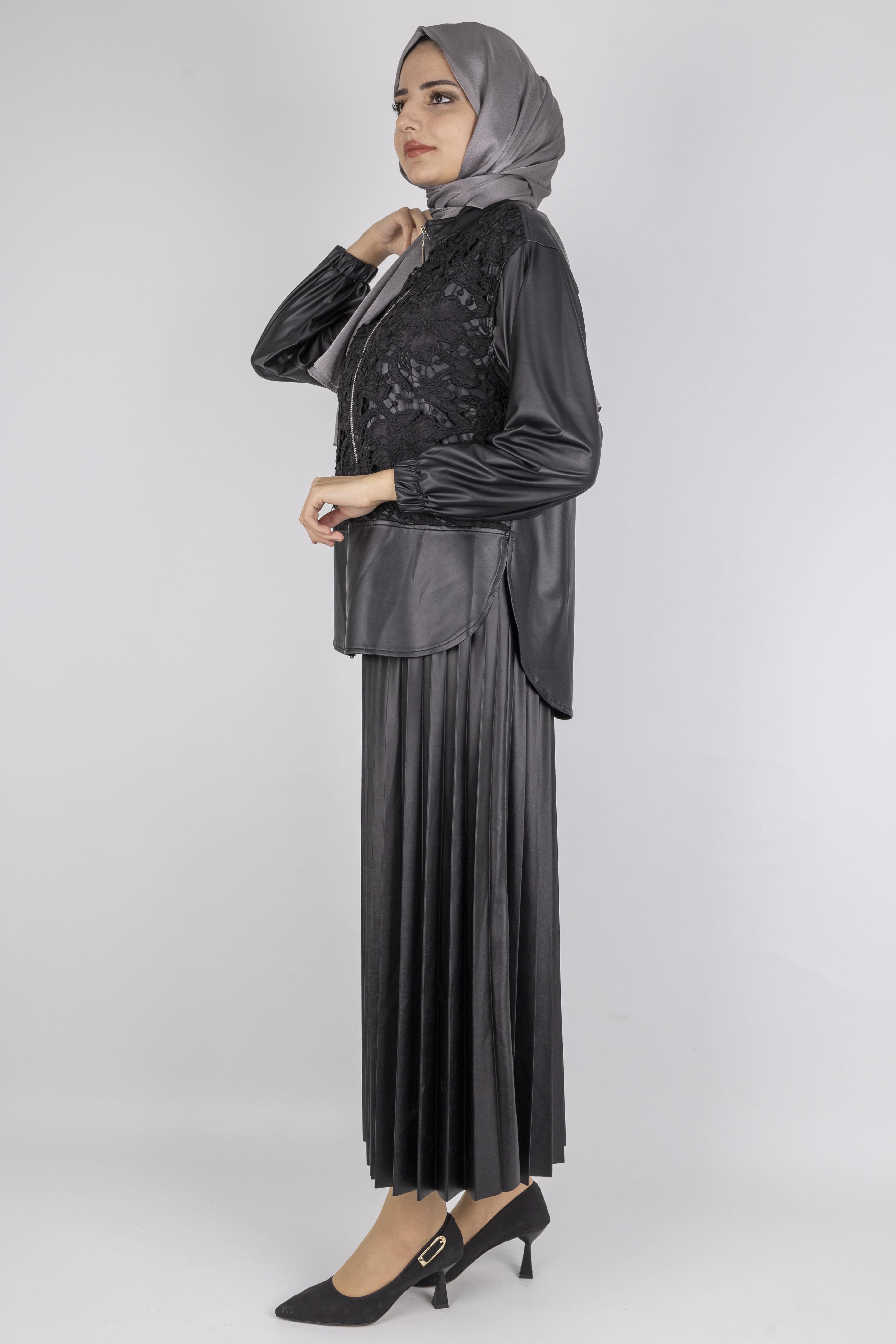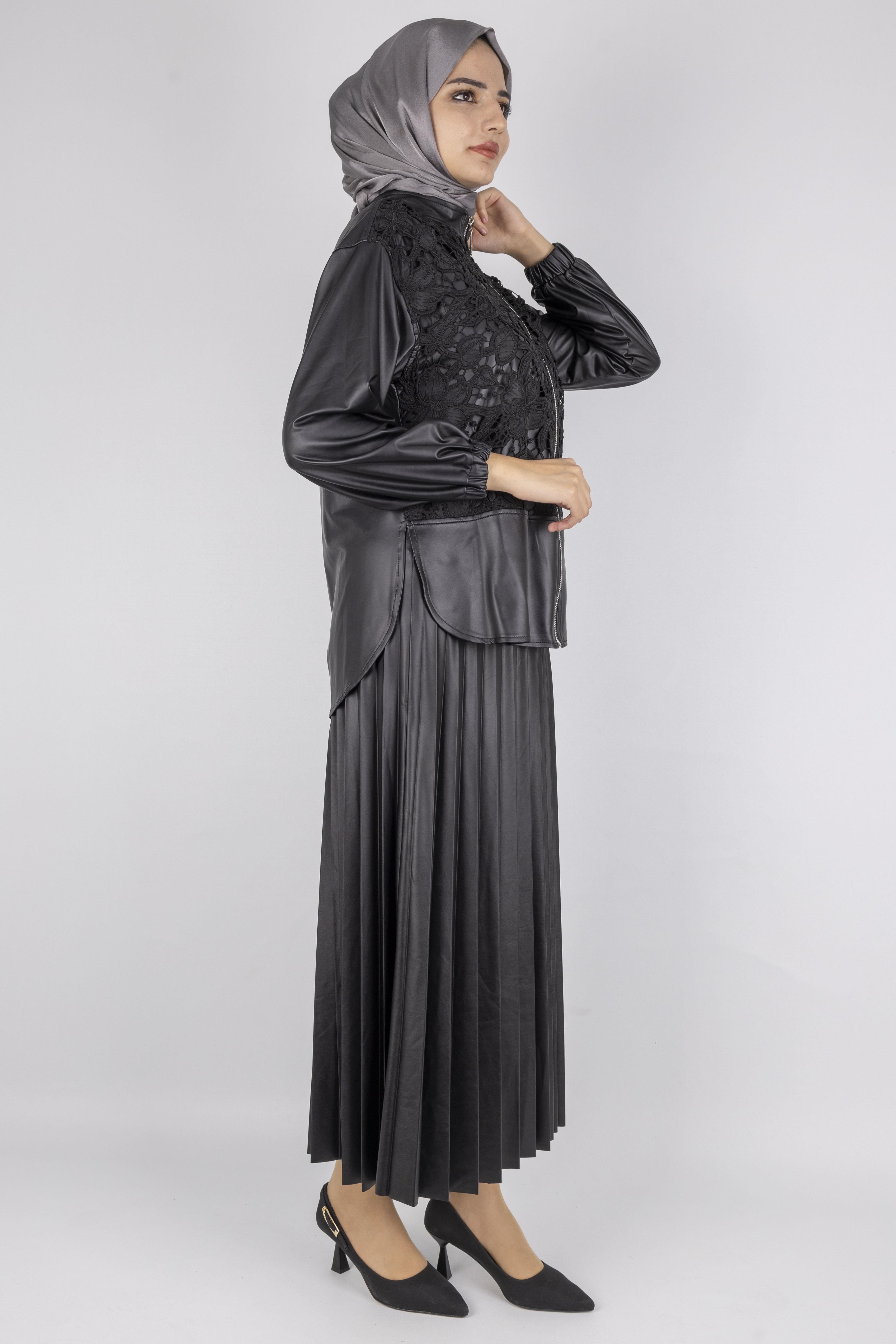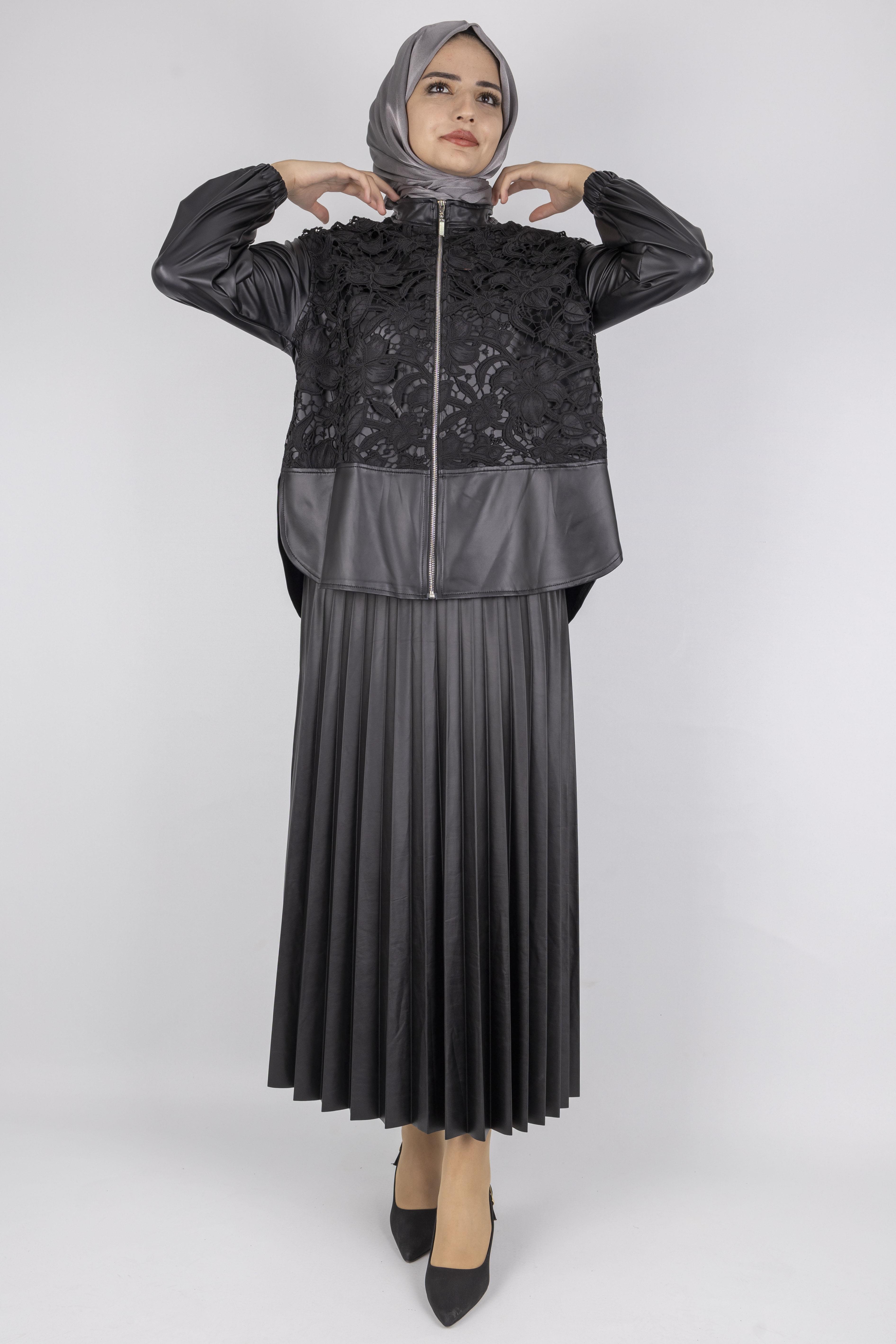 Dantel Detaylı Deri Etekli Takım Siyah OTW25518
