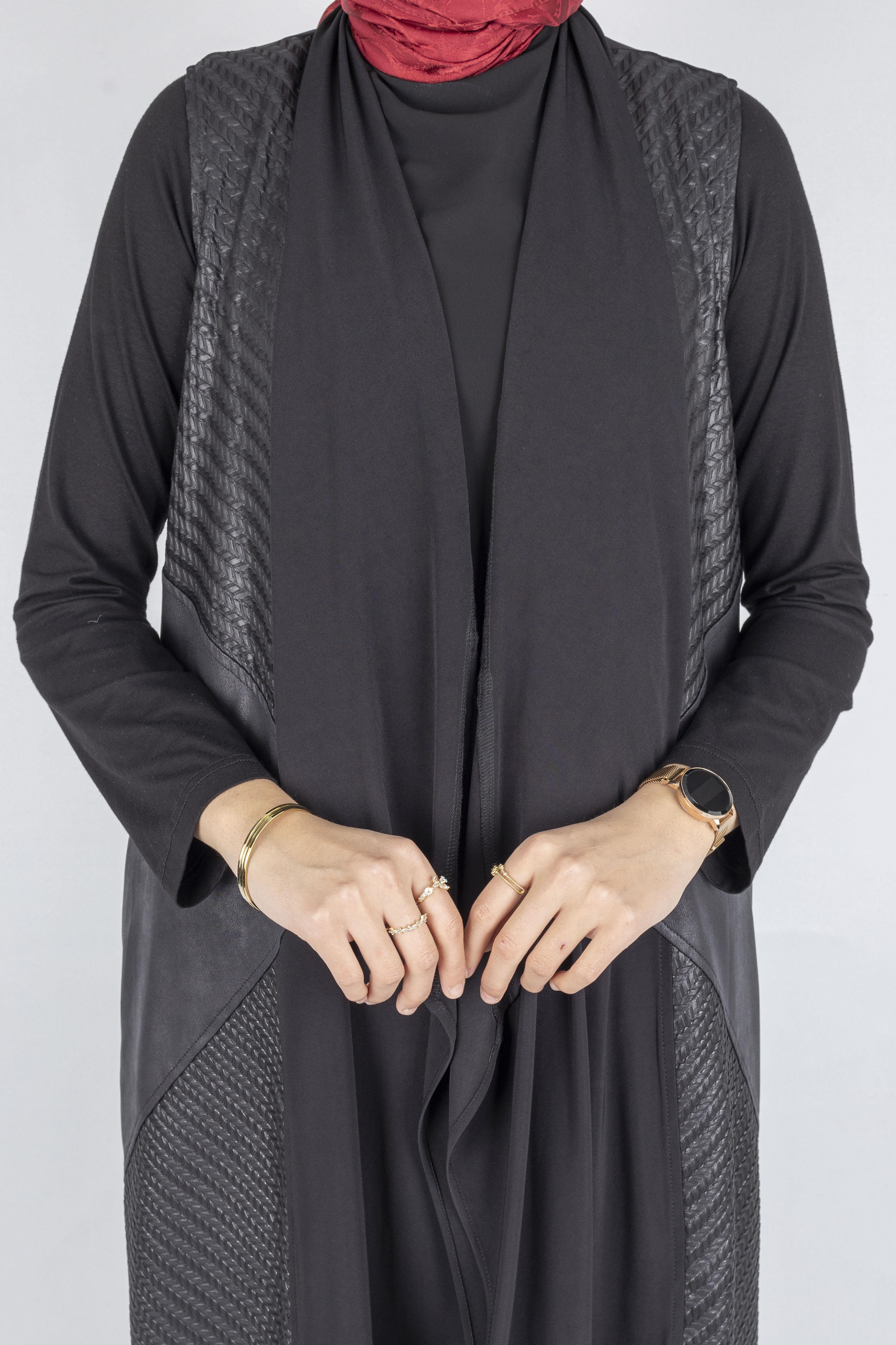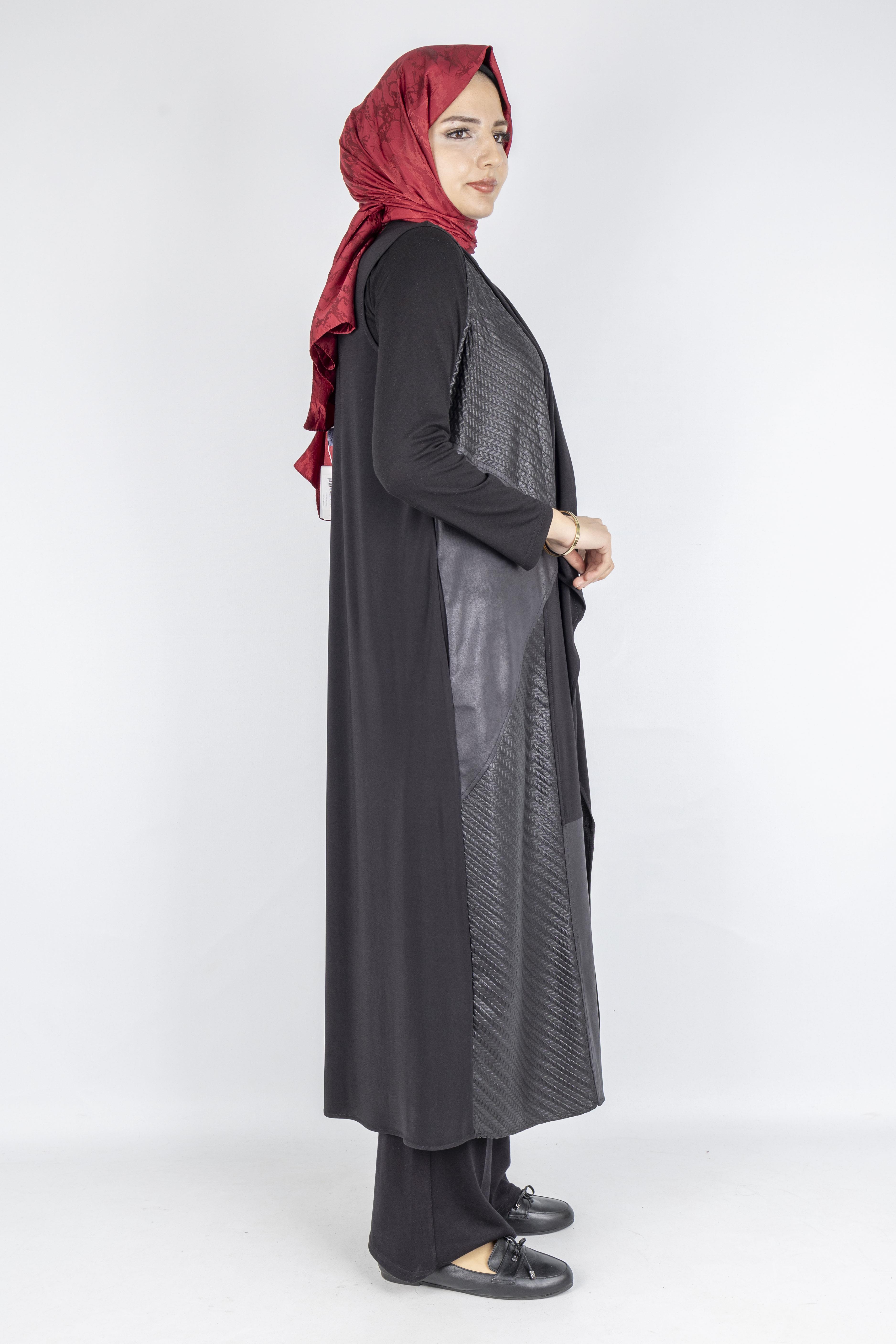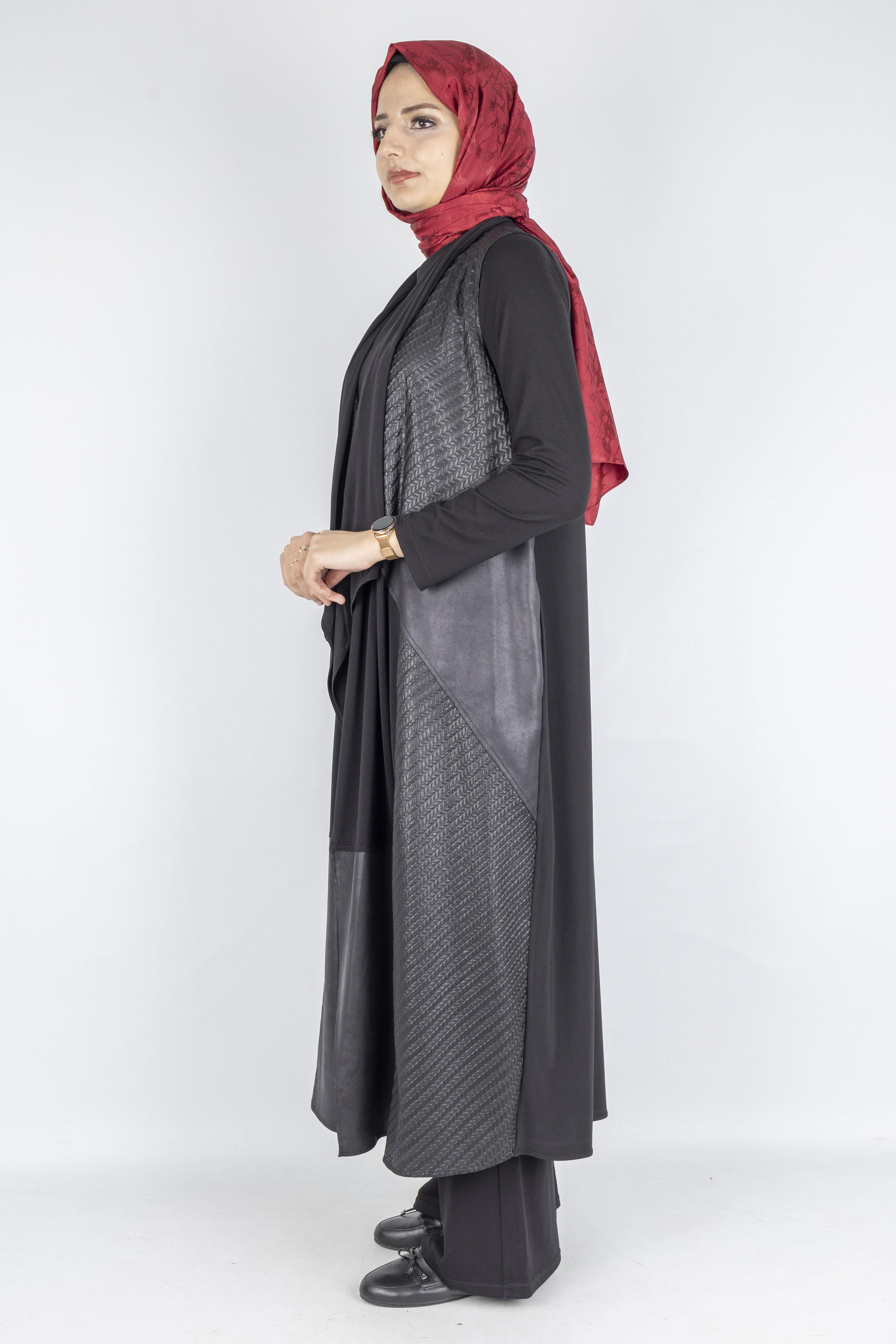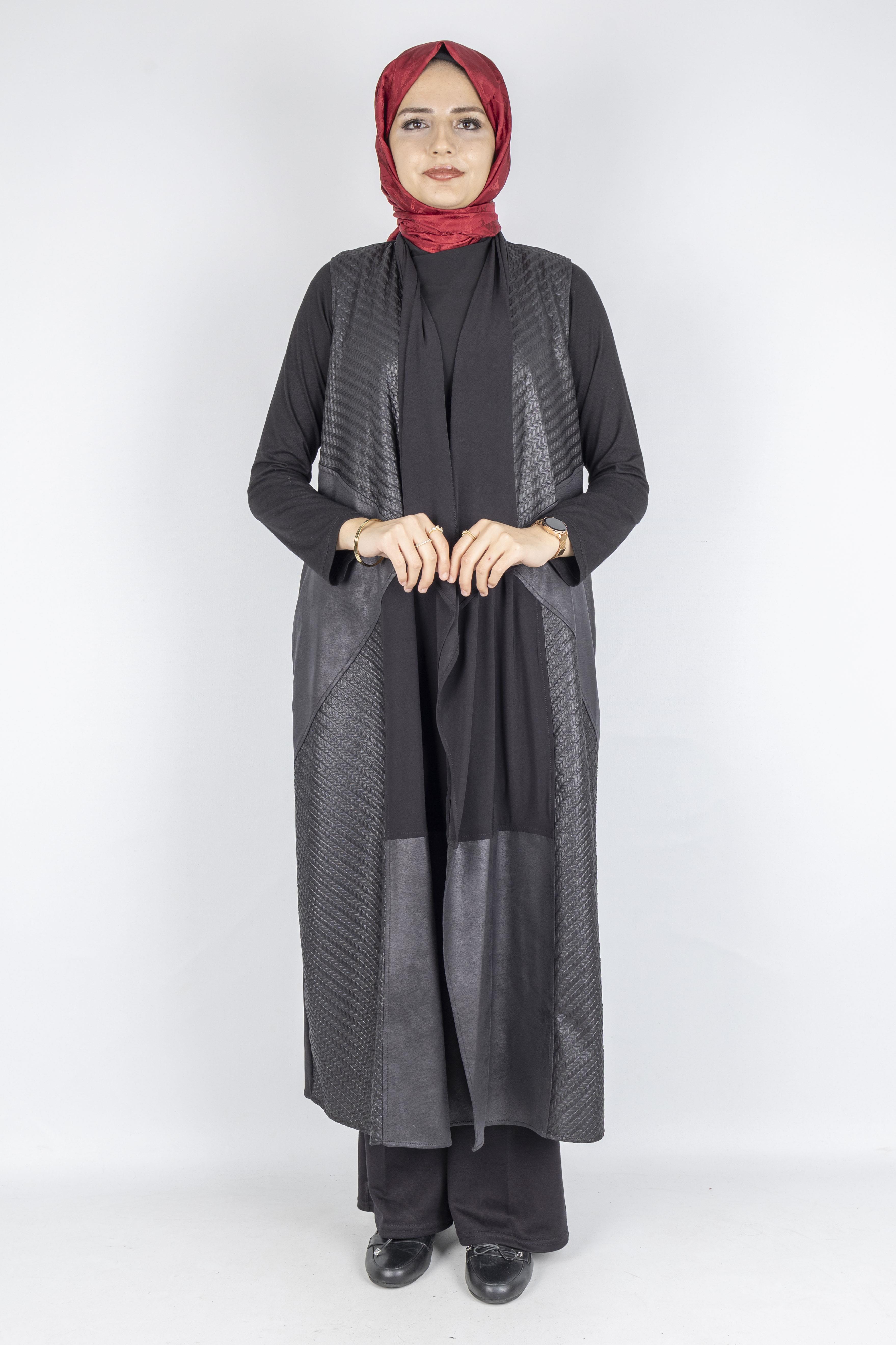 Deri Detaylı Uzun Yelek Siyah OTW25260