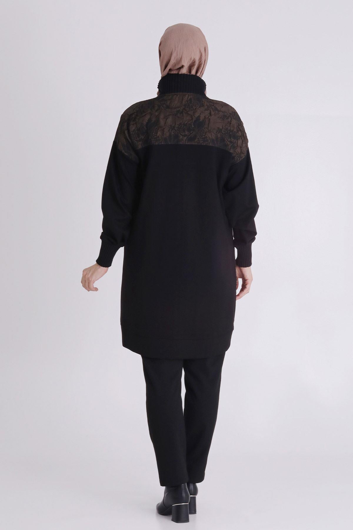 Ürün Detayları: Sıfır yaka modelimiz şifon ve file kumaş kombinlidir. Kolye aksesuarı ile tamamlanmıştır.