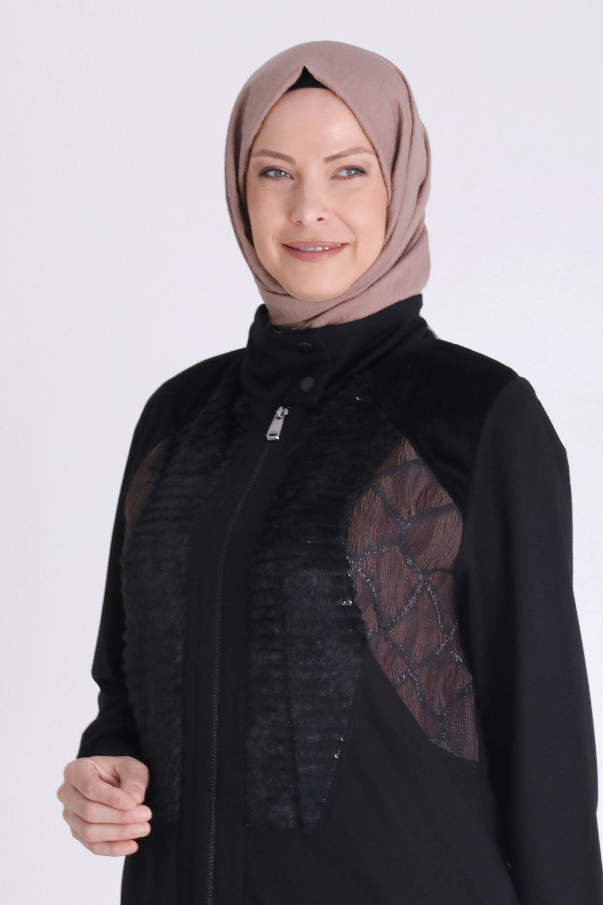 Ürün Detayları: Dik yaka, önden fermuarlı modelimiz cepli olup kürk ve jakar kumaş ile kombinlenmiştir.