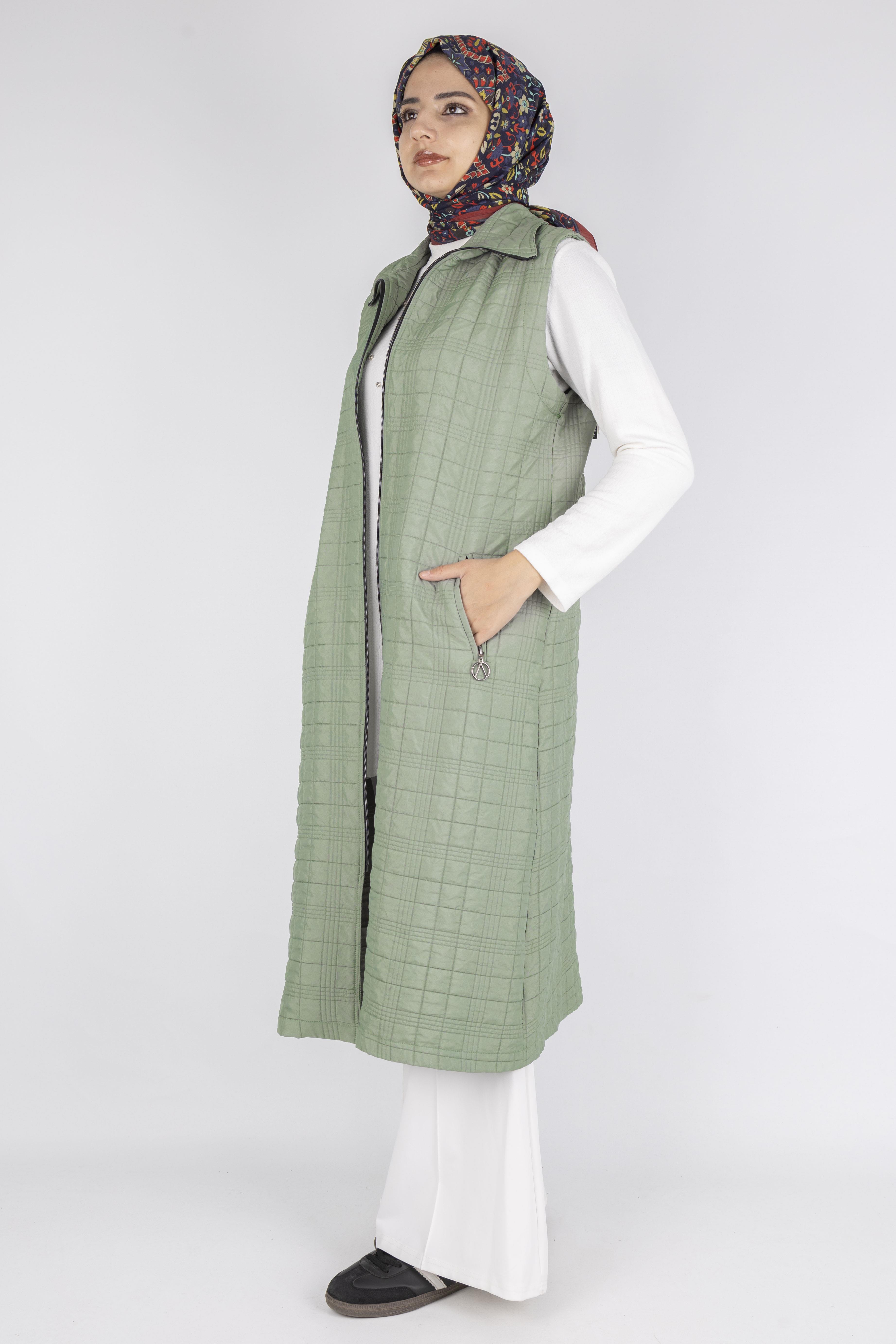 Dik Yaka Kapitone Uzun Yelek (Kapüşonsuz Mint OTW4030