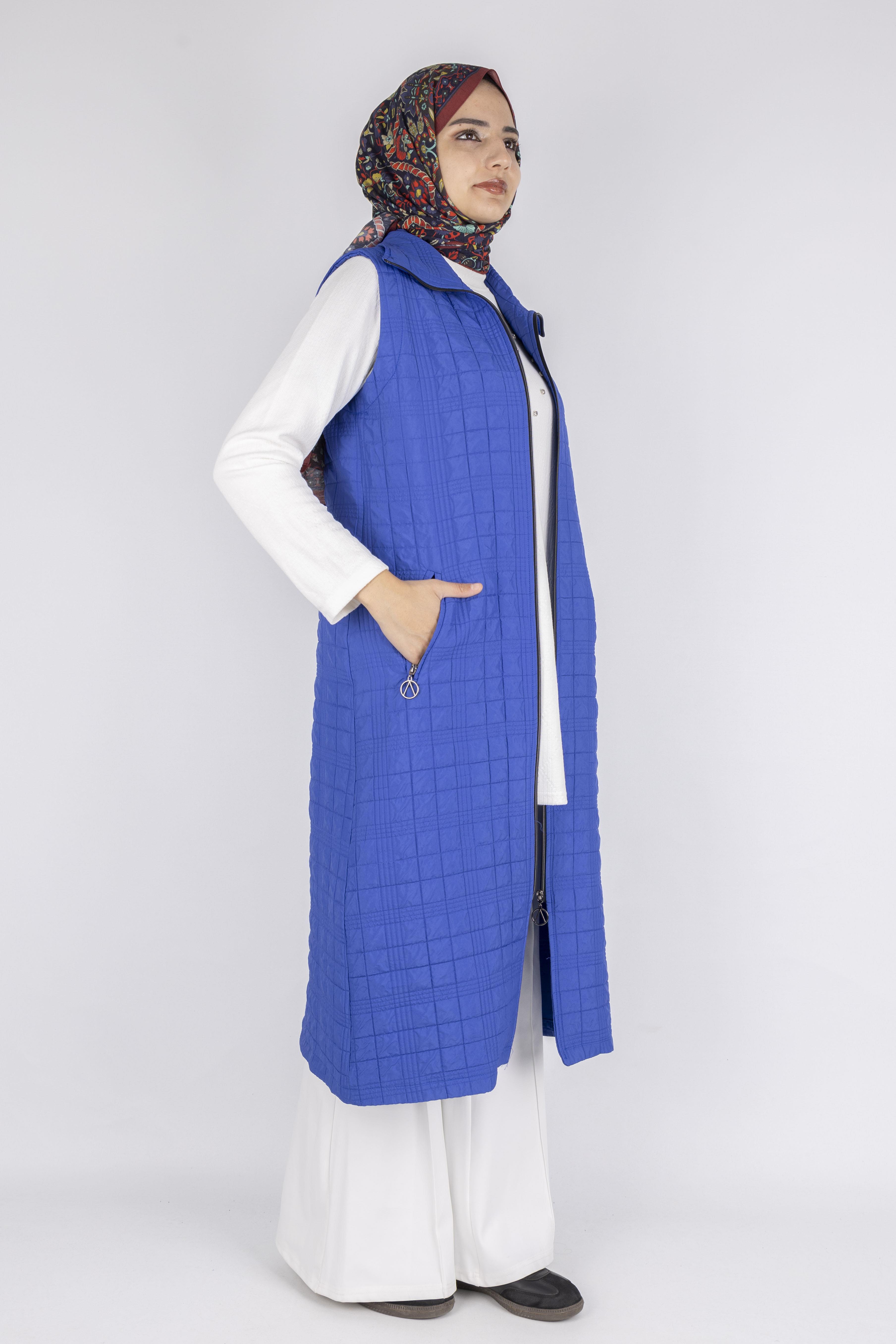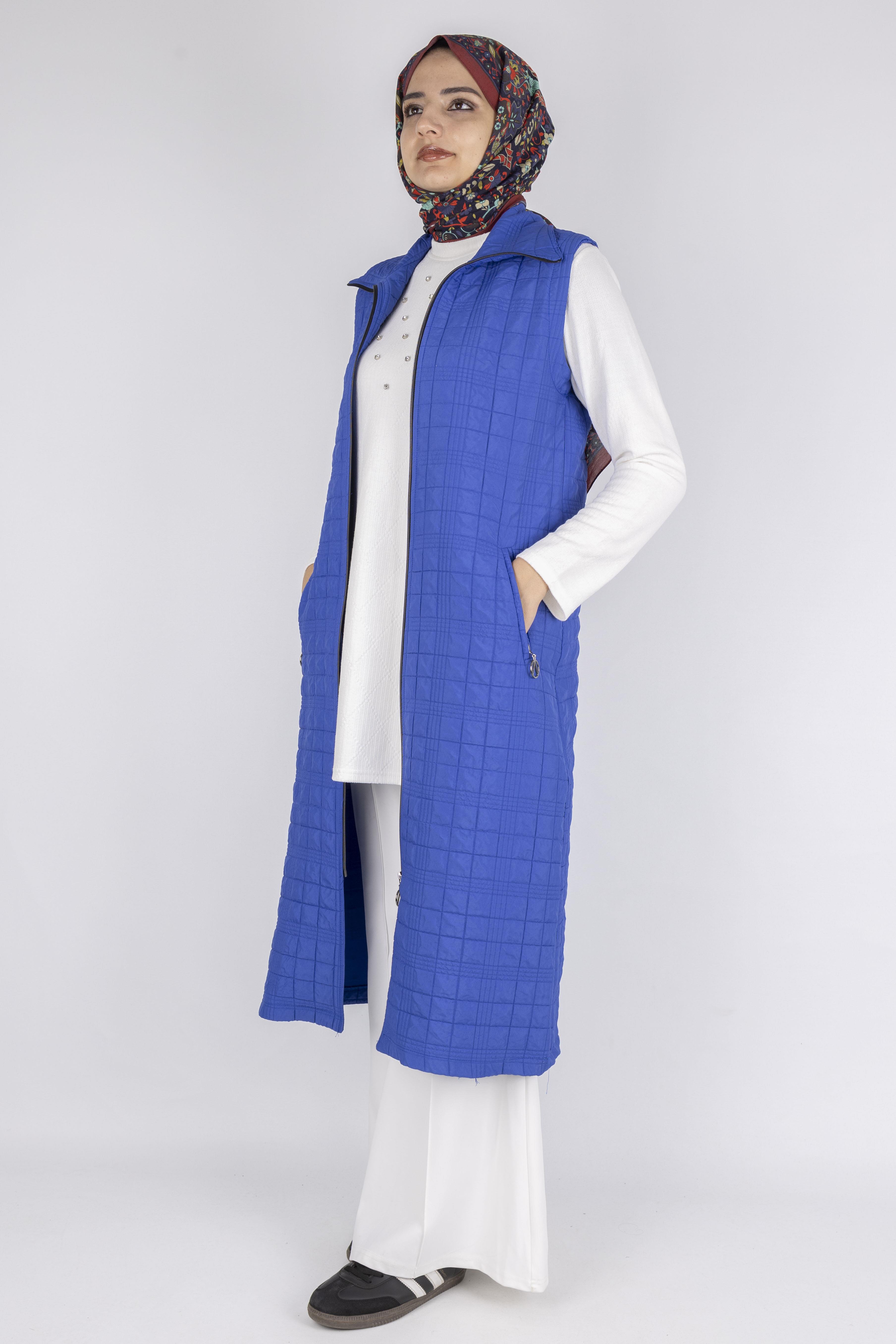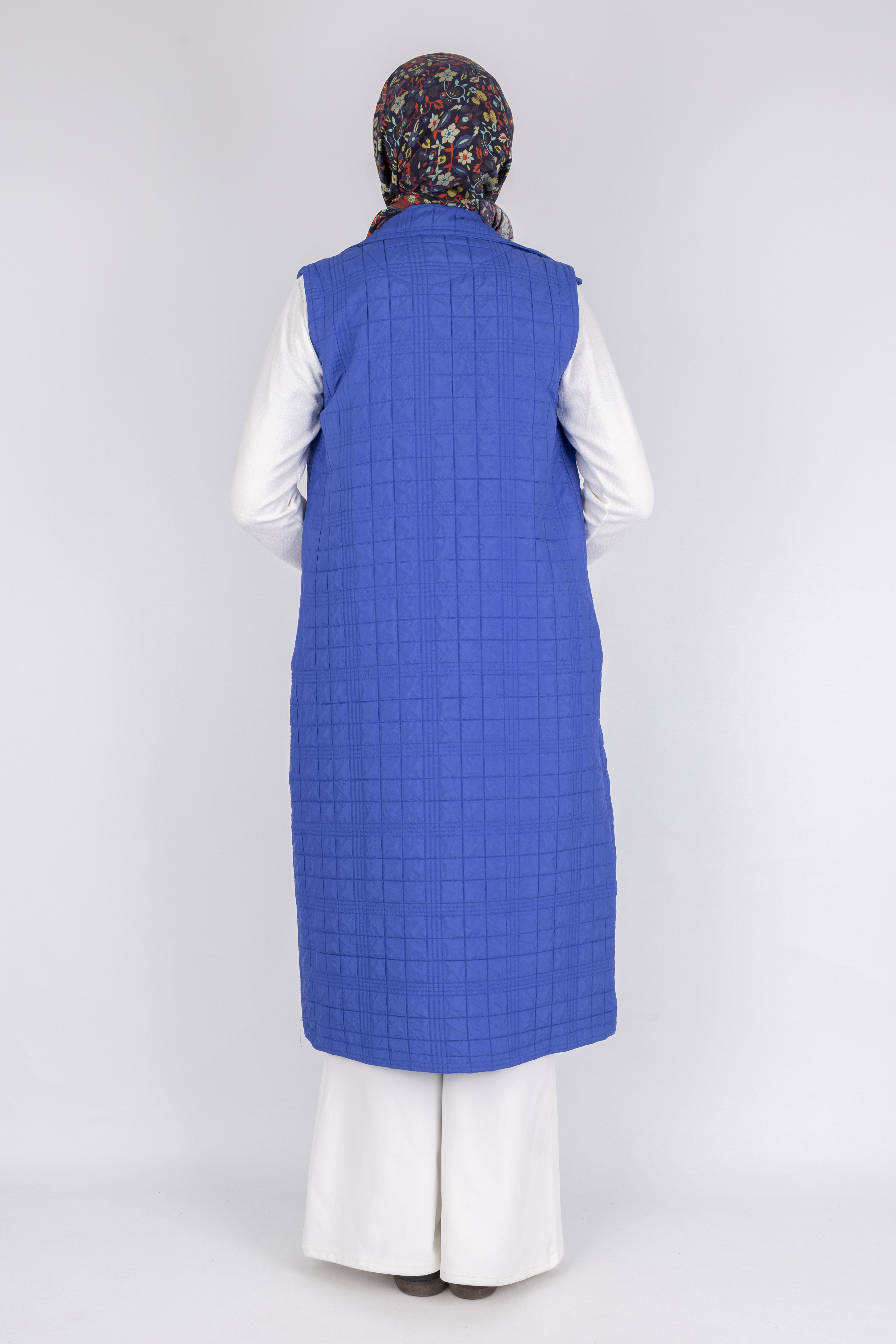 Dik Yaka Kapitone Uzun Yelek (Kapüşonsuz Saks OTW4030