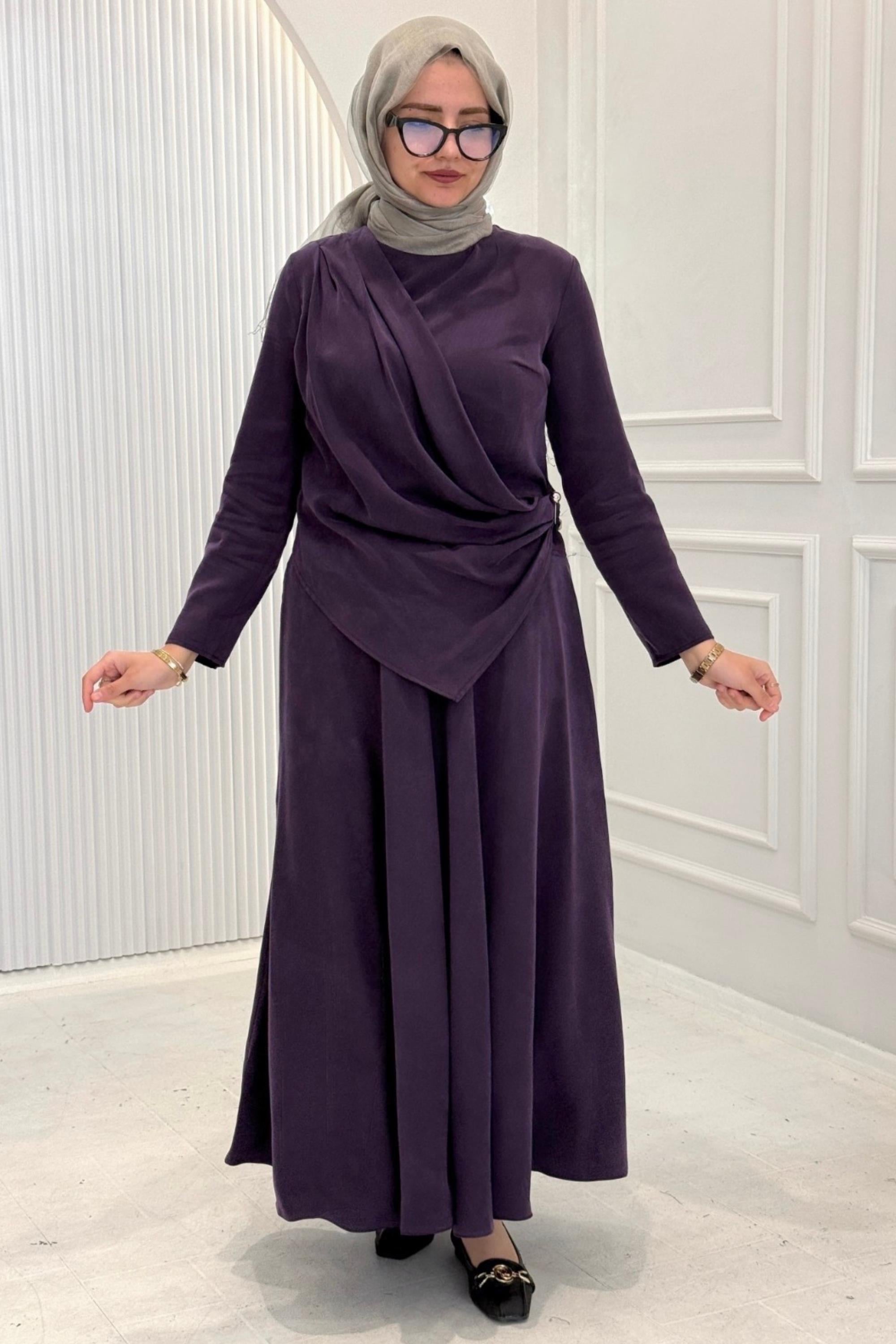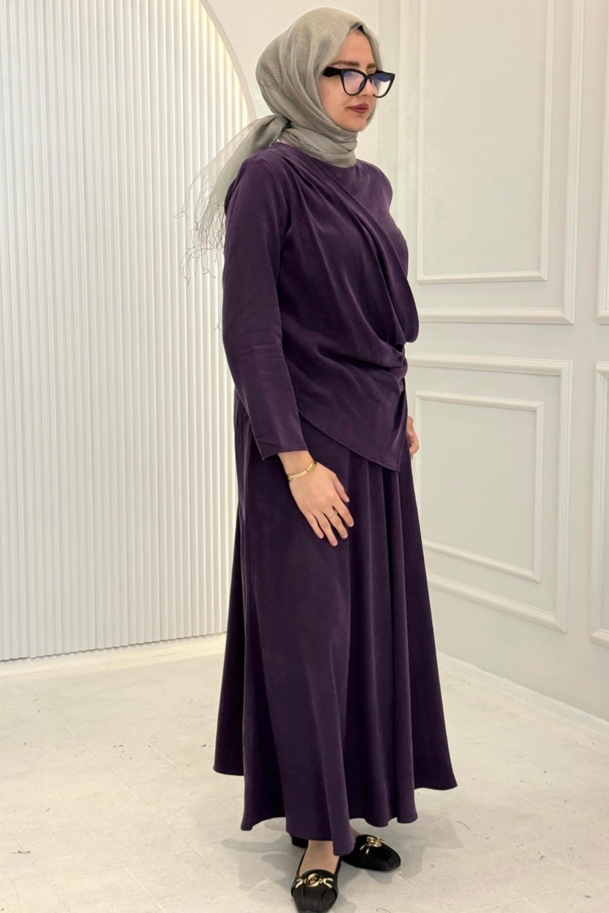 Drapeli Tensel Qupra Etekli Takım Mor OTW8630