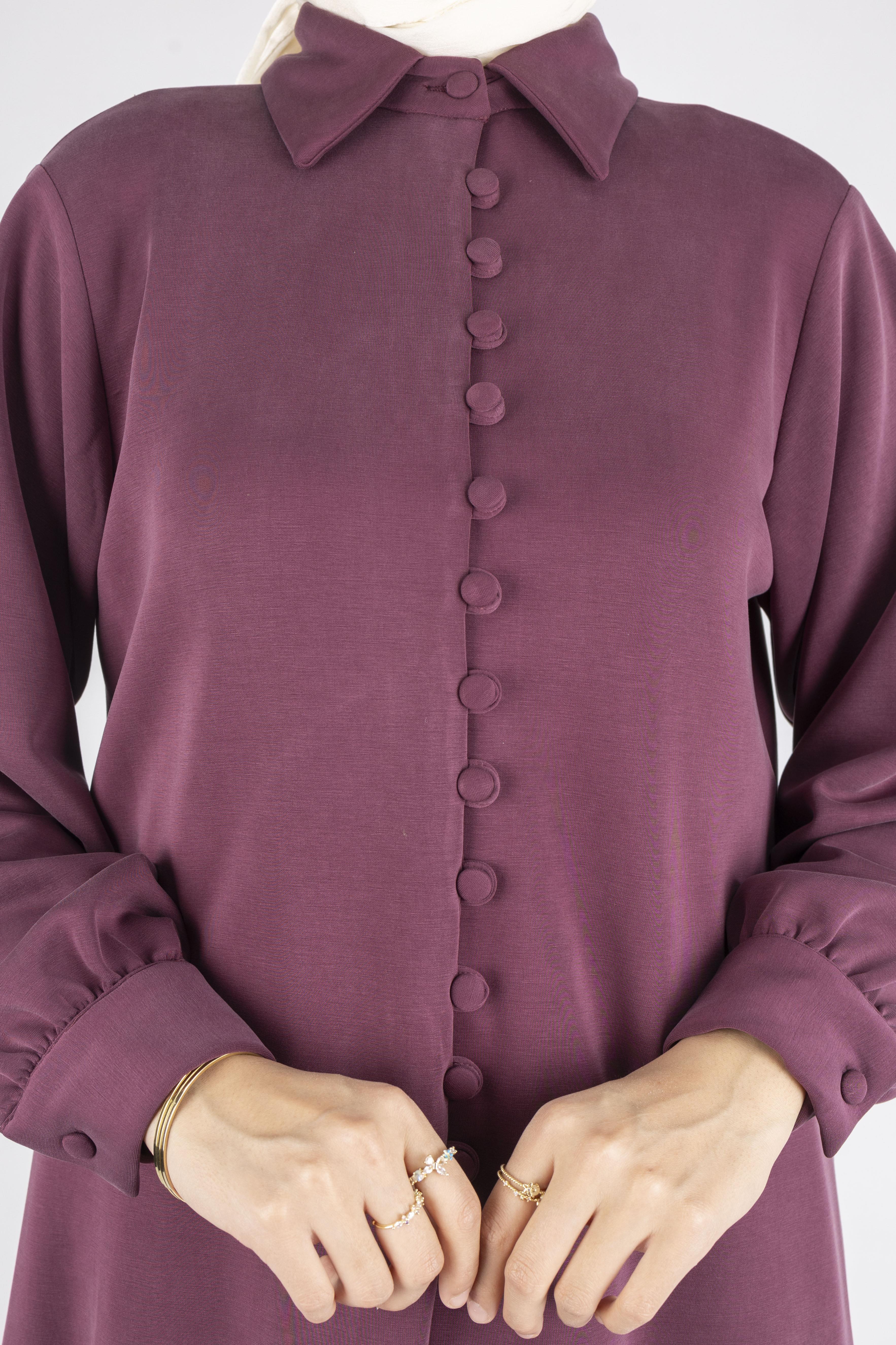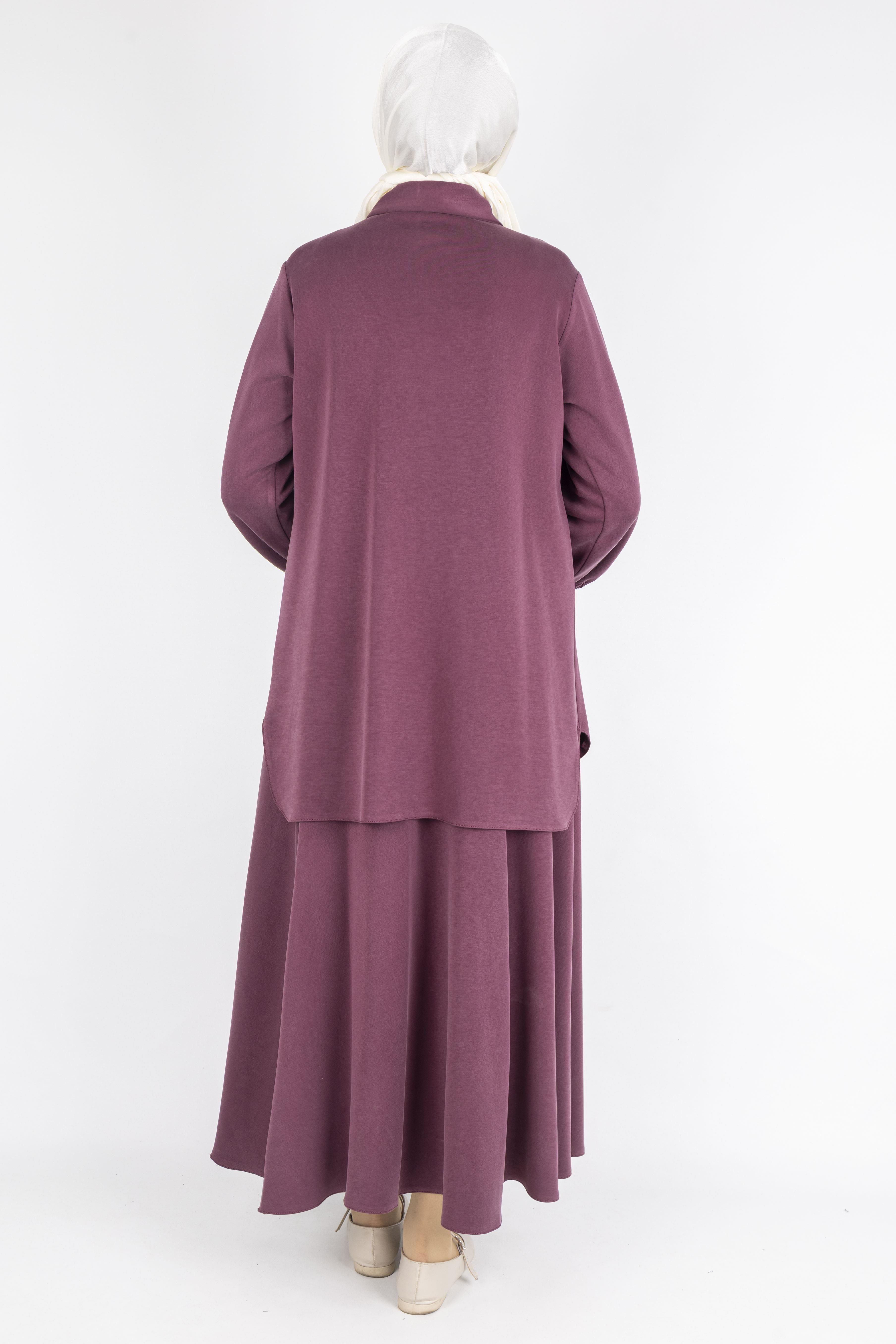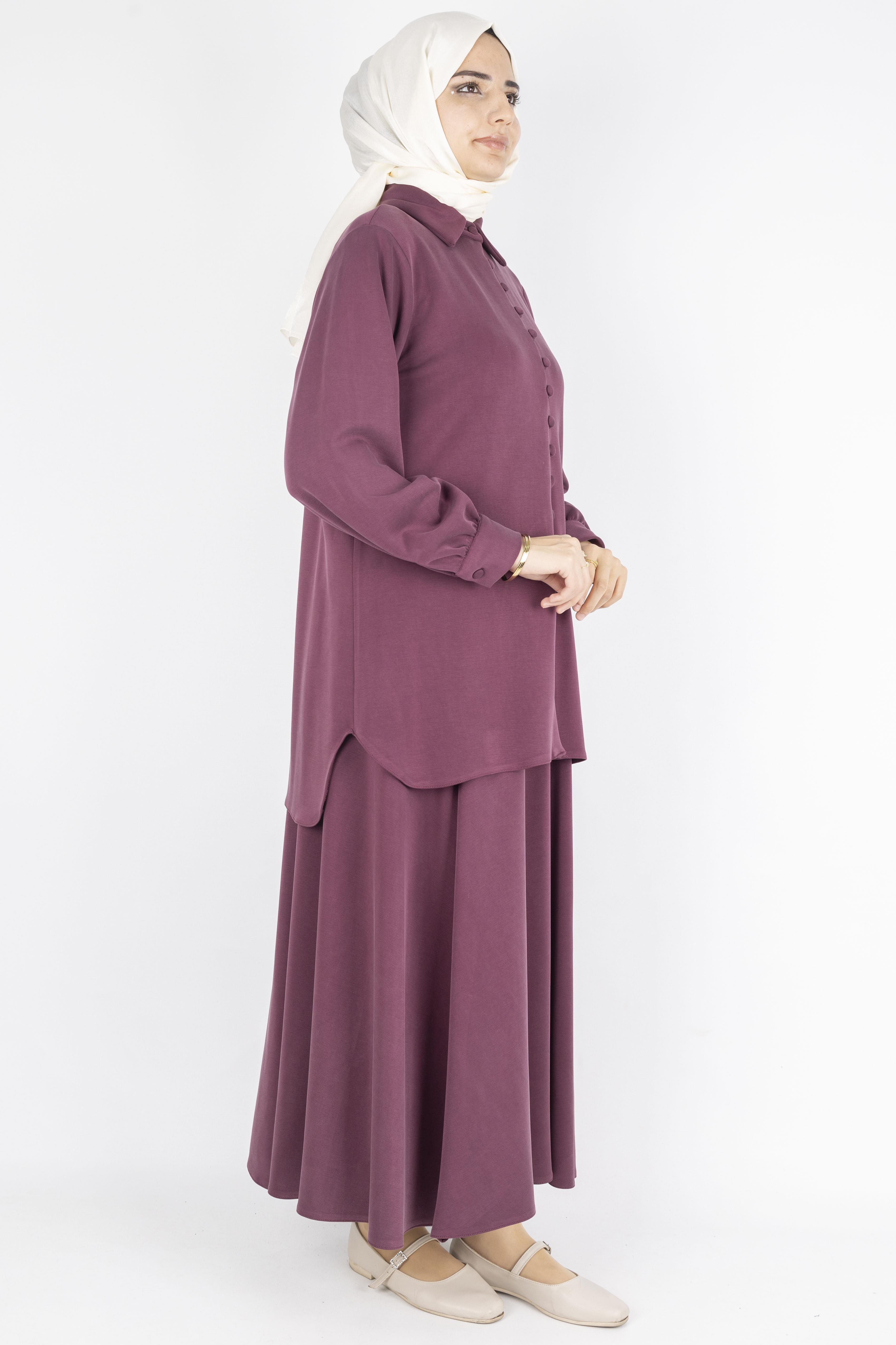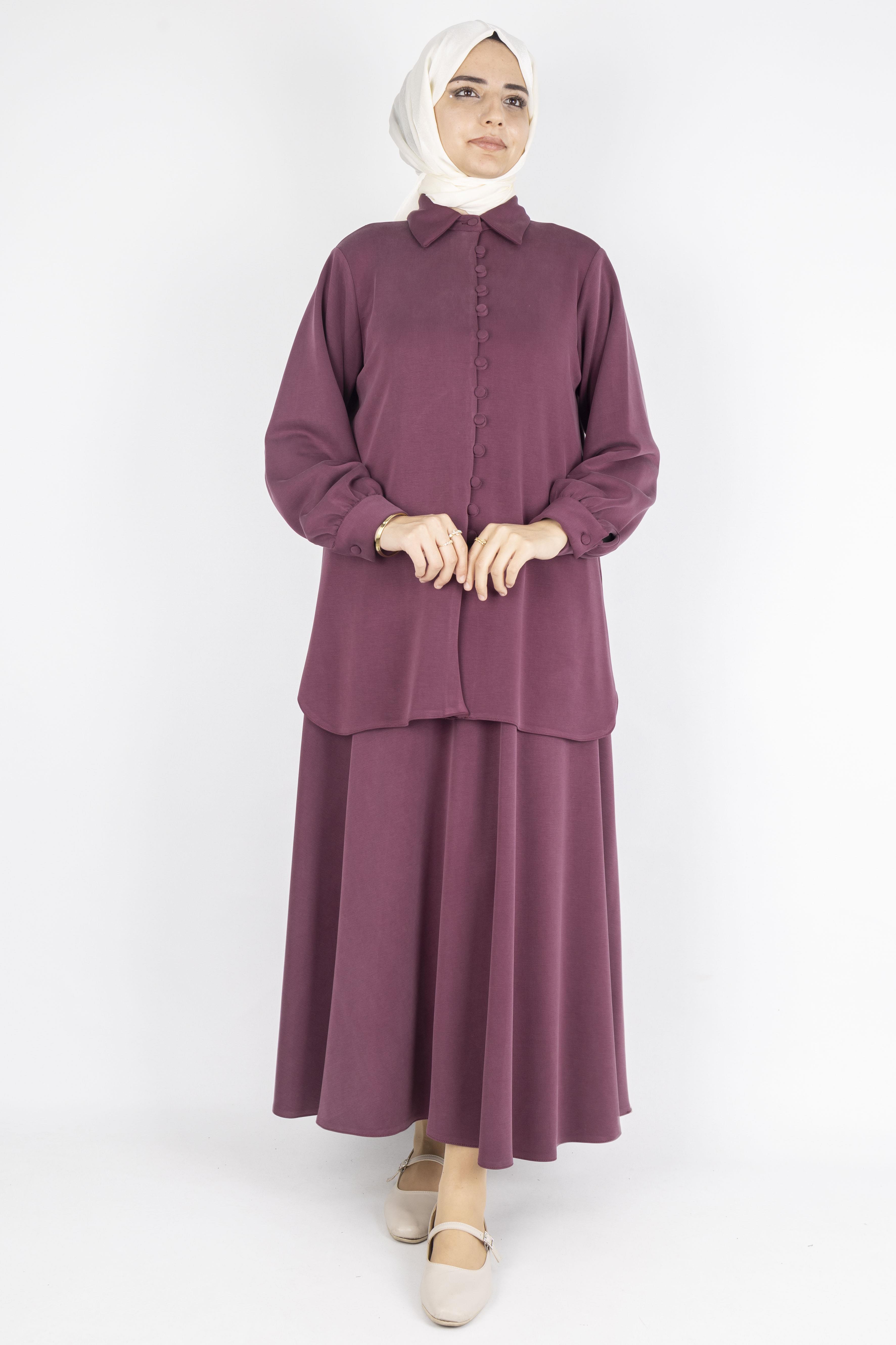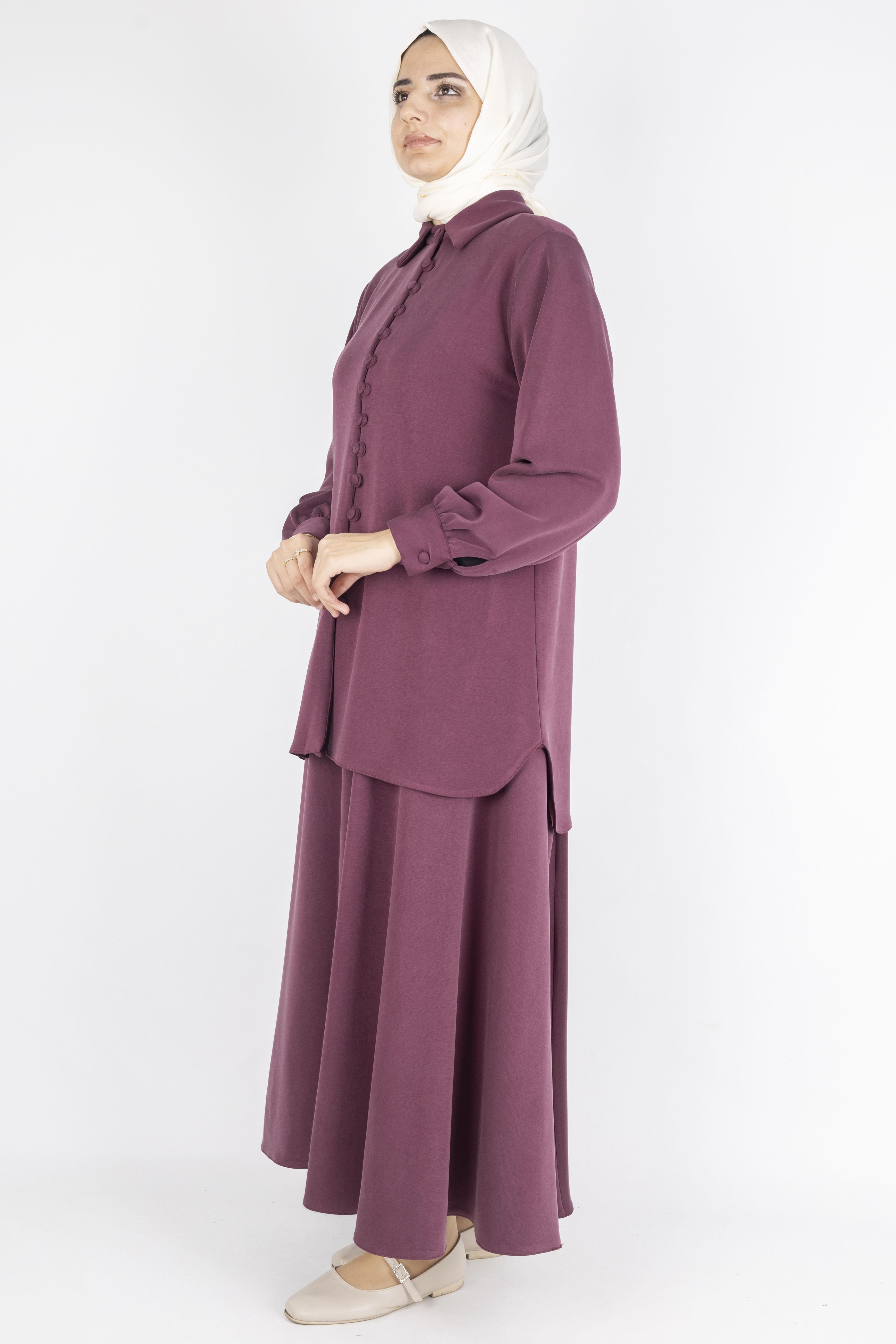 Düğme Detaylı Klasik Etekli İkili Takım Gül Kurusu OTW066