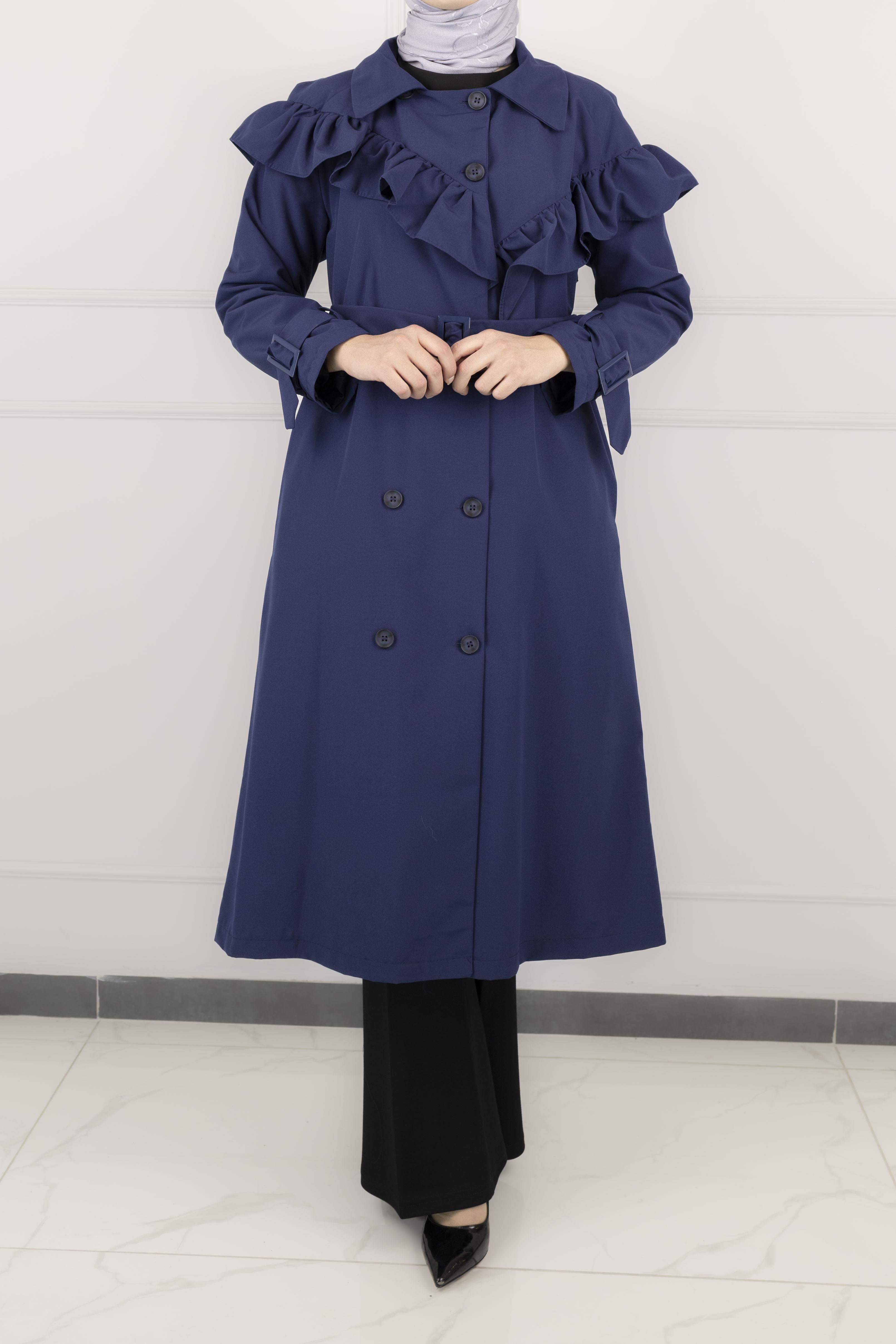 Düğme Detaylı Trençkot Mavi OTW4148