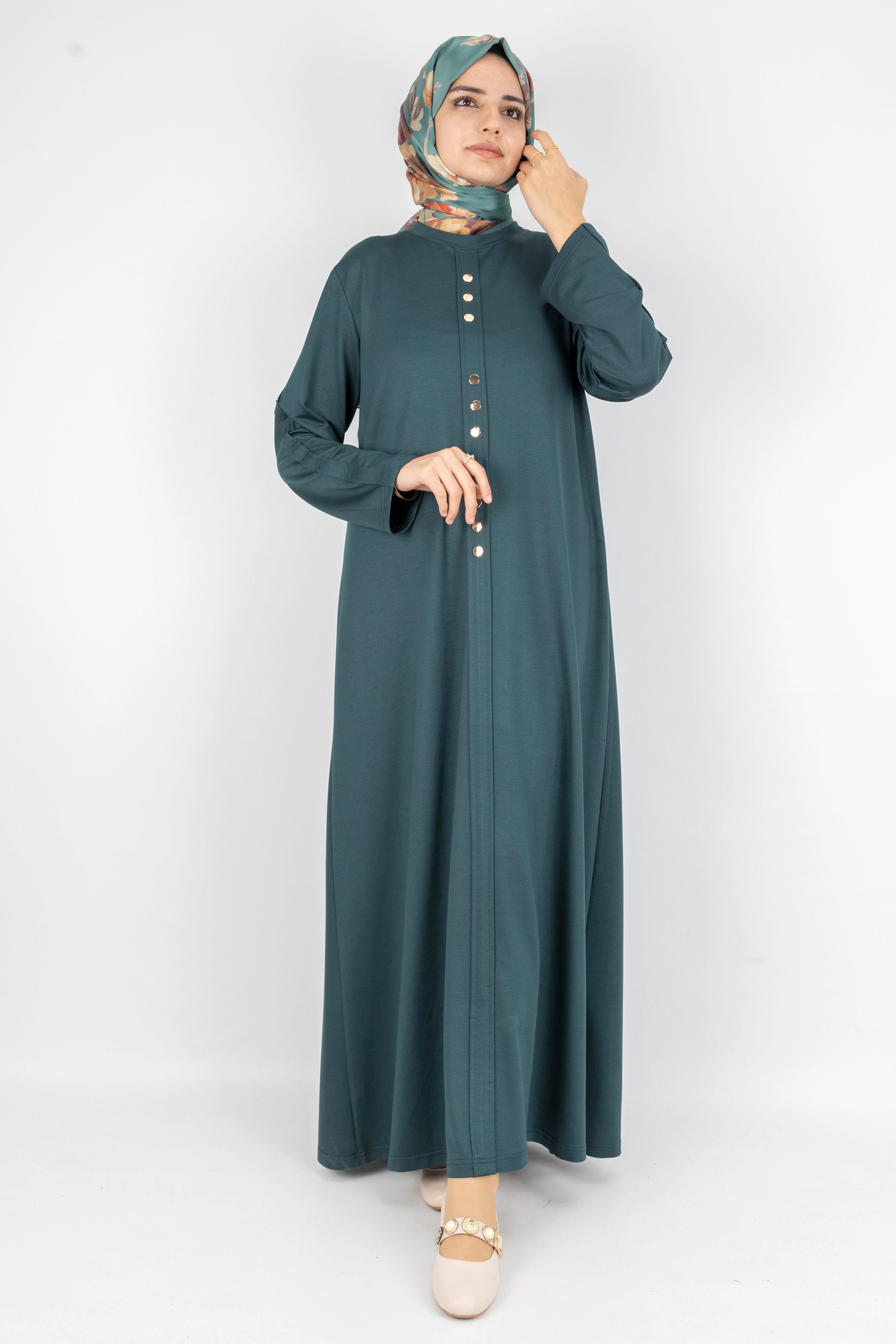 Düz Renk Modern Stil Düğmeli Tesettür Elbise Petrol OTW2205