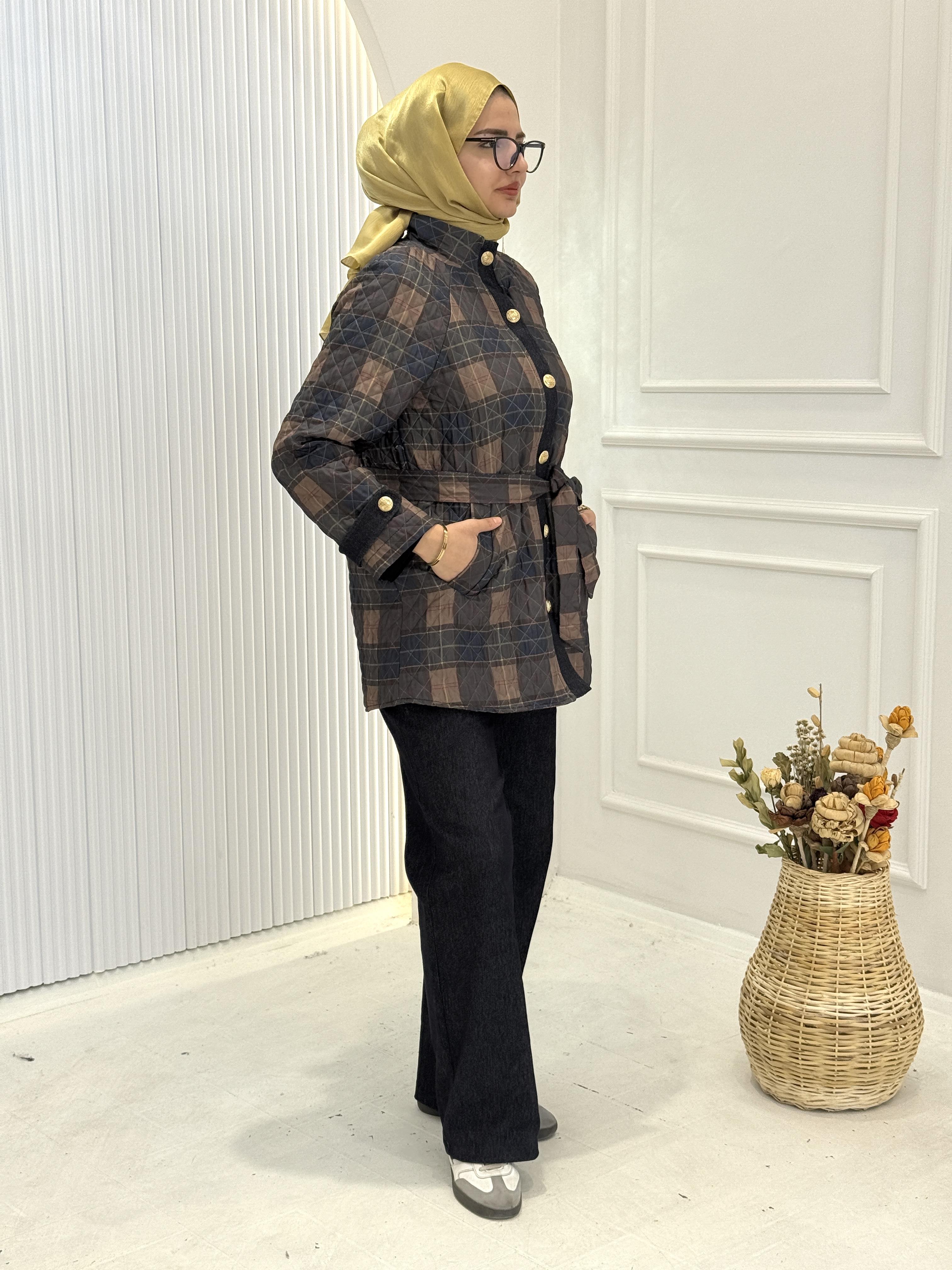 Ekose Kapitone Ceket Pantolon Takım Mavi OTW8592 Ekose Kapitone Ceket Pantolon Takım Kahve OTW8592