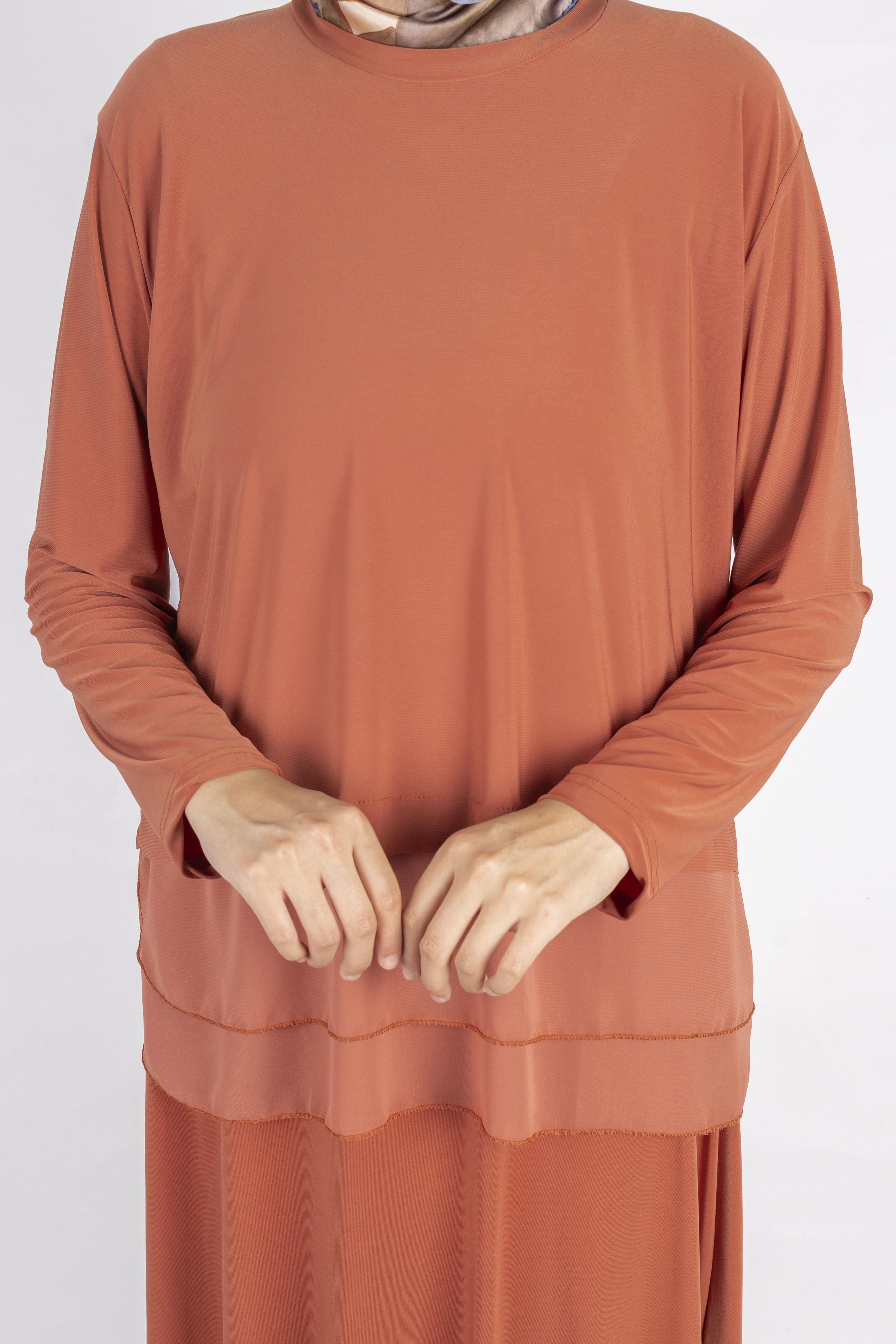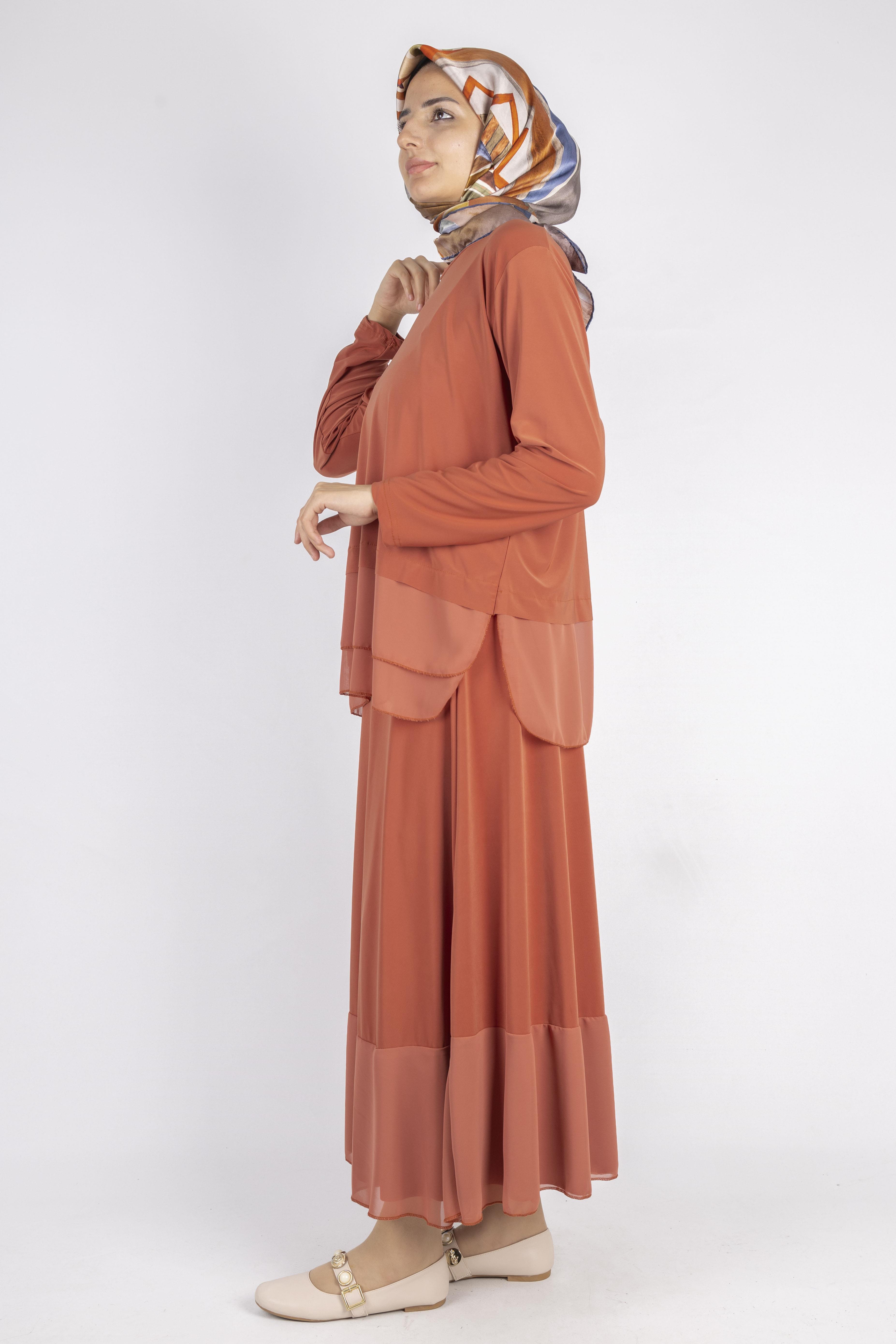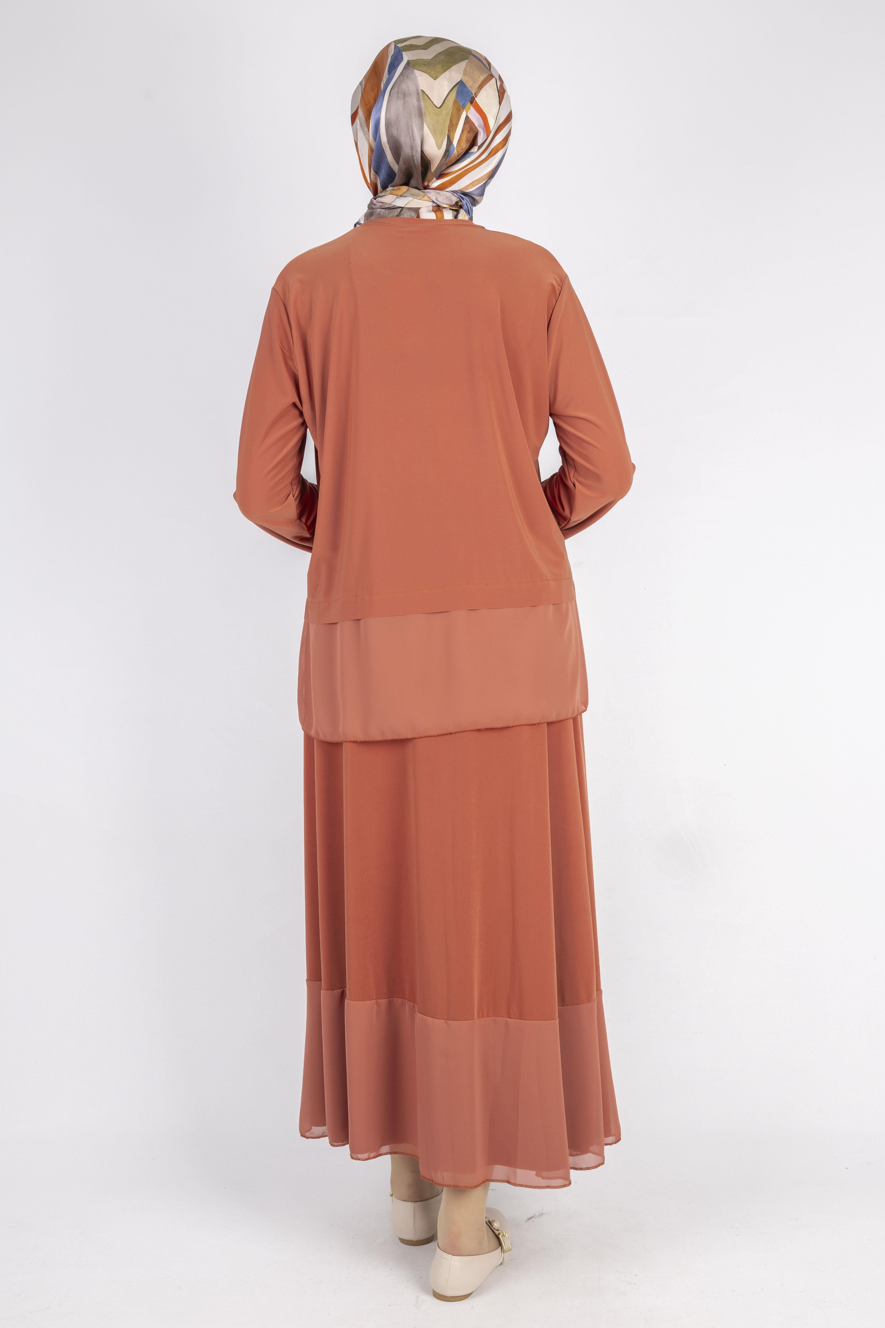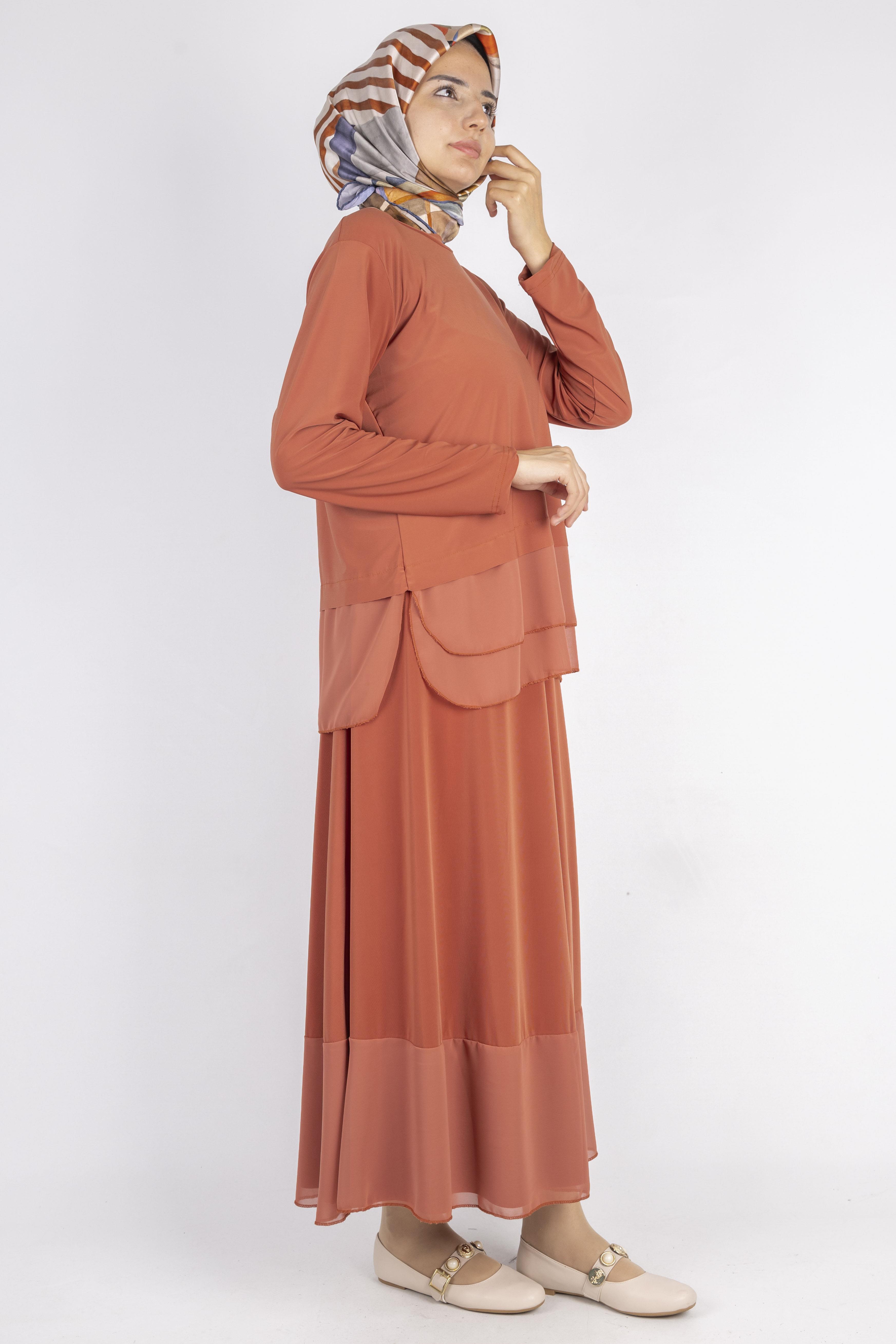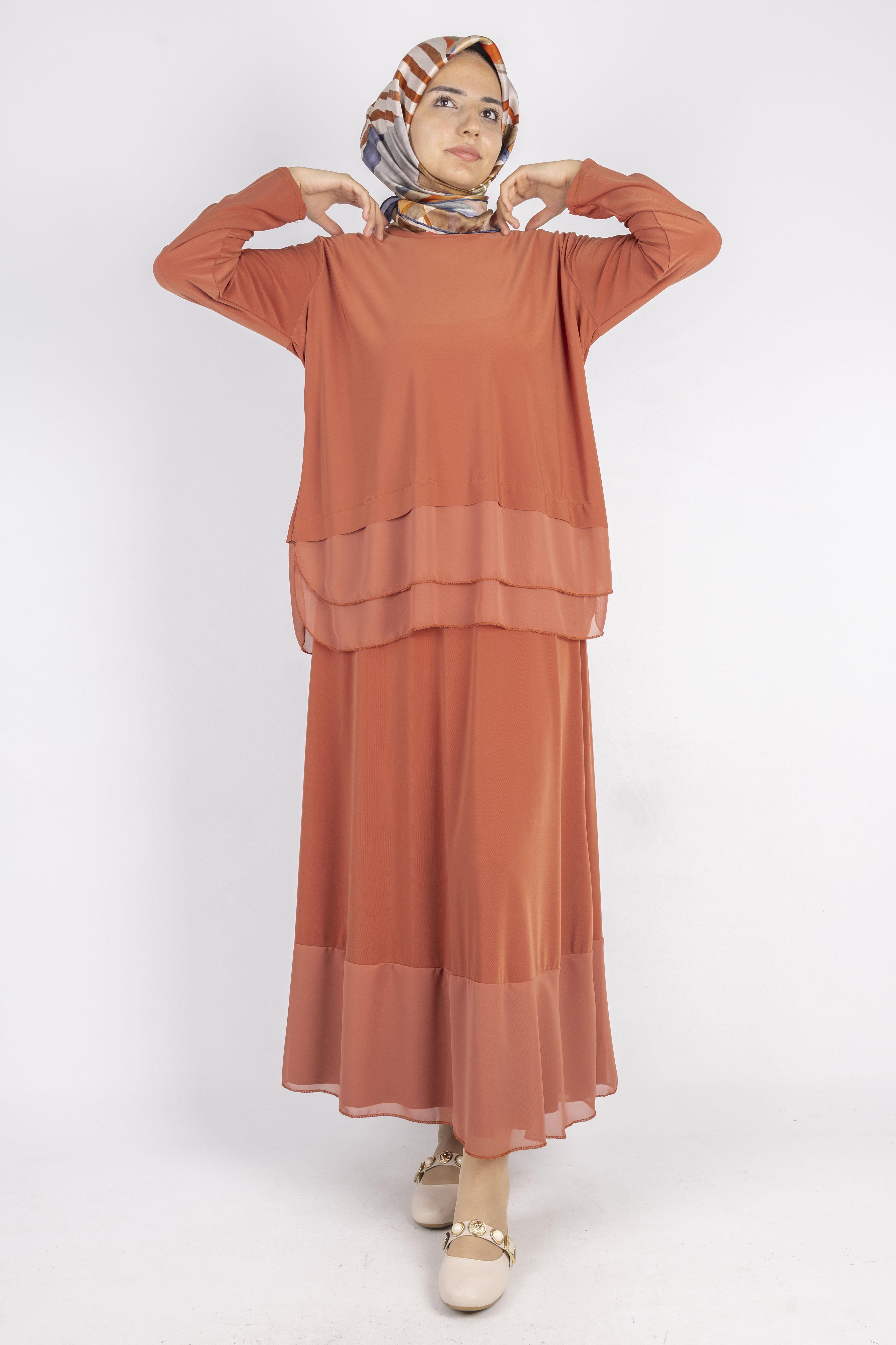 Şifon Detaylı Sandy Kumaş Etekli Takım Turuncu OTW0517