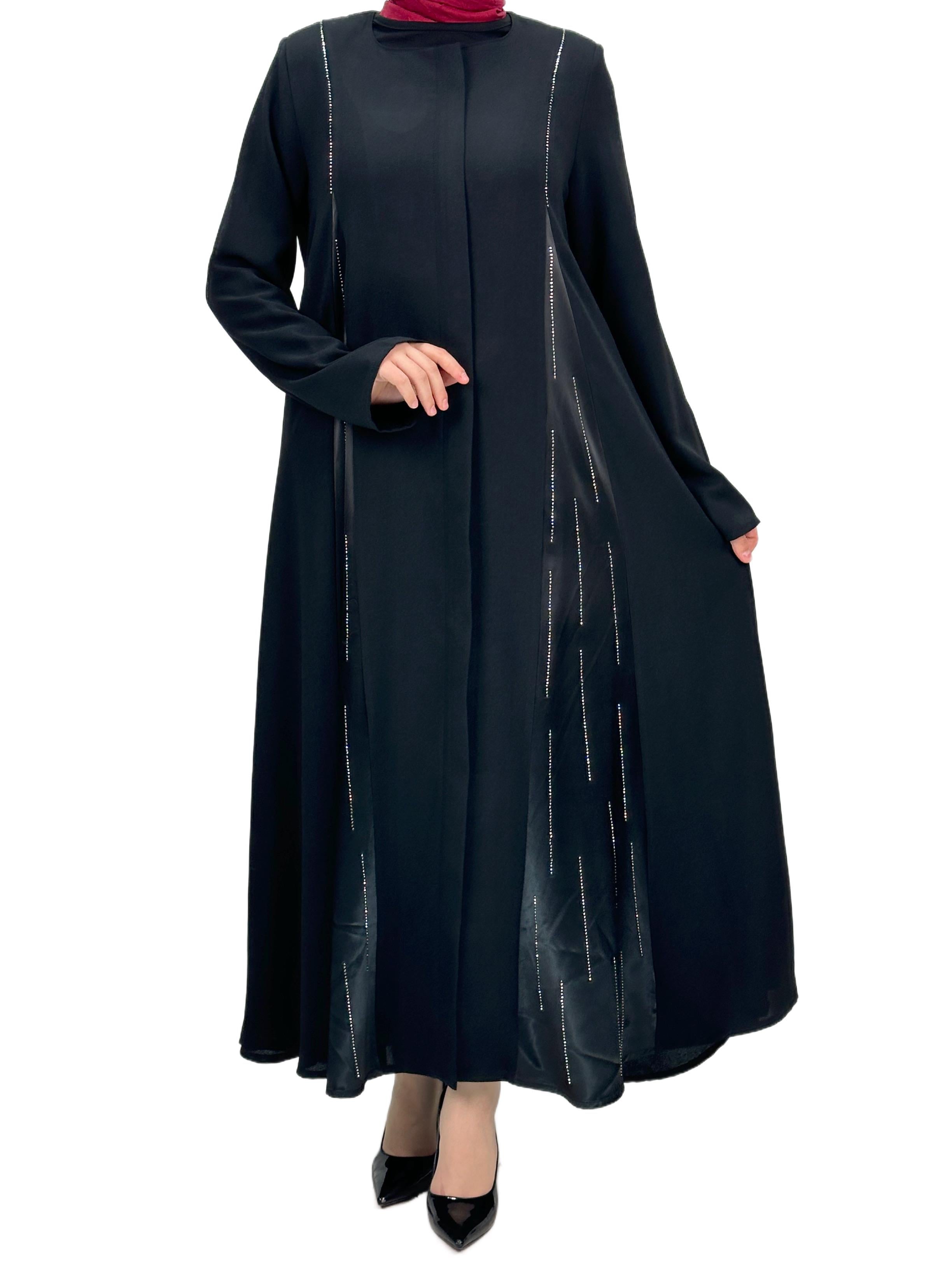Taş Detaylı Krep Kumaş Ferace Siyah OTW36240