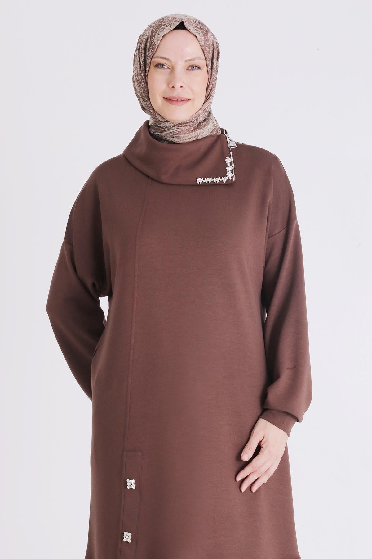 Büyük Beden Tesettür Tunik Ürün Detayları: Yakası fermuarlı ürünümüz düşük olup işleme detaylar ile hareketlendirilmiştir. Kumaş Türü: Oysho Kumaş İçeriği: %50 Polyester - %45 Viskon - %5 Likra