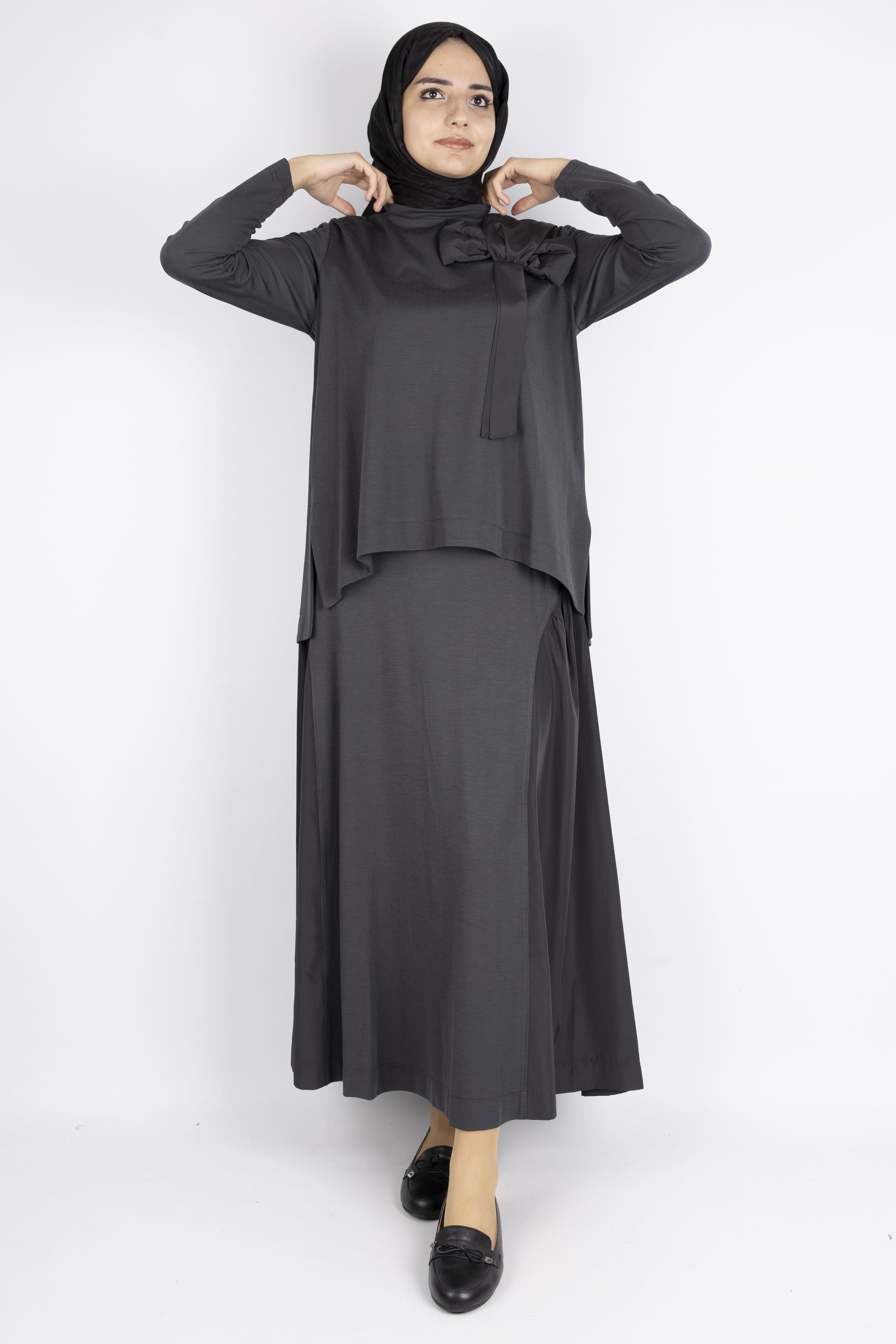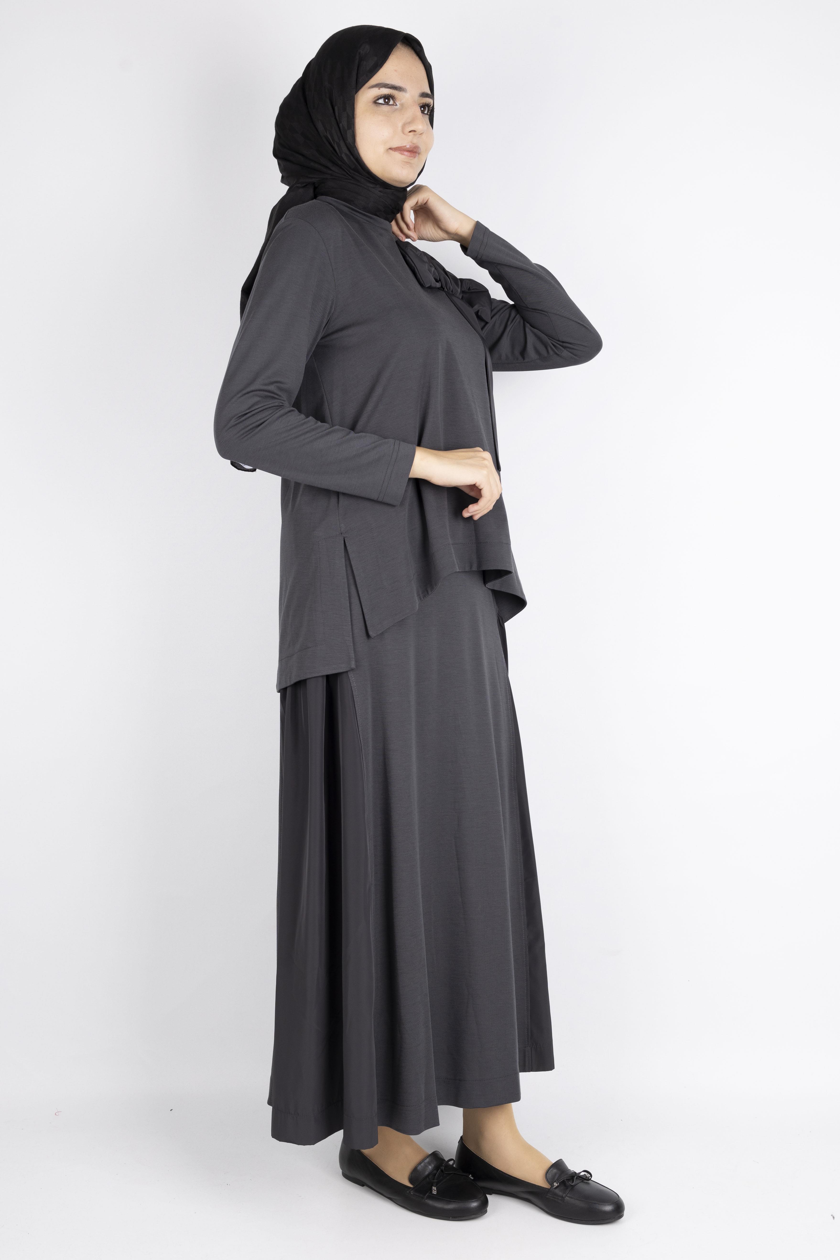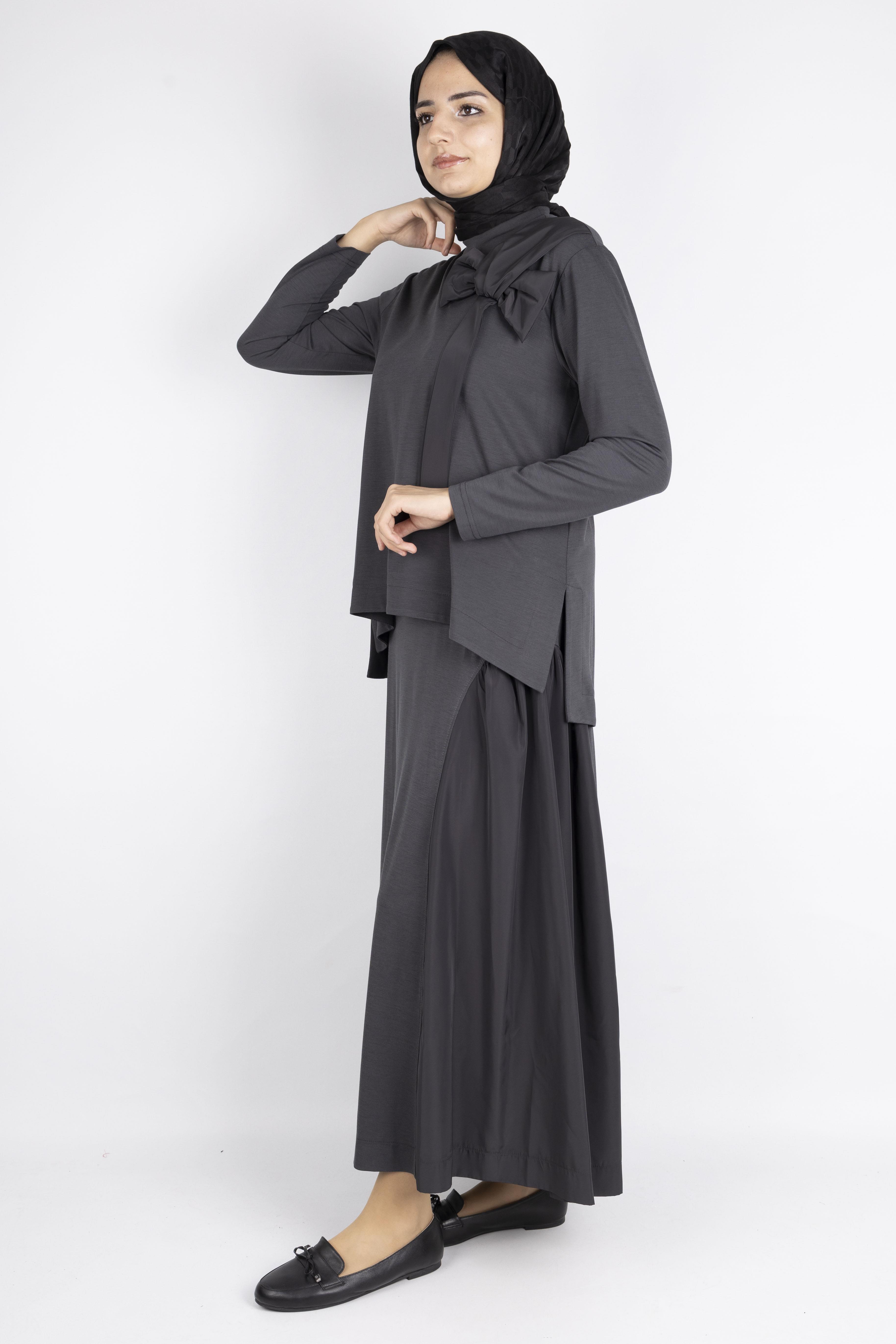 Fiyonk Detaylı Asimetrik Kesim Etekli Takım Antrasit OTW25534