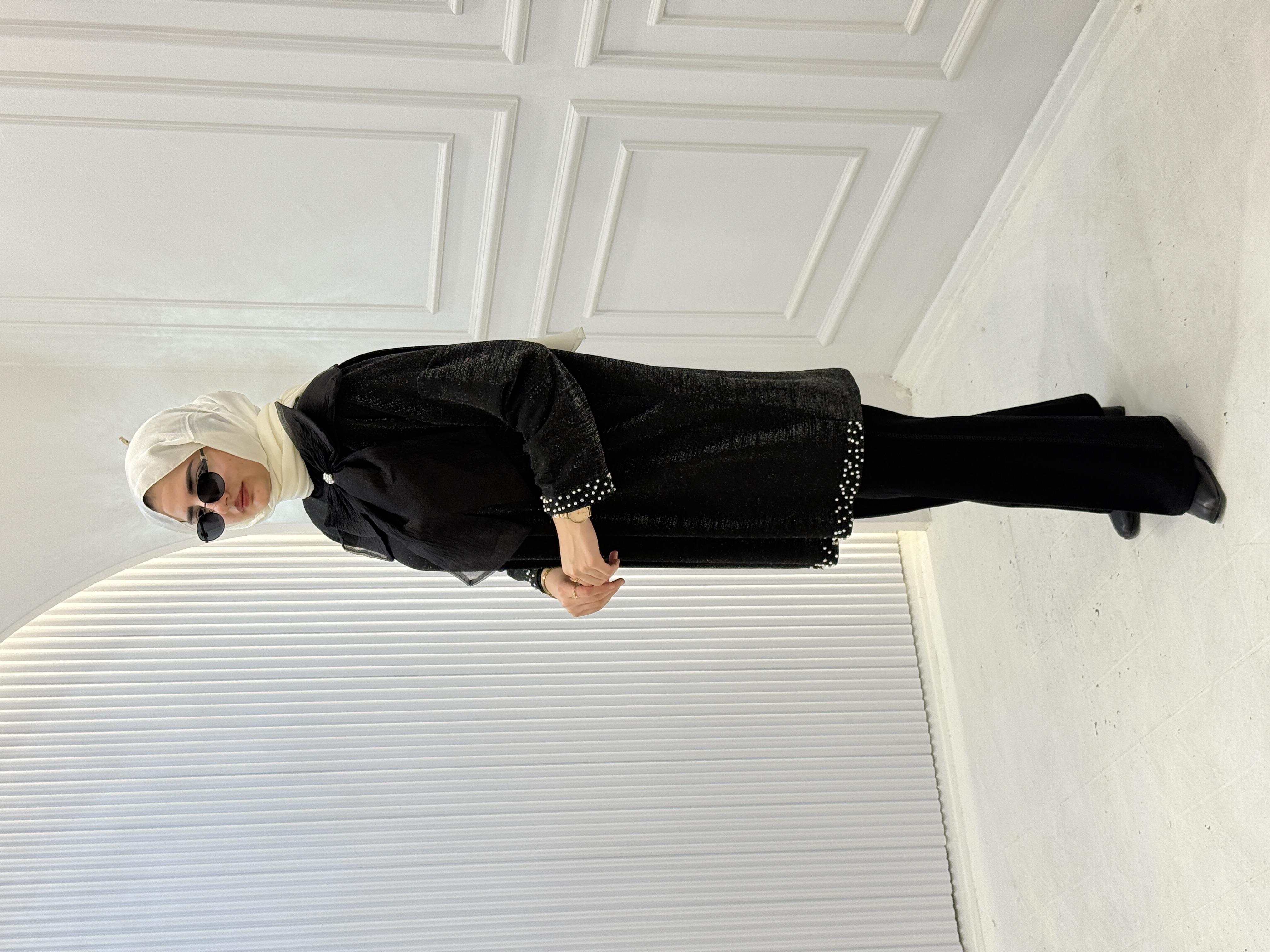 Fiyonk yaka tasarımı ve inci detaylarıyla öne çıkan bu büyük beden tunik, rahat kalıbı sayesinde gün boyu konfor sunar. Dökümlü yapısı vücut hatlarını sıkmadan dengeli bir duruş sağlar. Tesettür giyime uygun tasarımıyla özel günlerde ve şık kombinlerde güvenle tercih edilebilir.