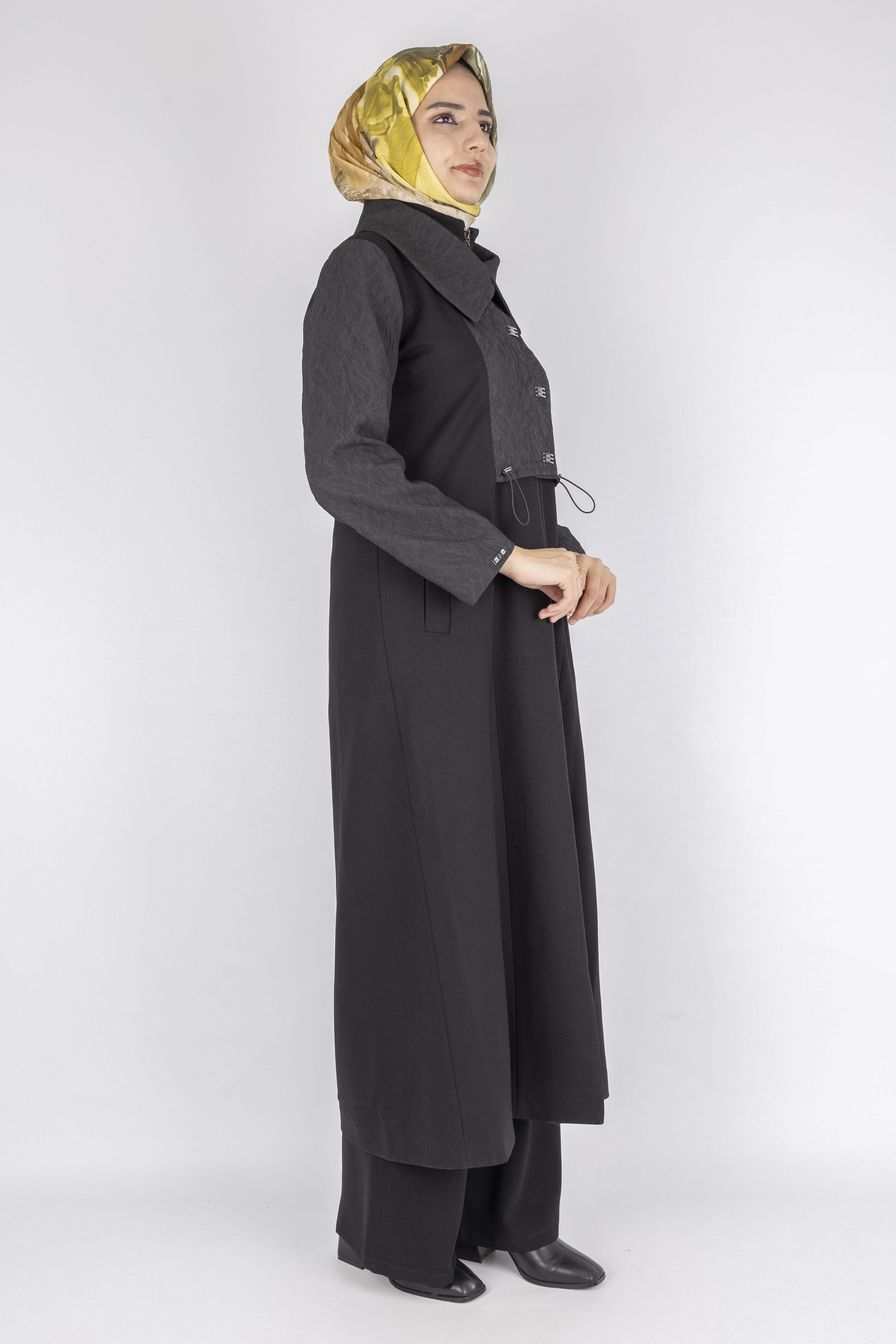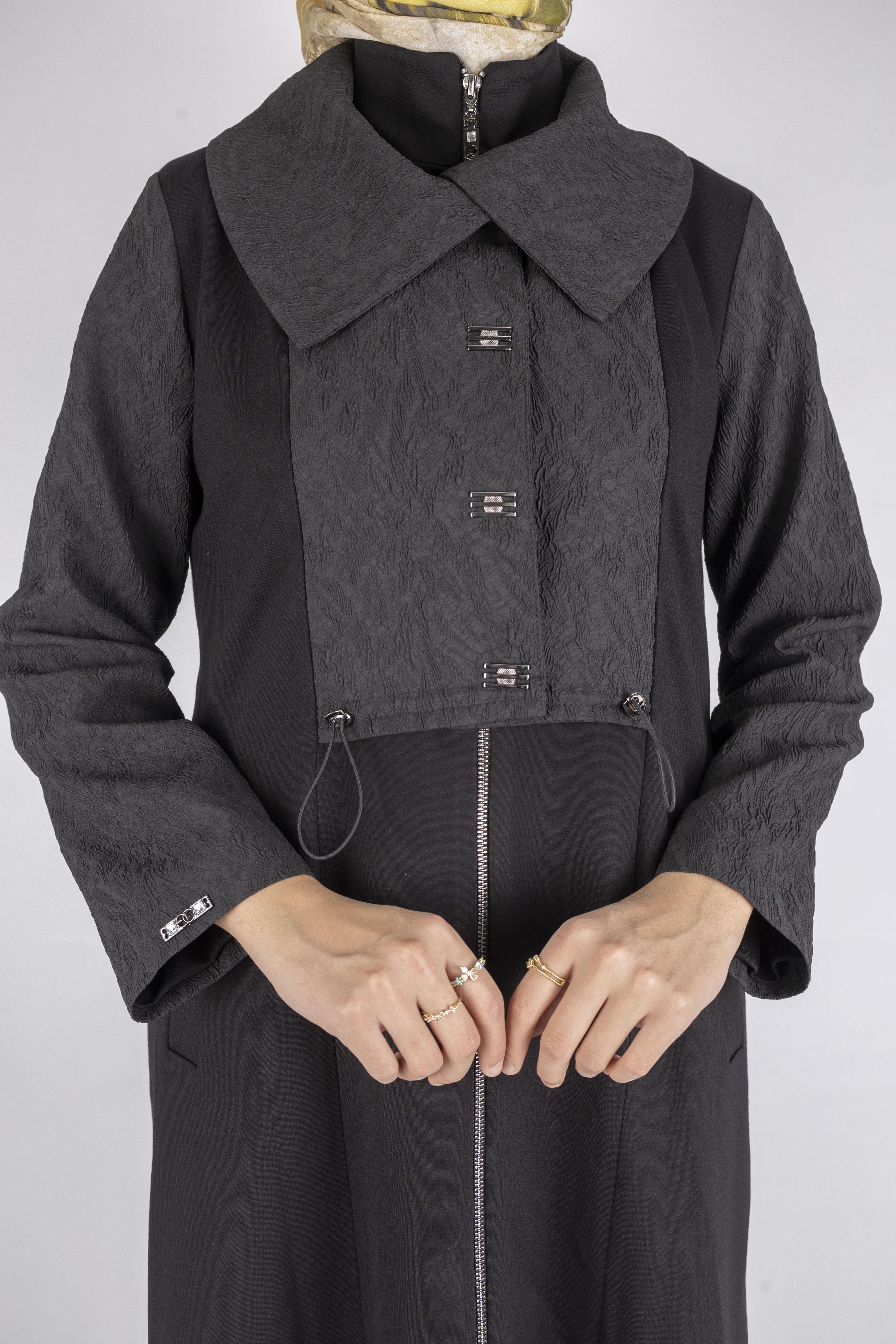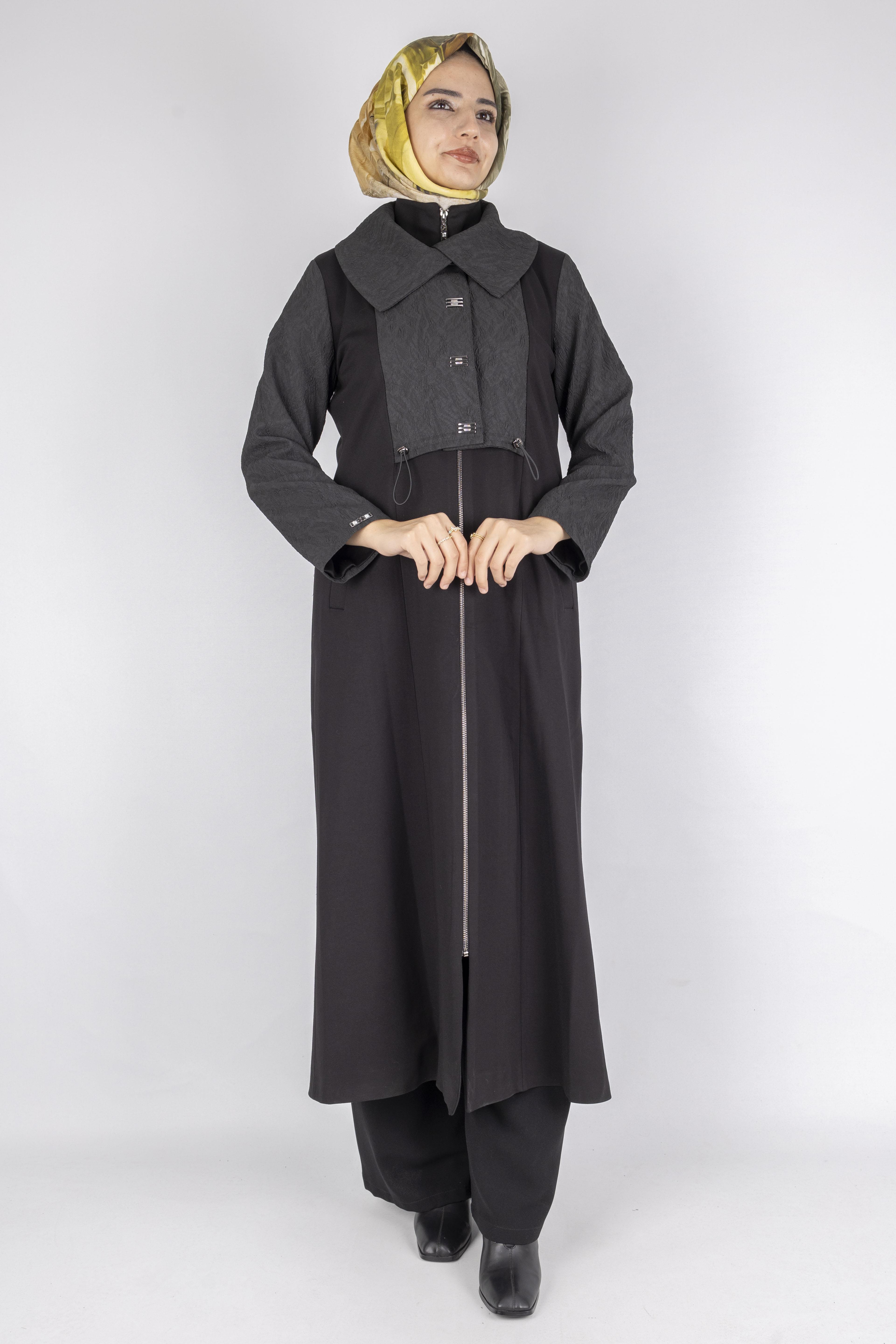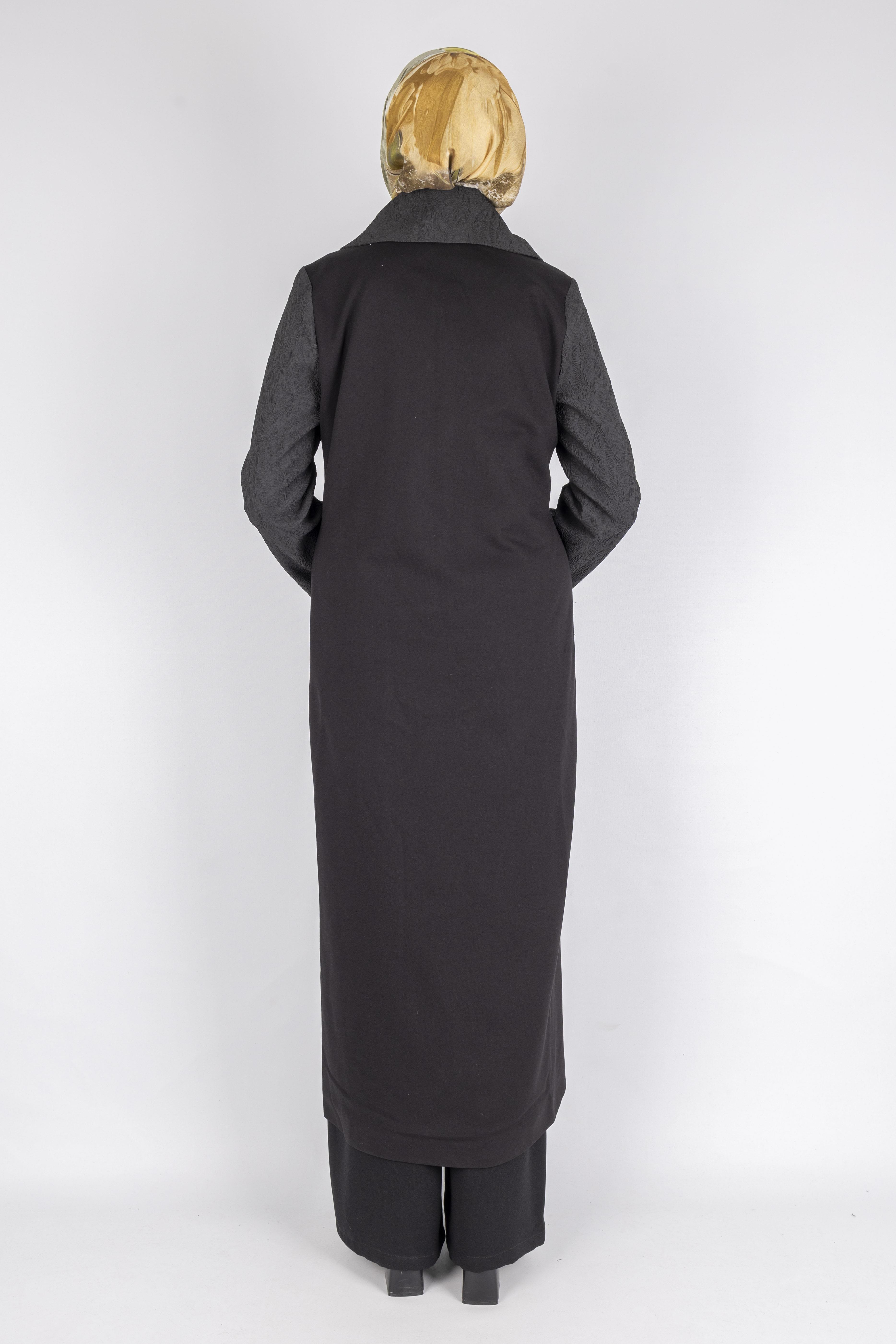 Geniş Yakalı Fermuarlı Panel Detaylı Uzun Kap Siyah OTW1590
