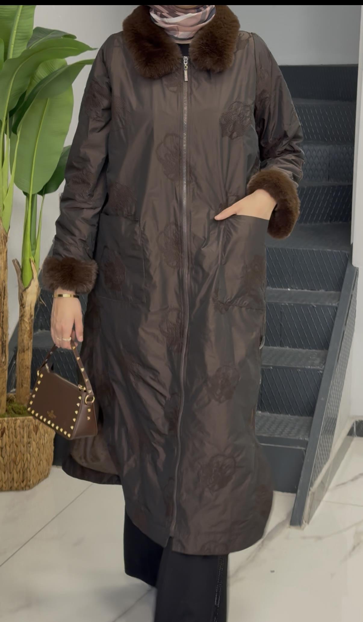 Güllü Desen Kürk Detaylı Kap Kahve OTW6123