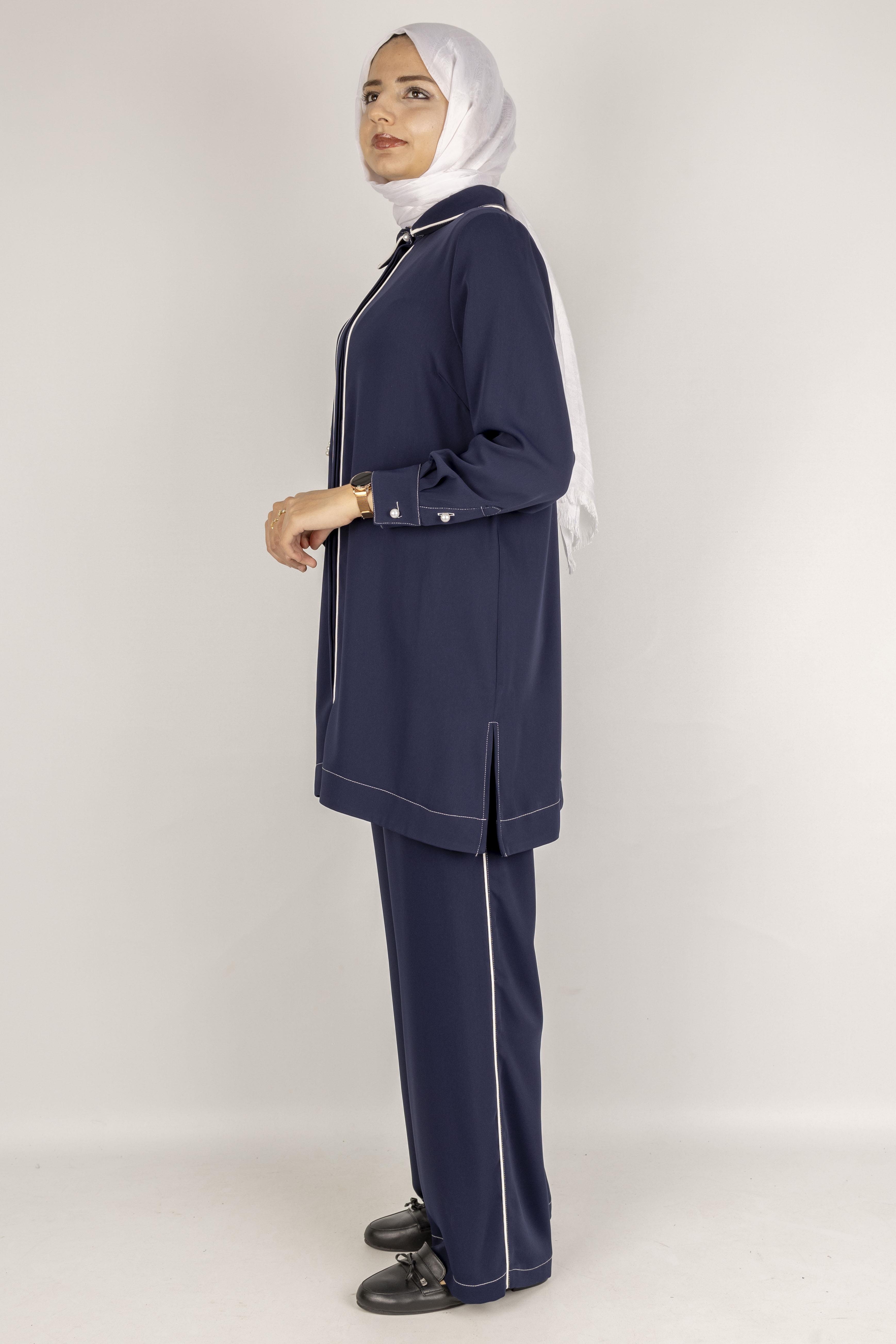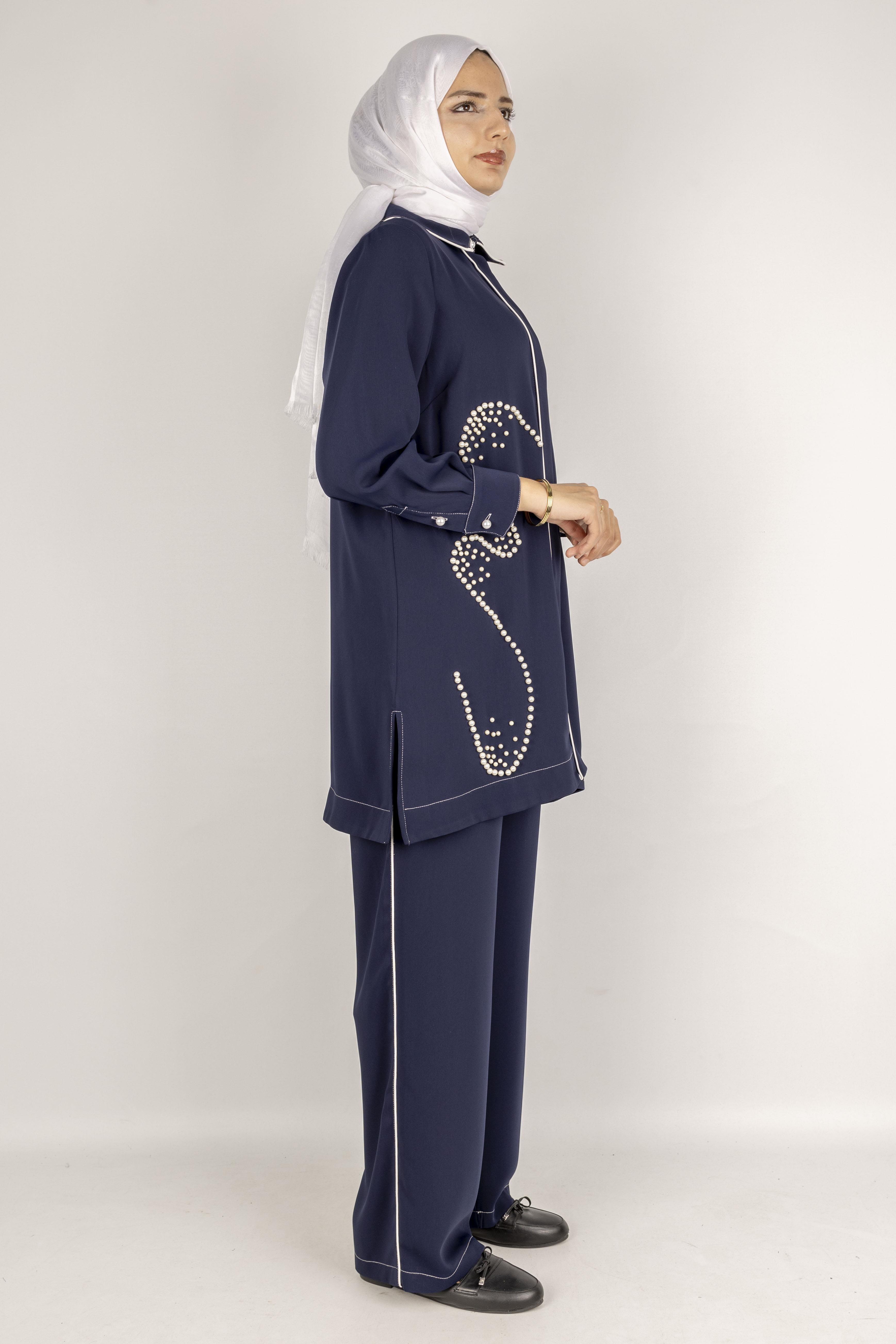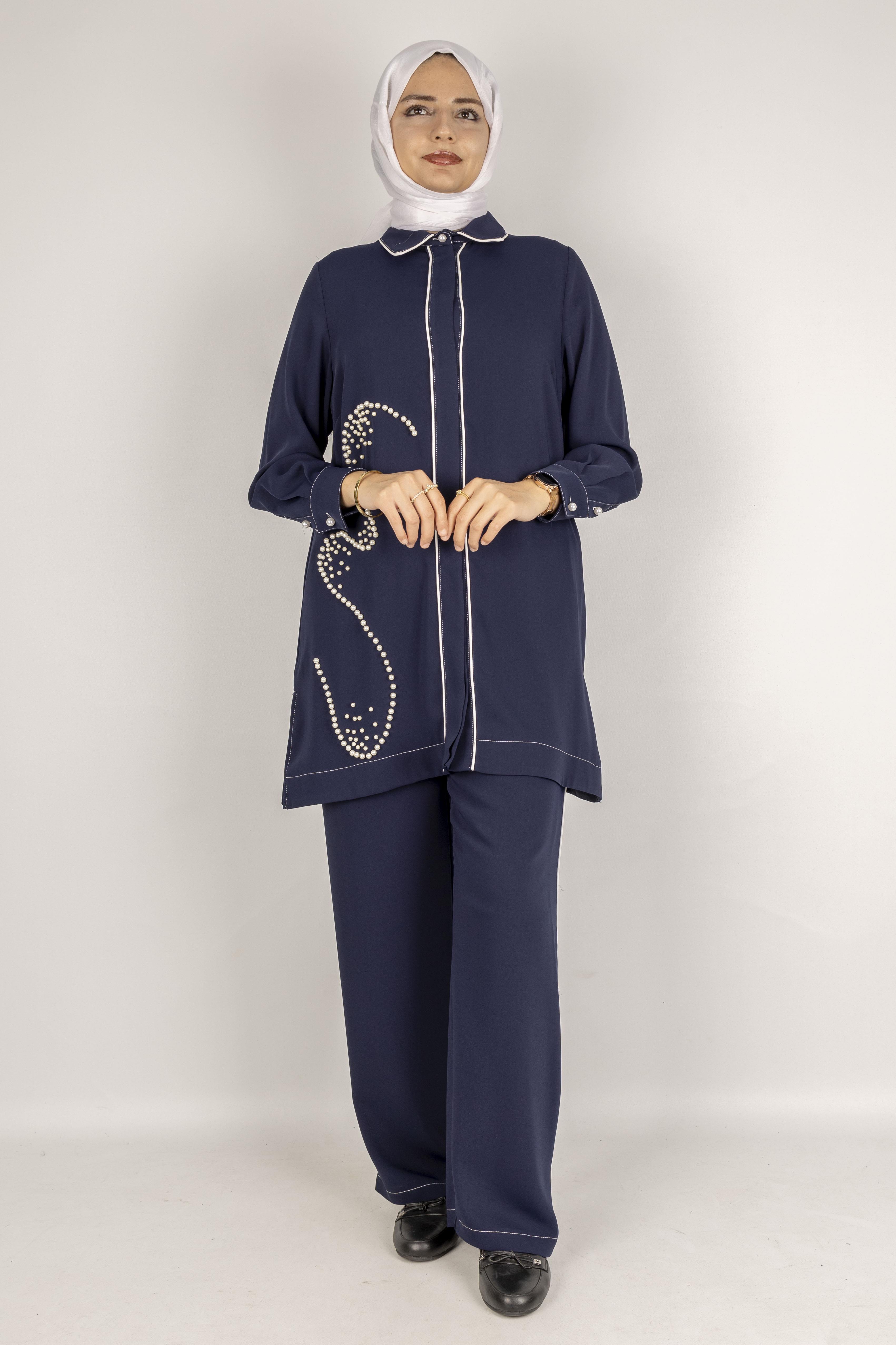 İnci Detaylı Tesettür Takım Lacivert OTW1129